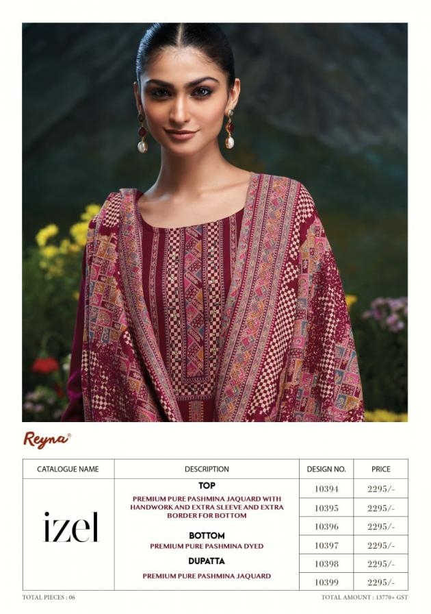Name: | Reyna Izel Series 10394 To 10399 Pashmina Jacquard Salwar Kameez In Wholesale Surat |