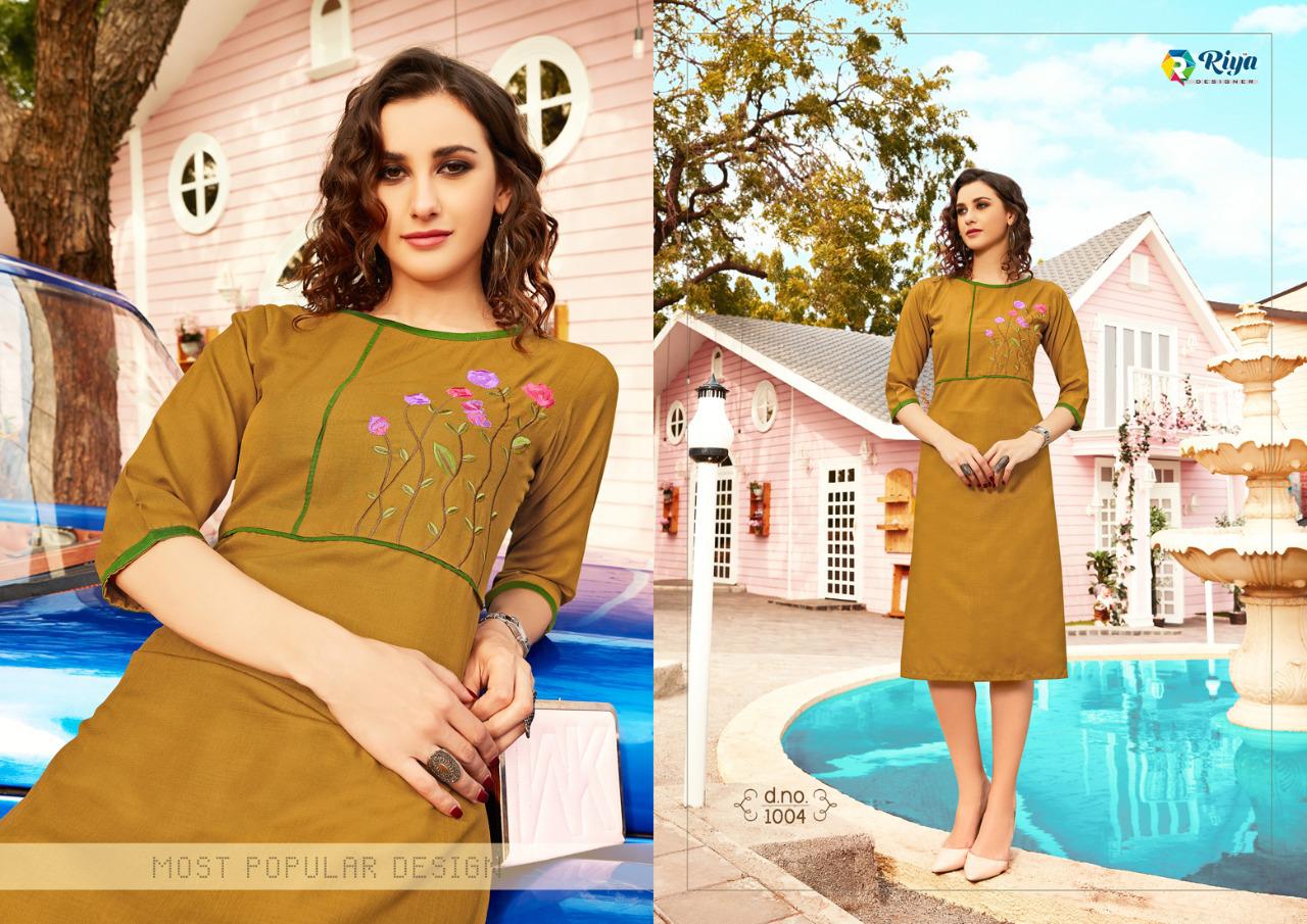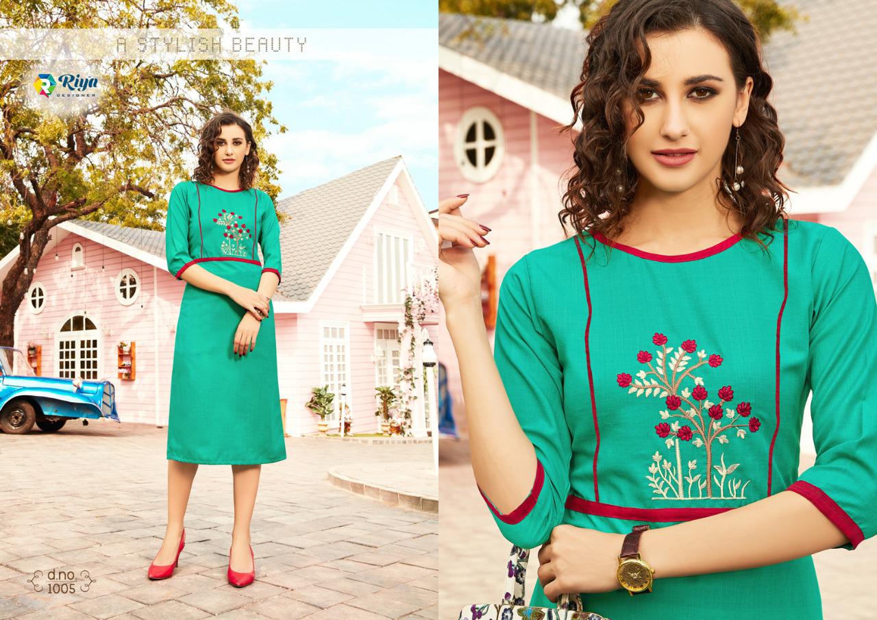 | Name: | Riya Designer Afrouze Slub Embroidery Cheap Rated Kurti Wholesaler |