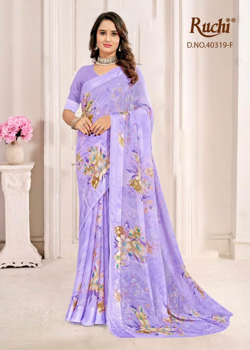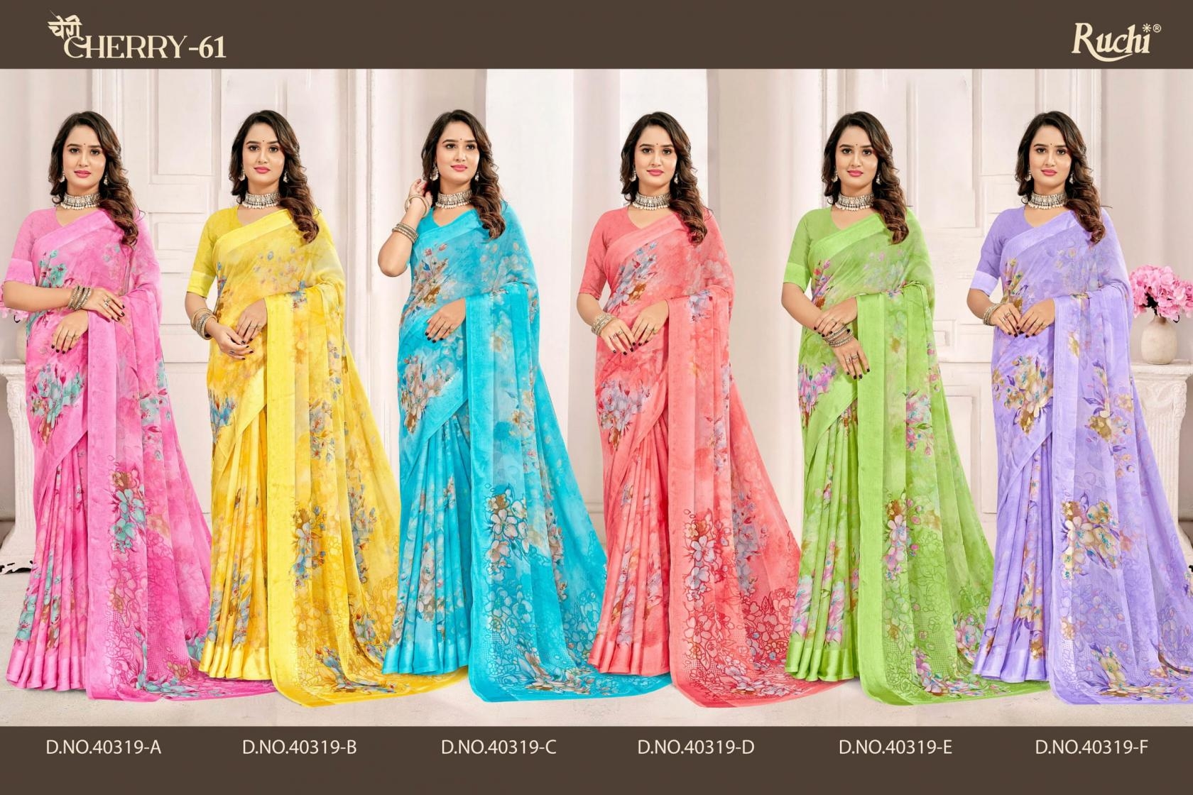 | Name: | Ruchi Presents Cherry Vol 61 Series 40319 A To 40319 F Chiffon Best Saree In Wholesale Surat |