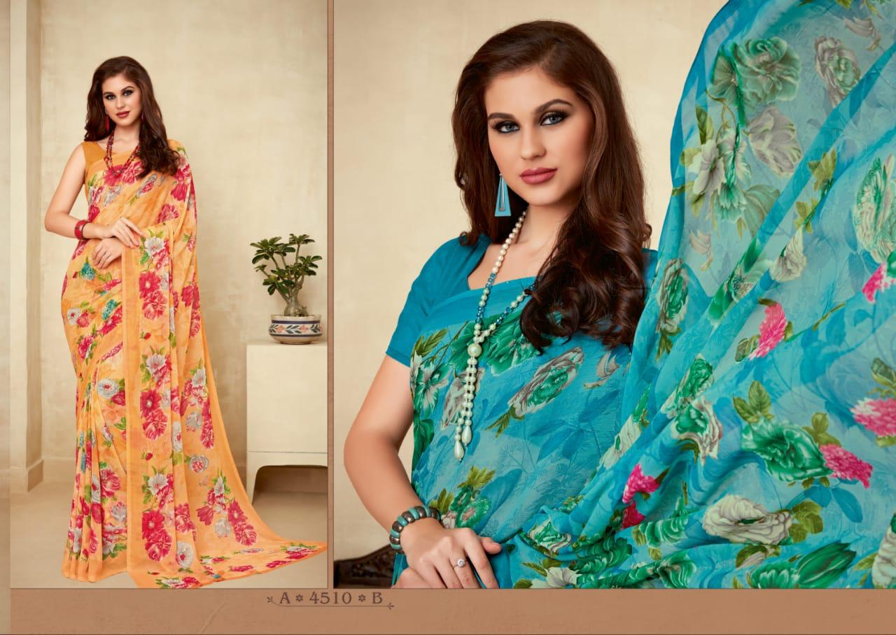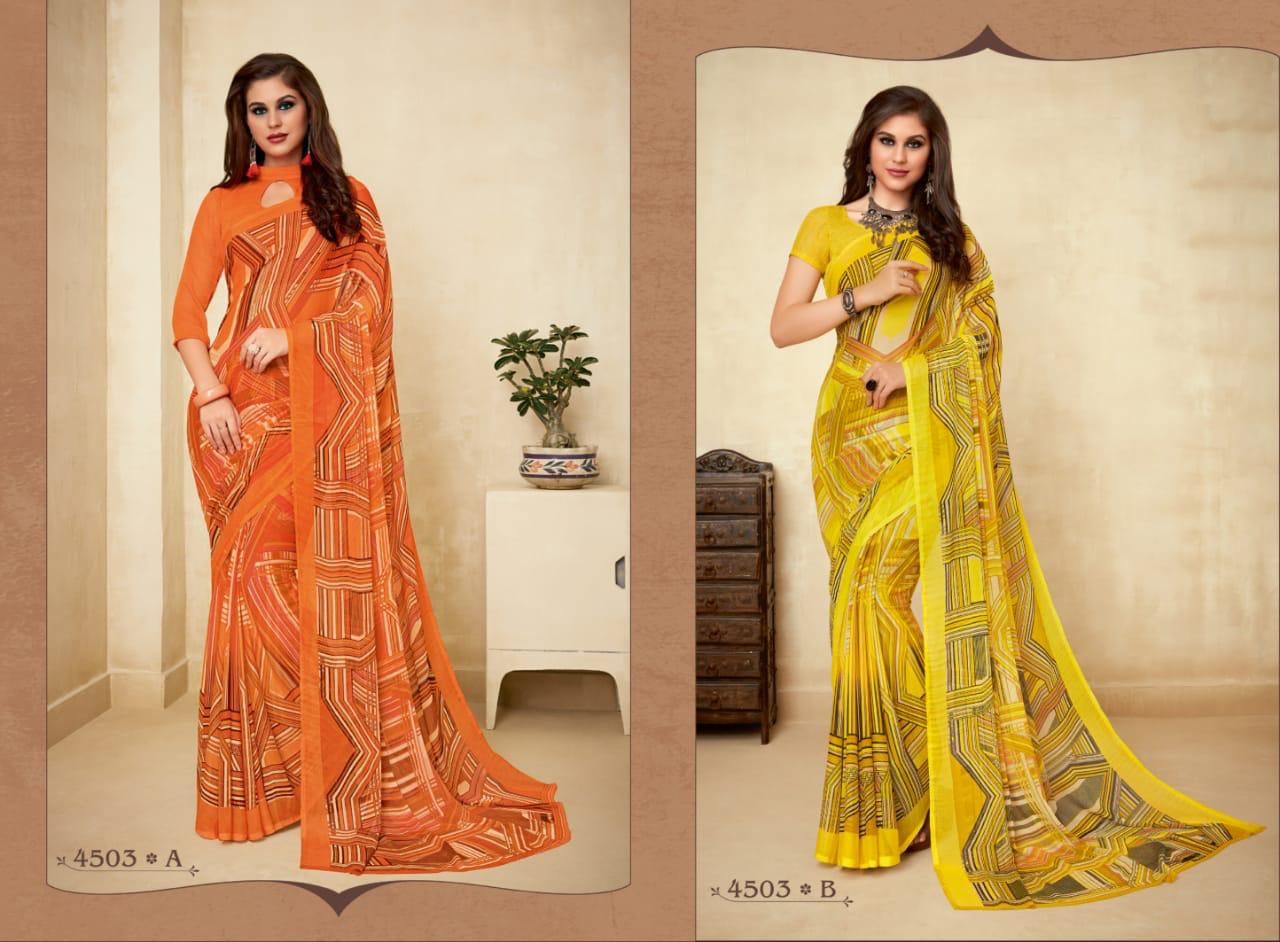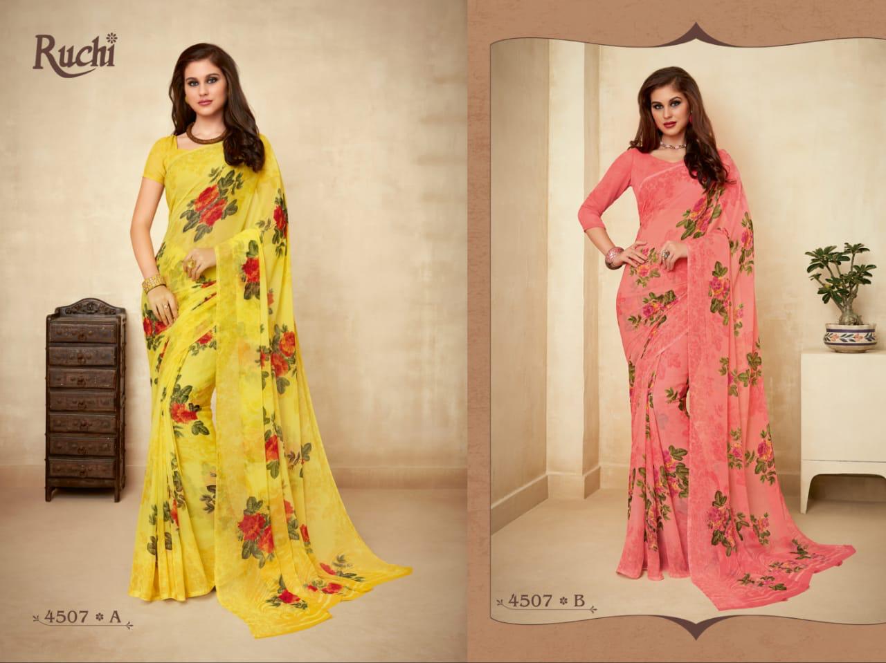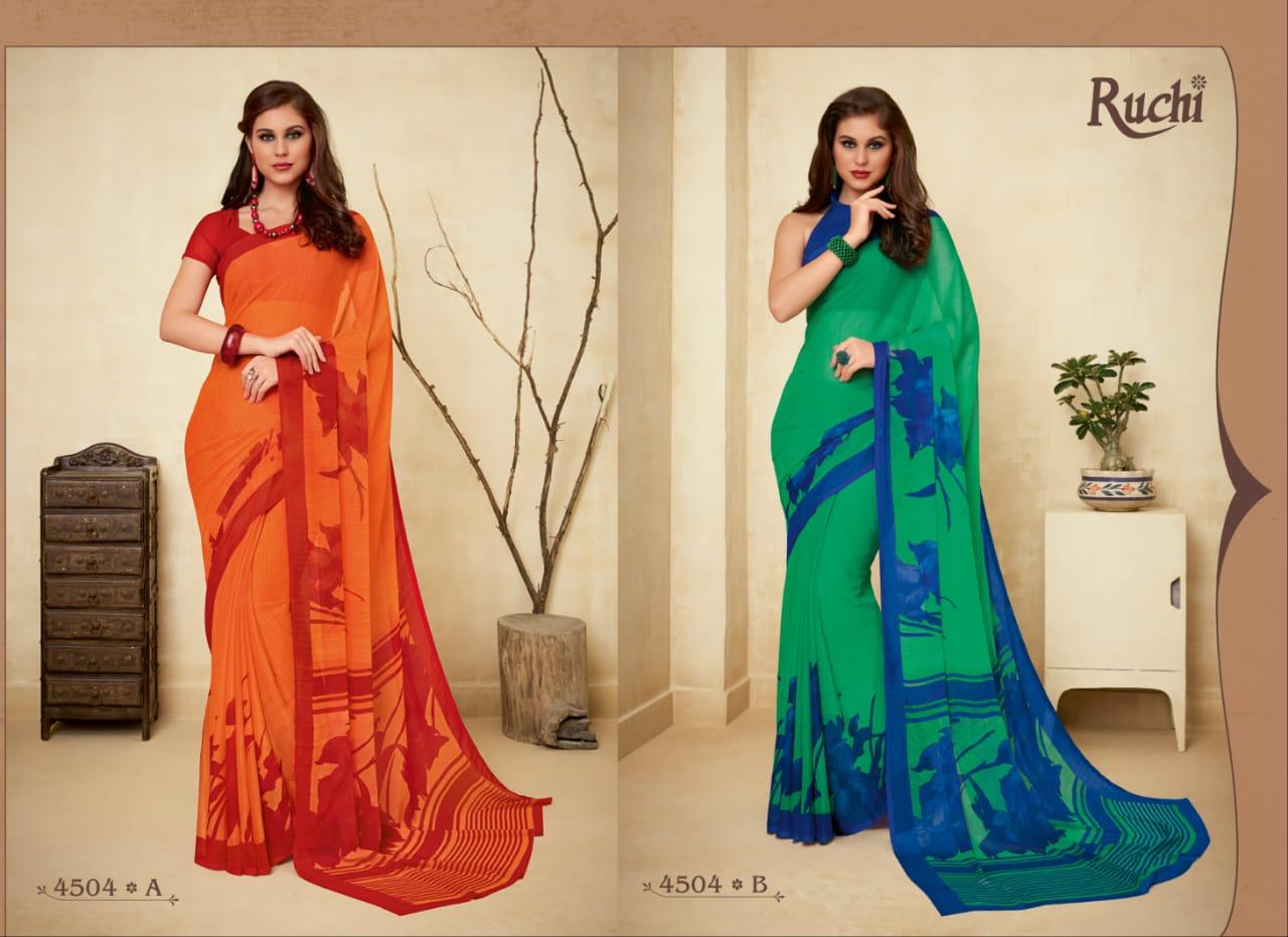 | Name: | Ruchi Super Kesar Chiffon Vol 45 Printed Chiffon Ladies Saris Wholesaler |
