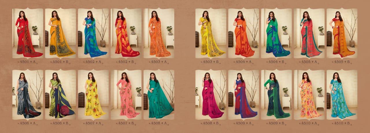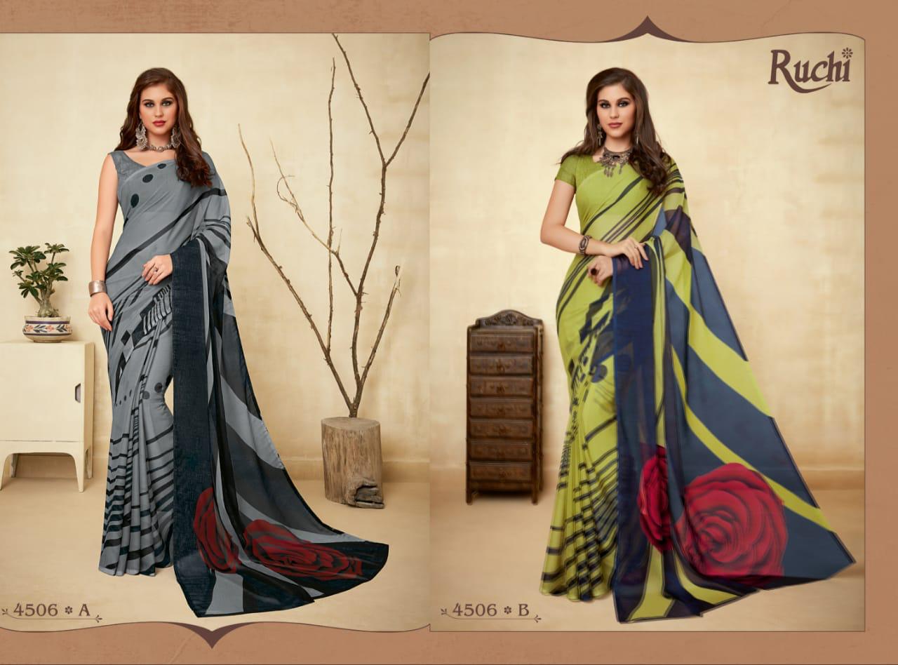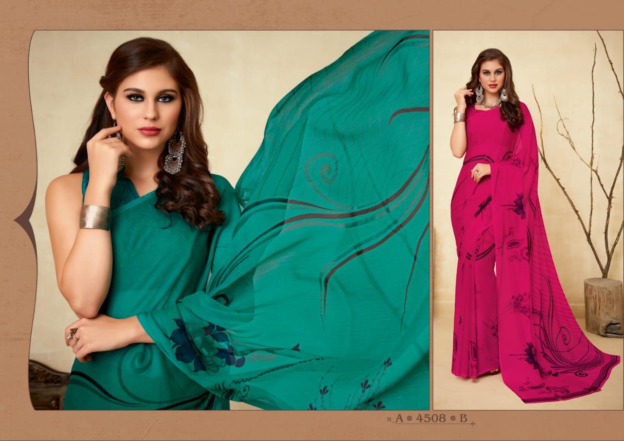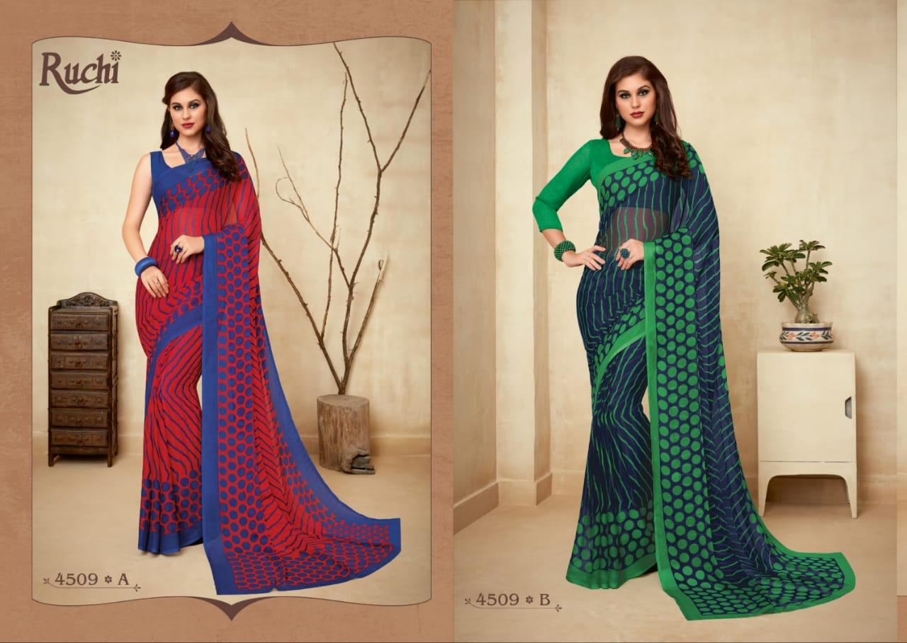 | Name: | Ruchi Super Kesar Chiffon Vol 45 Printed Chiffon Ladies Saris Wholesaler |