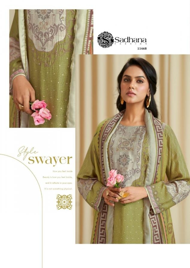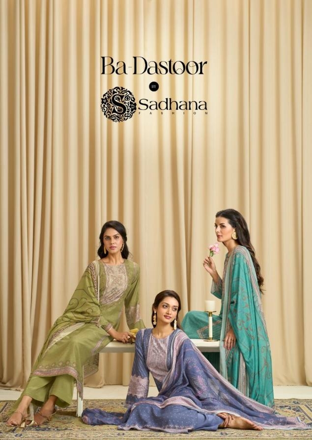 | Name: | Sadhana Fashion Ba Dastoor Series 11464-11469 Muslin Silk Wholesale Suit |