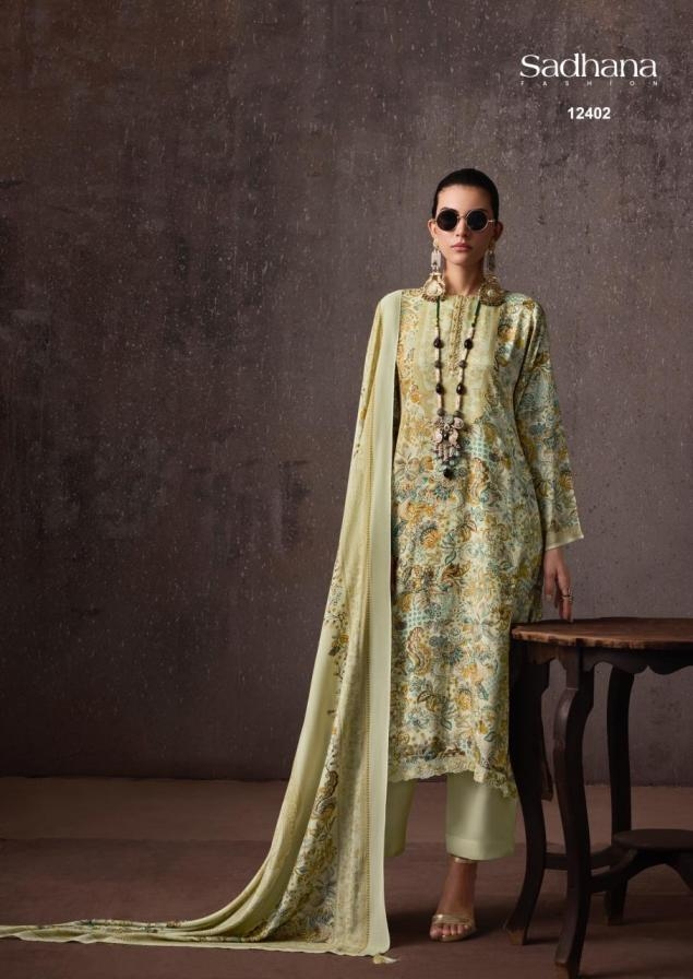 | Name: | Sadhana Fashion Grace Series 12401-12406 Bemberg Muslin Silk Wholesale Suit |
