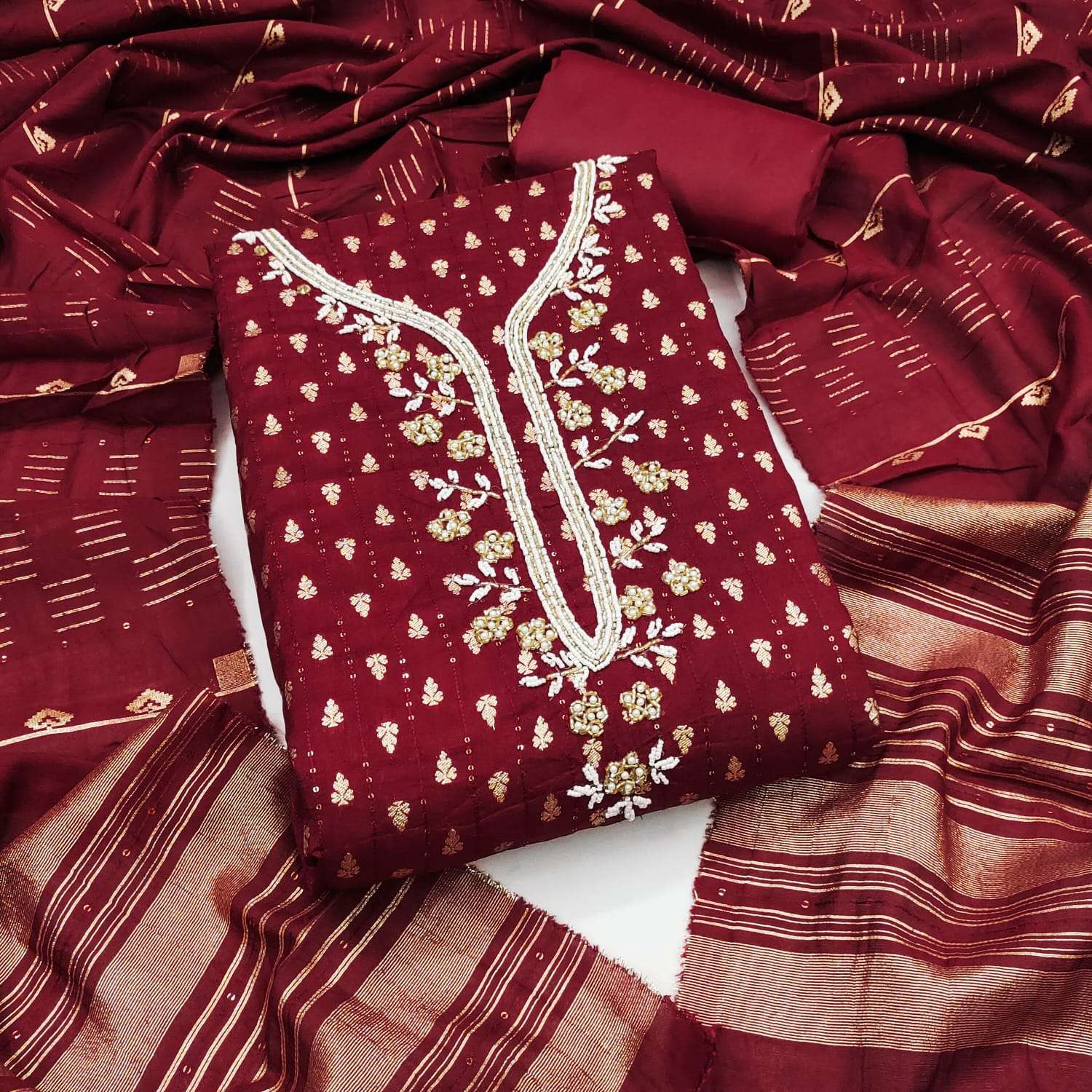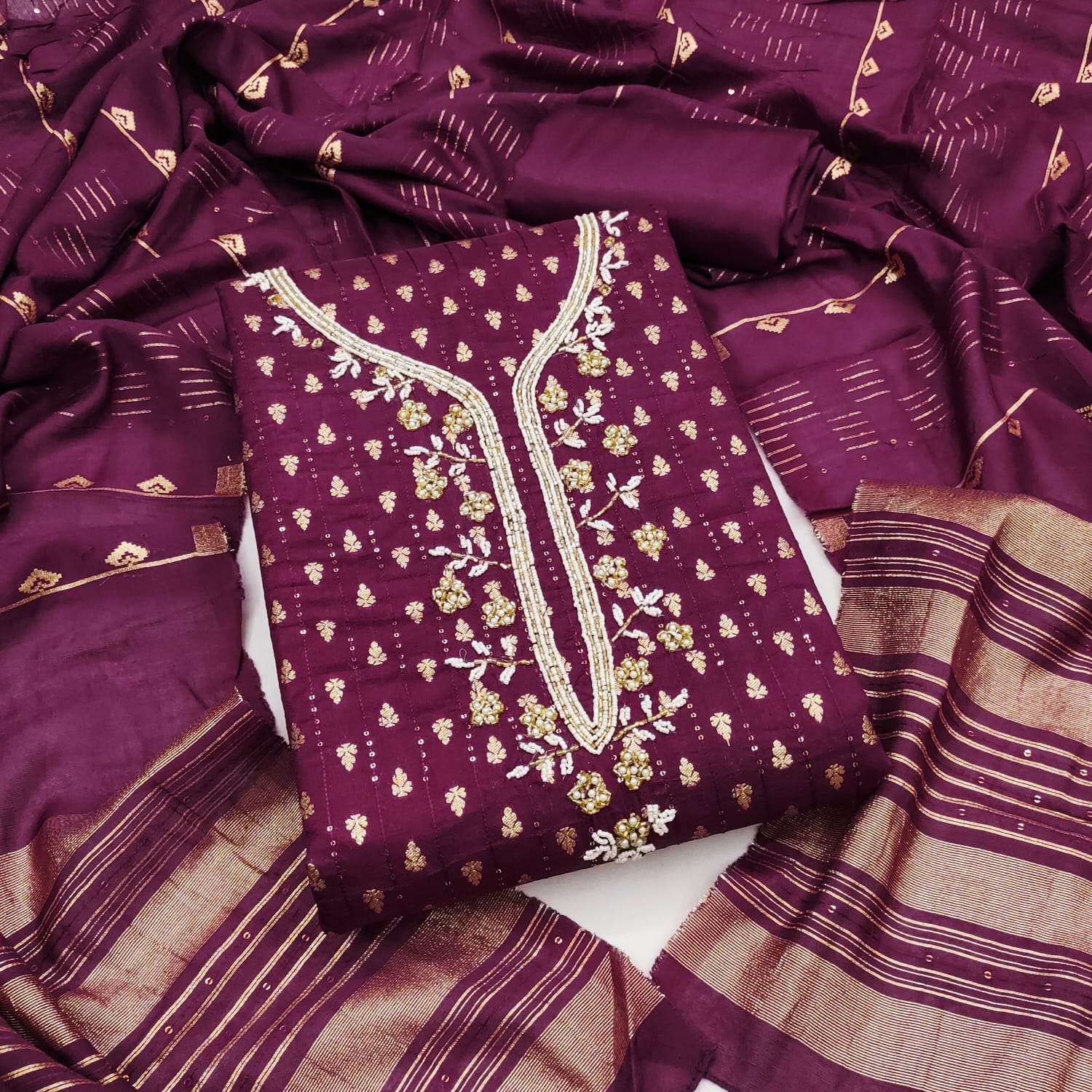 | Name: | Saheeli Chanderi Zakard Crosset Wholesale Designer Suit In Surat |