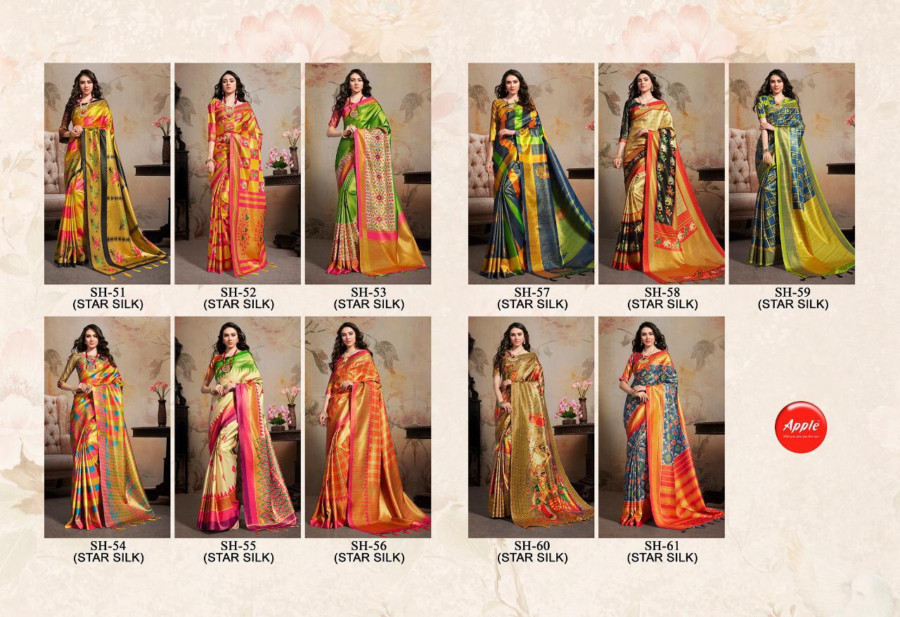 Other Details: | ?Launch Today? ?Catalog Name: Saheli vol-2? ?Design: 11? ?Fabric: Star Soft Silk (Digital Print) ? ?Rate : 695/-? Set to set GST 5 Percent Extra. By Apple saree . Delivery 3-4 days |