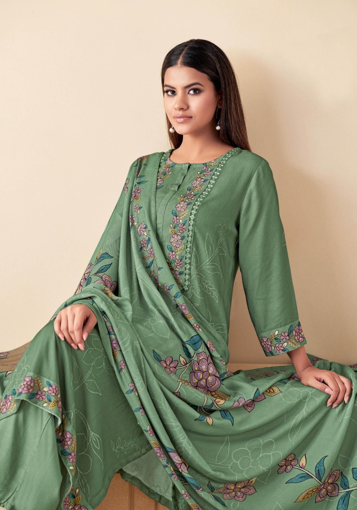 Other Details: | SAHIBA TOP - PURE PASHMINA TWILL DIGITAL PRINT WITH BOTTOM - PURE PASHMINA TWILL SOLID DYED DUPATTA - PURE PASHMINA TWIL DIGITAL PRINT RATE: |