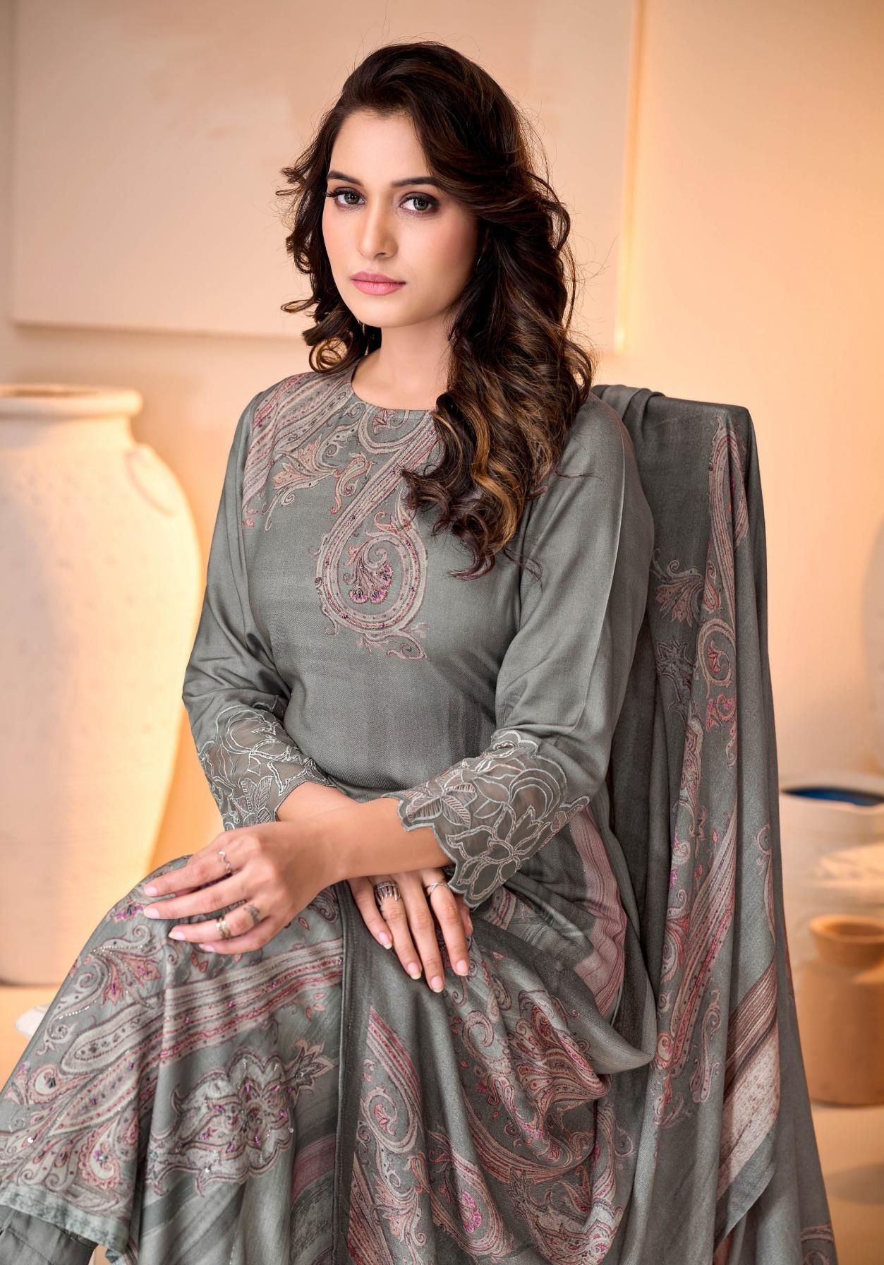 | Other Details: | SAHIBA TOP - PURE PASHMINA TWIL DIGITAL PRINT WITH HAND WORK AND FANCY EMB. SLEEVE THREDAL PATCH BOTTOM - PURE PASHMINA TWILL DYED WITH FANCY EMB. PLAZZO DUPATTA - PASHMINA TWILL DIGITAL PRINTED RATE: |