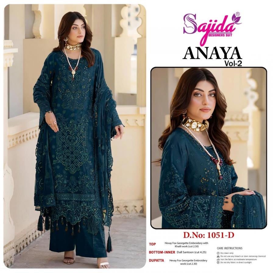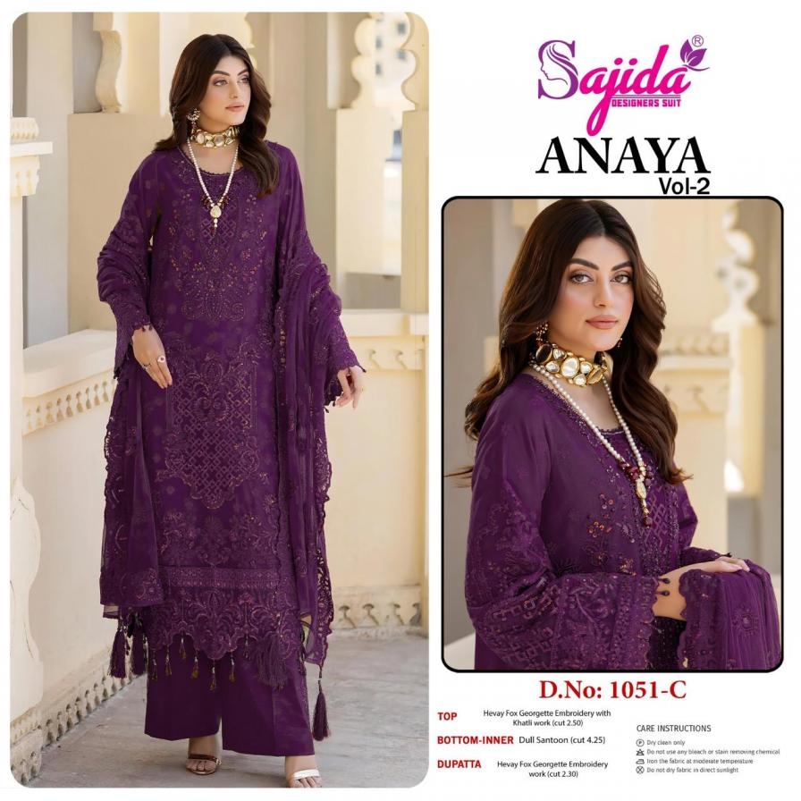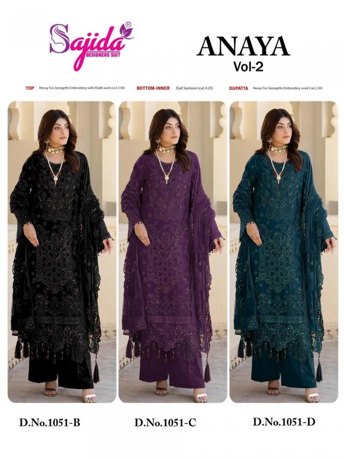 | Name: | Sajida Anaya Vol 2 1051bcd Georgette Wholesale Suit | |