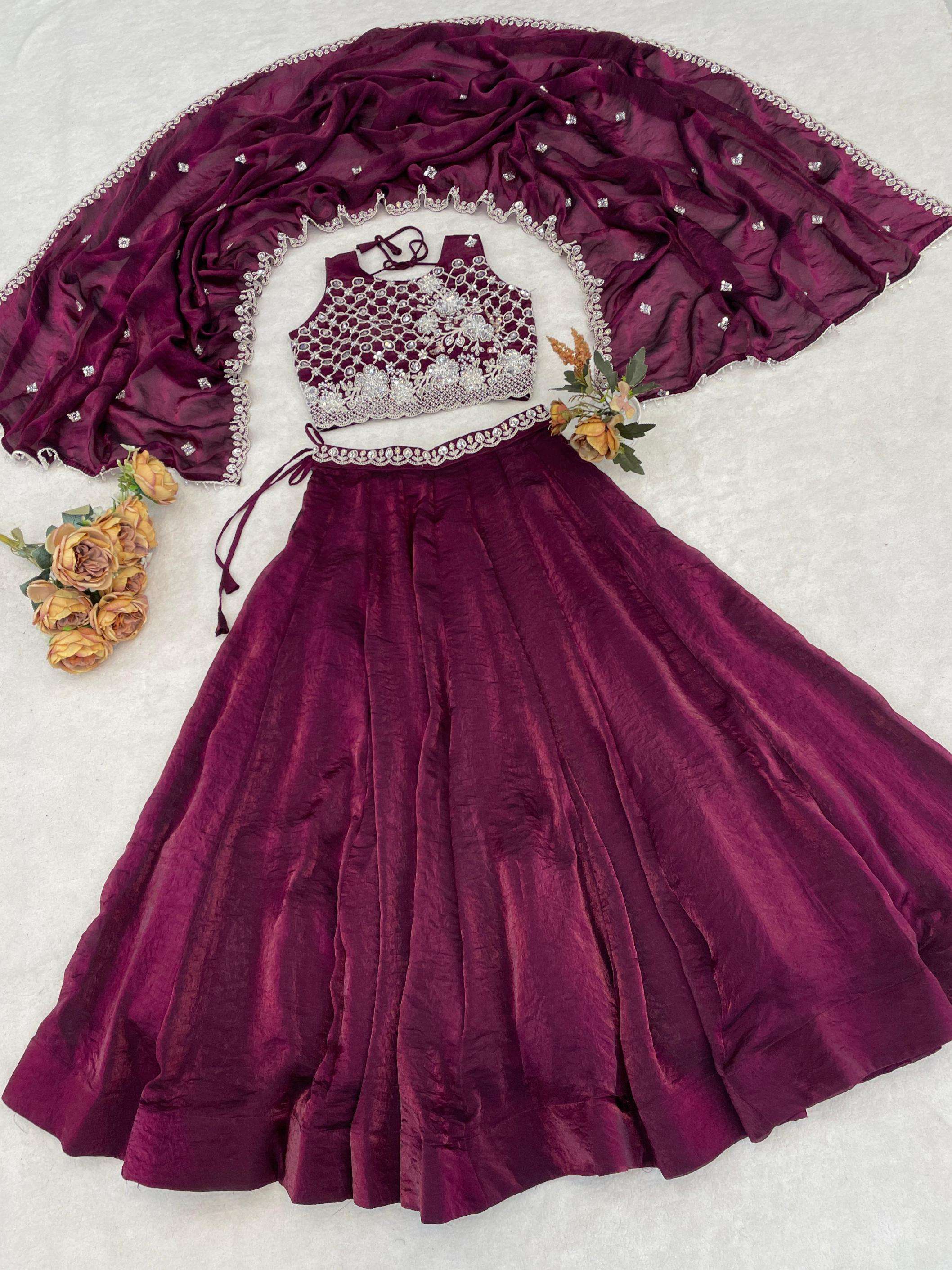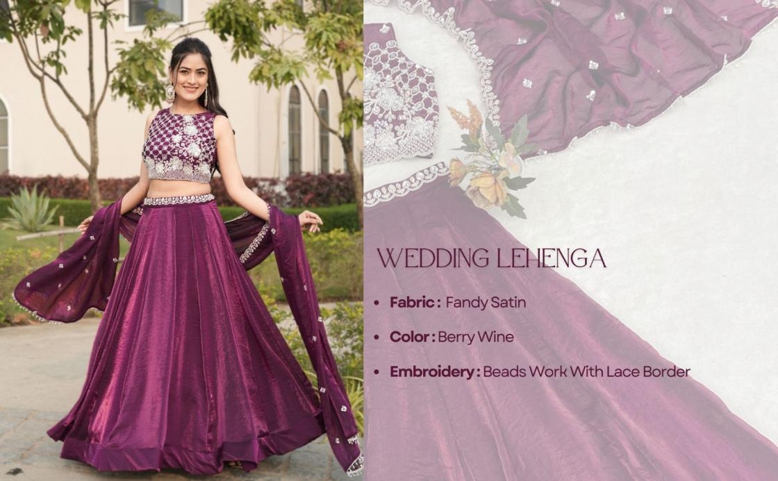 | Other Details: | New Arrivals Fendy Silk Lehenga Choli Set 👜 ✨ Steal the spotlight in Wine! ✨ Presenting our latest arrival: This elegant deep Wine lehenga features a heavily beaded unstitched Blouse, lustrous silk skirt with a matching Bead and embroidered waistband and a coordinated dupatta.✨👜 GRTN8123BERRYWINE Catalog: Sangria Lehenga(Stitched) Blouse(Unstitched) Dupatta Package Contain: Lehenga (Fully Stitched), Blouse(Unstitched) , Dupatta, Drawstring with Zip, Tassels