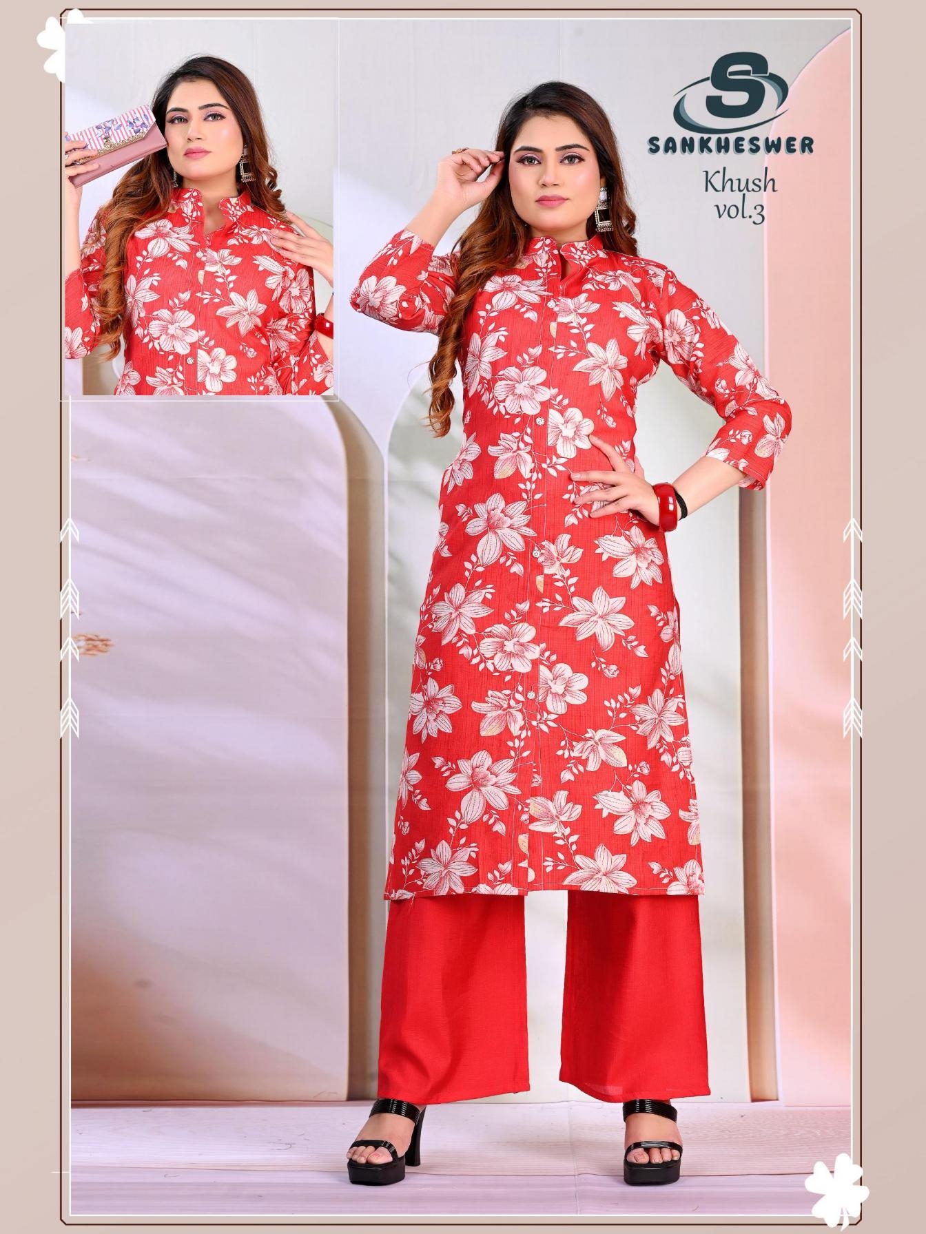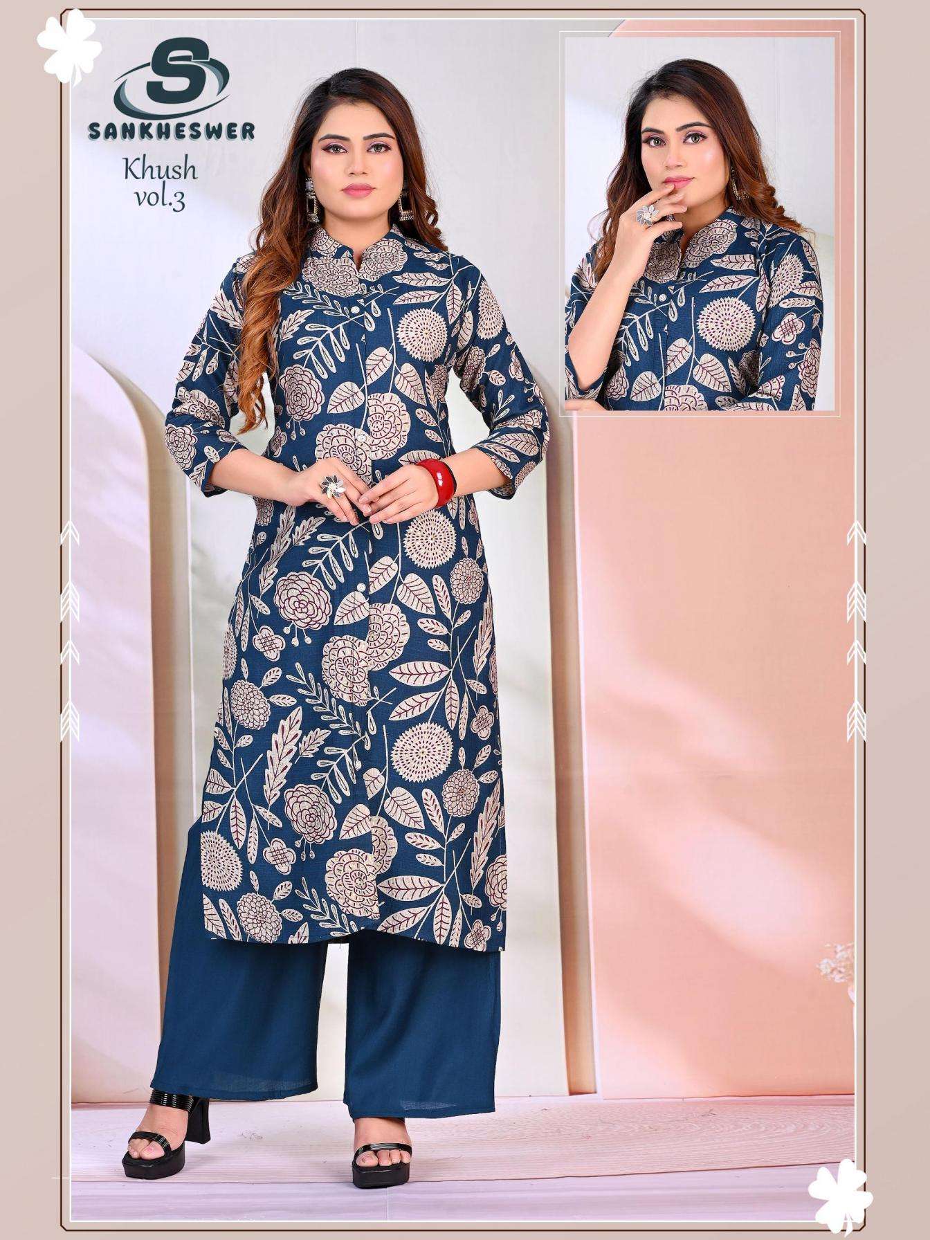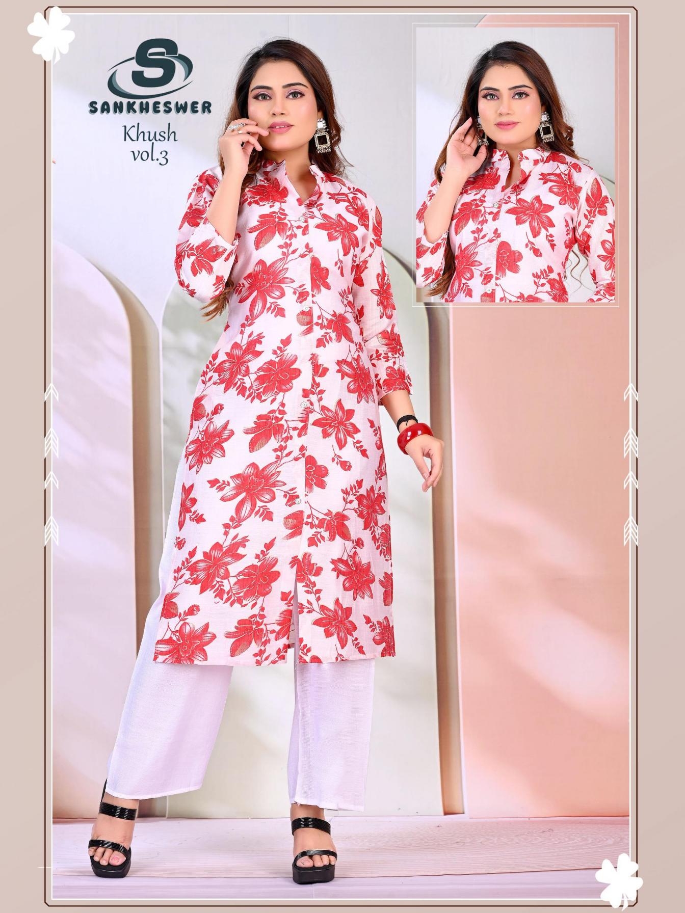 | Name: | Sankheswer Khush Vol 3 Vertican Foil Decharge Print Kurti With Bottom | |