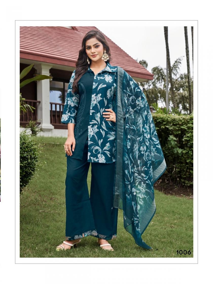 | Other Details: | 👏🏻👏🏻 Catalouge : 💃 KITKET VOL-1💃 Fabric in Top : VERTICAN FOIL DECHARGE PRINT Spec. : 3 Pcs set