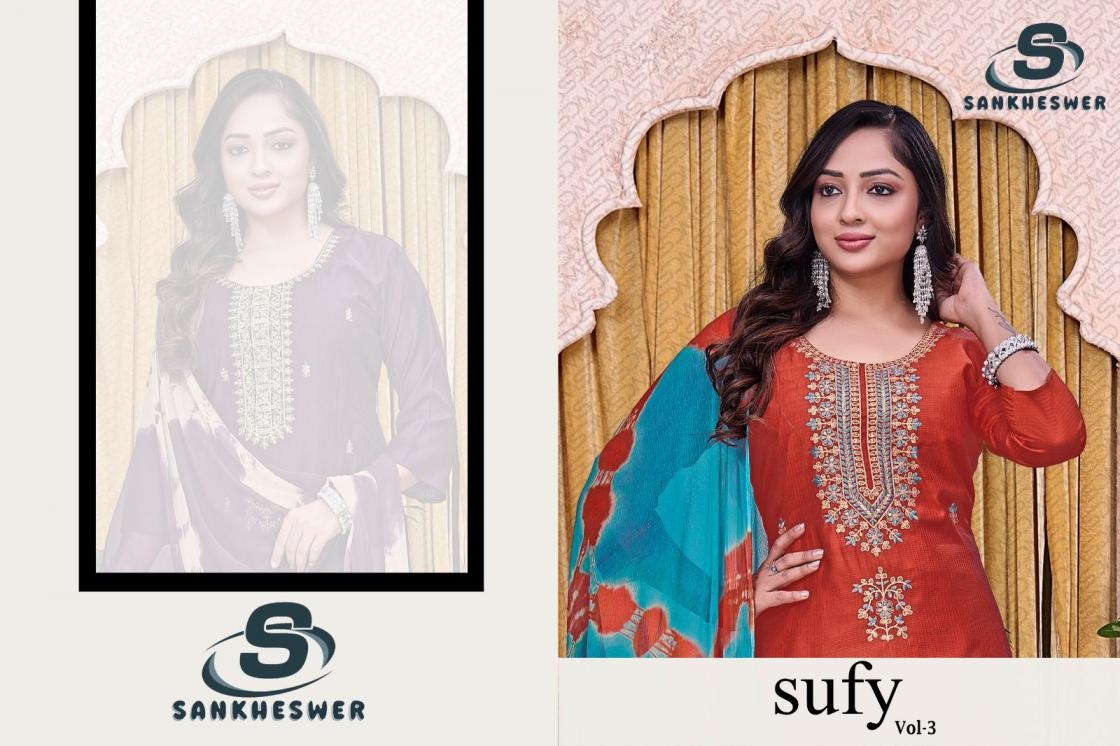 | Name: | Sankheswer Sufy Vol 3 Series 1001 To 1008 Viscose Barline Readymade Unique Suits In Wholesale Surat |