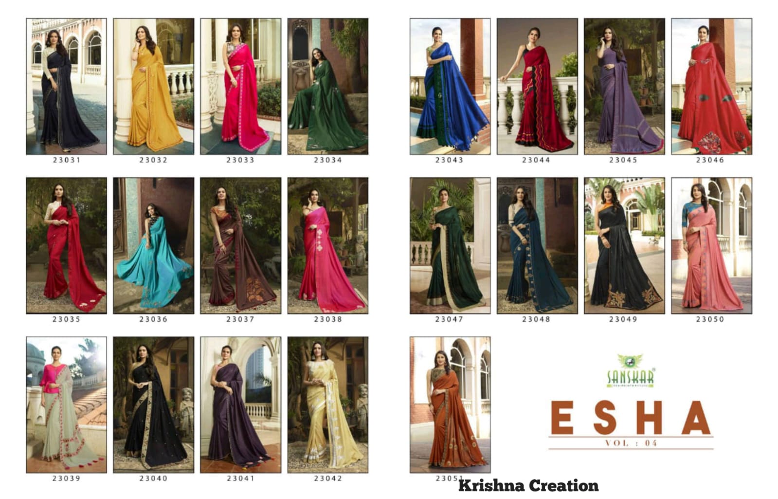Other Details: | We are launching our new Saree Catalog Brand – SANSKAR PRINT TEX . Catalog Name : ESHA VOL 4 SERIES ~ 23031-23051 Fabrics – FANCY * Set to set * Rate ~ 1245/- only Pc – 21 GST 5 Percent Extra. Delivery 3-4 days Book your order now . |