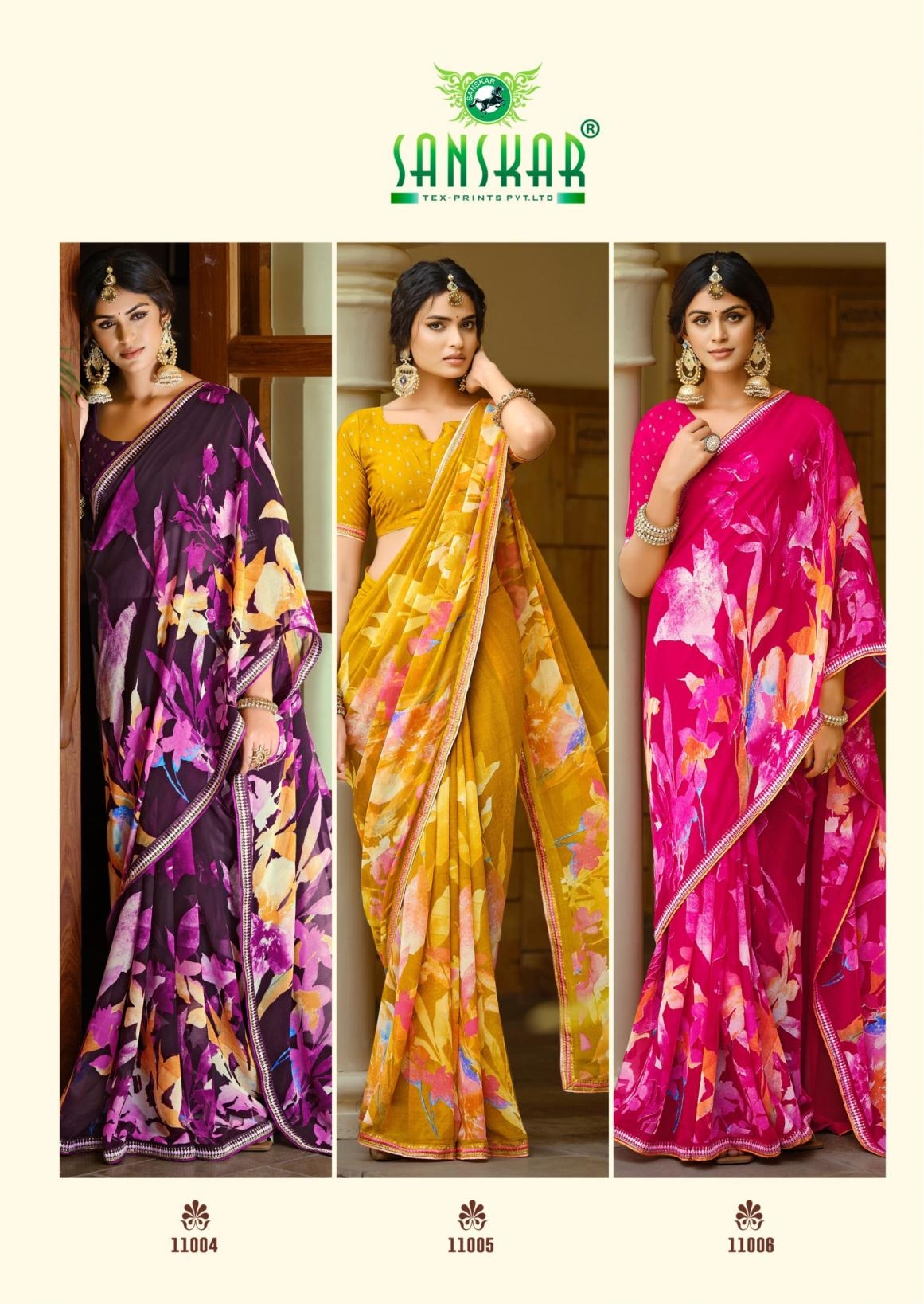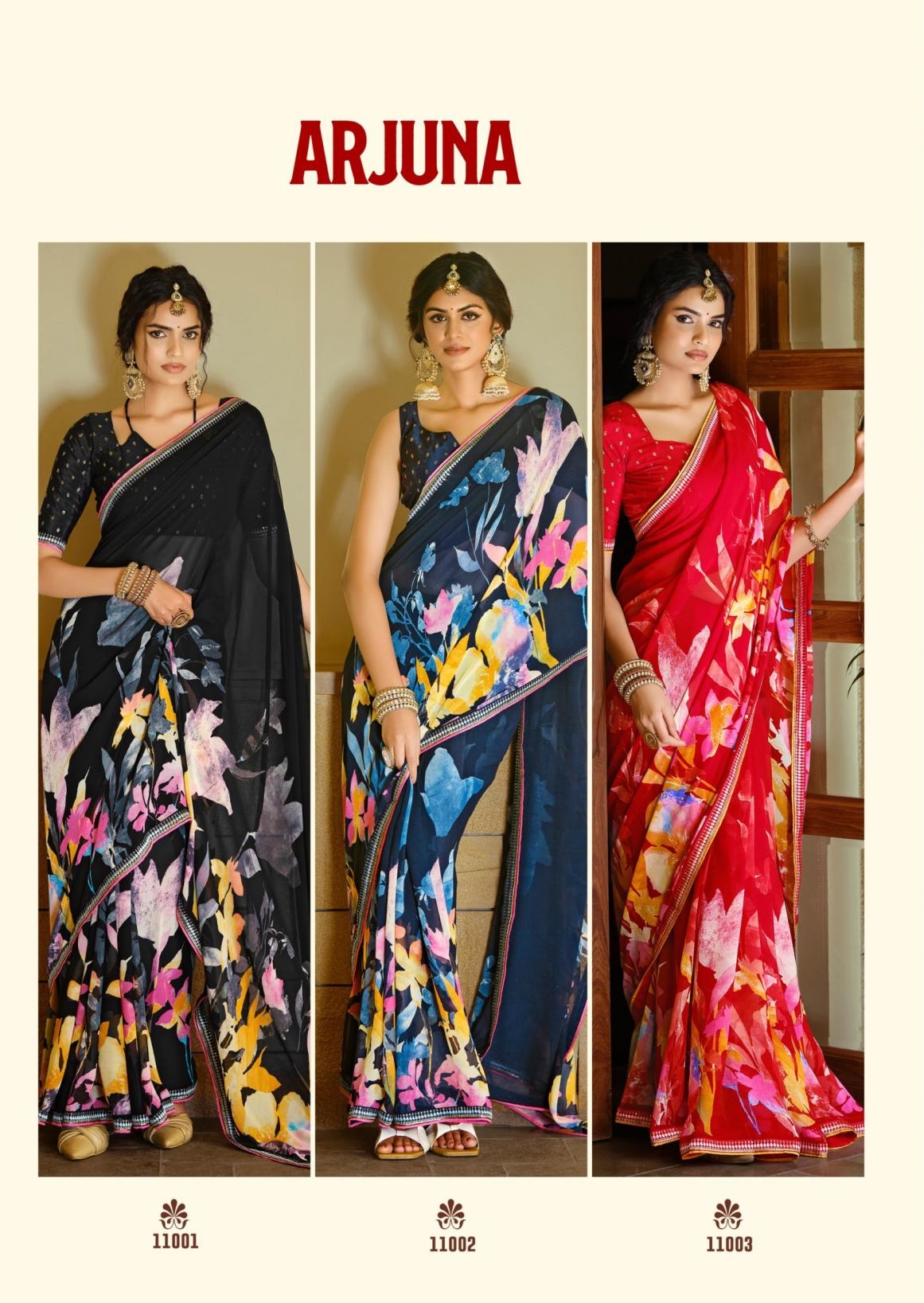 | Name: | Sanskar Tex Prints Arjuna Series 11001-11006 Bember Georgette Wholesale Saree |