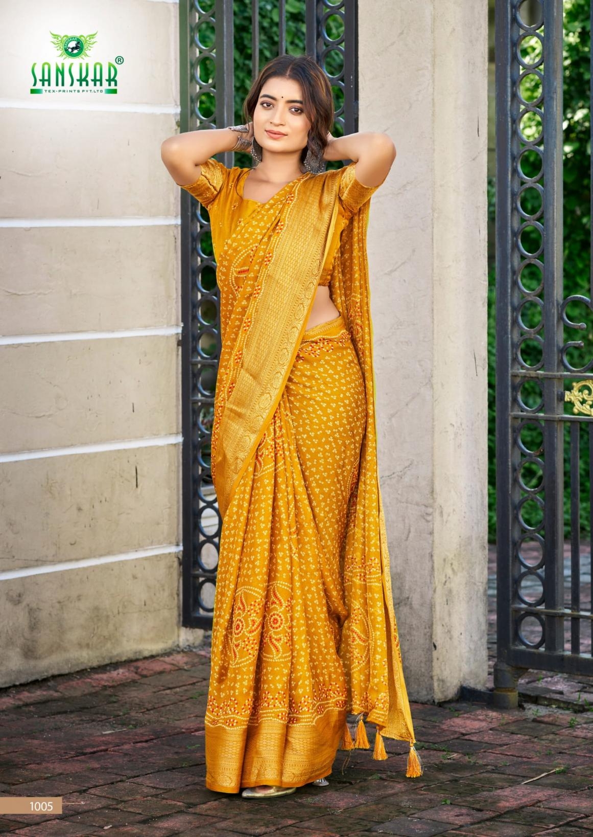 | Name: | Sanskar Tex Prints Bandhani Culture Series 1001-1006 Rich Zequard Wholesale Saree In Surat | |