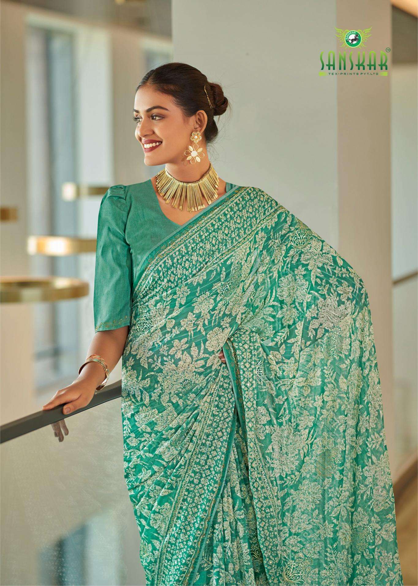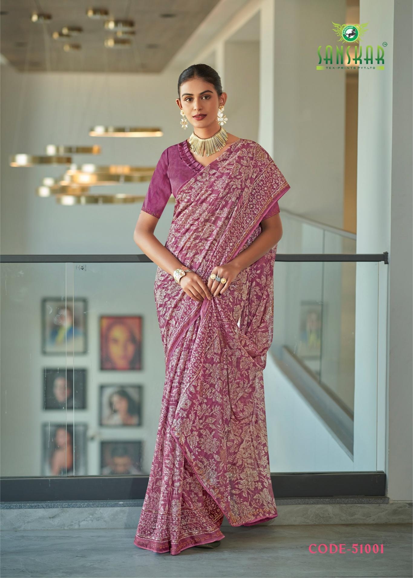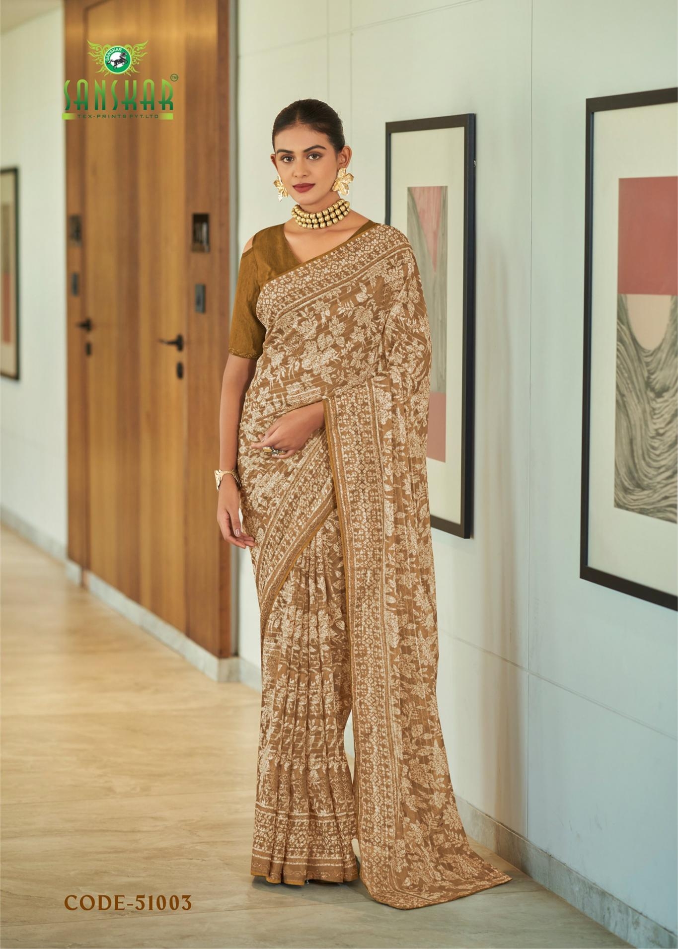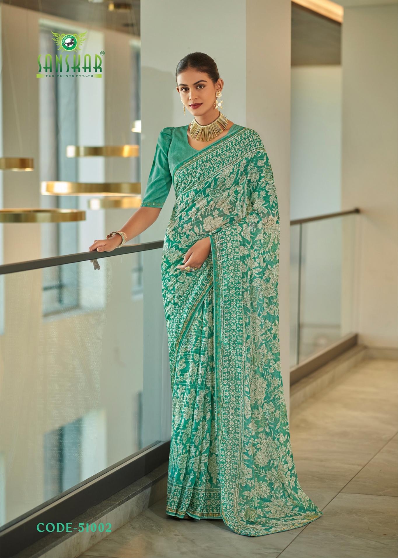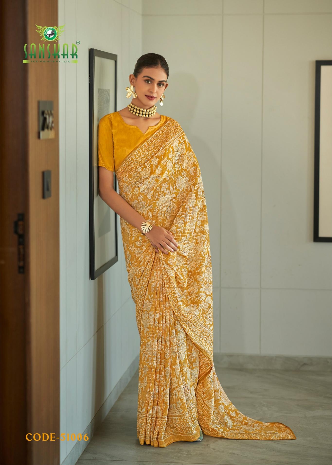 | Name: | Sanskar Tex Prints Divya Series 51001-51006 Bember Georgette Wholesale Saree | |
