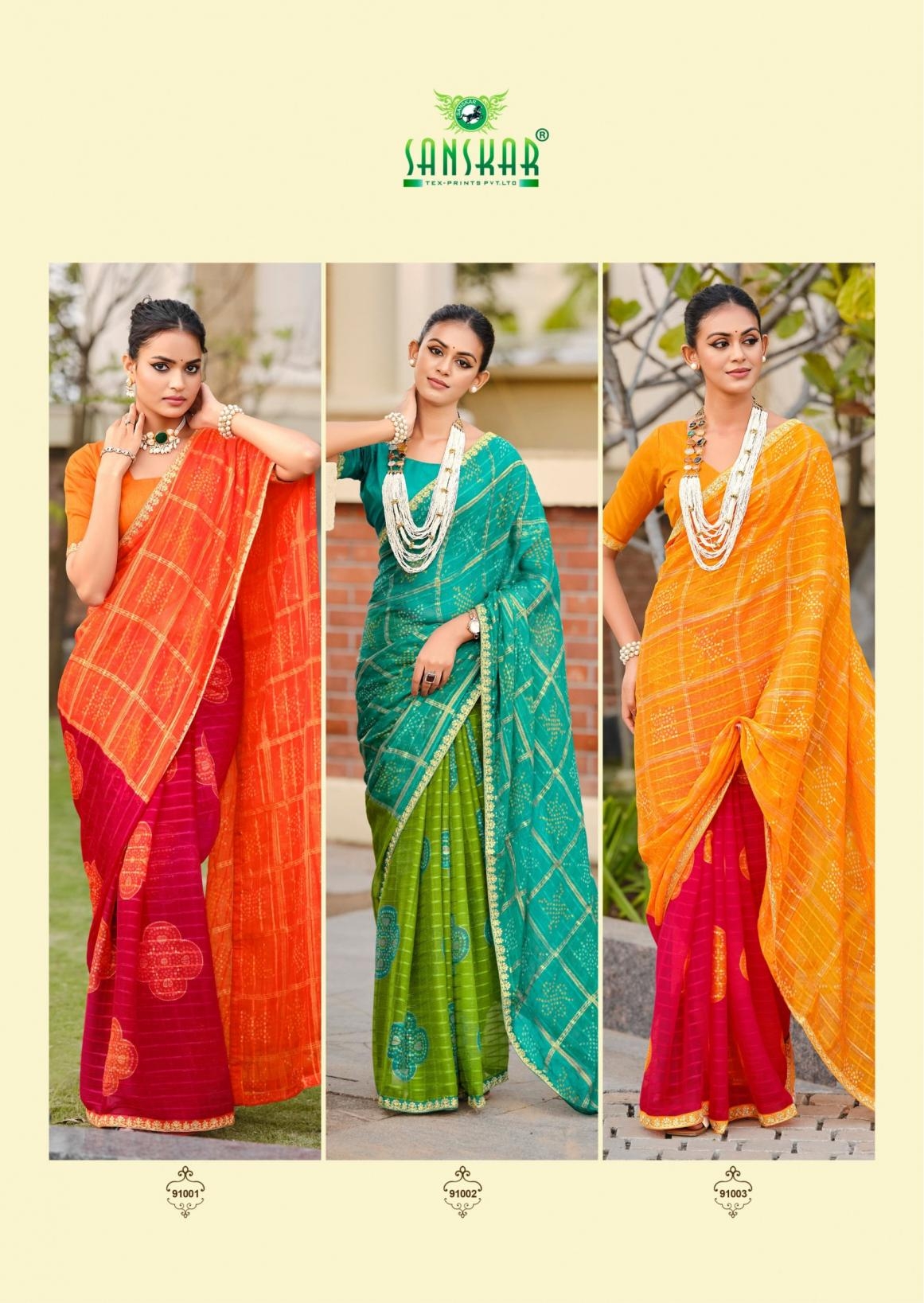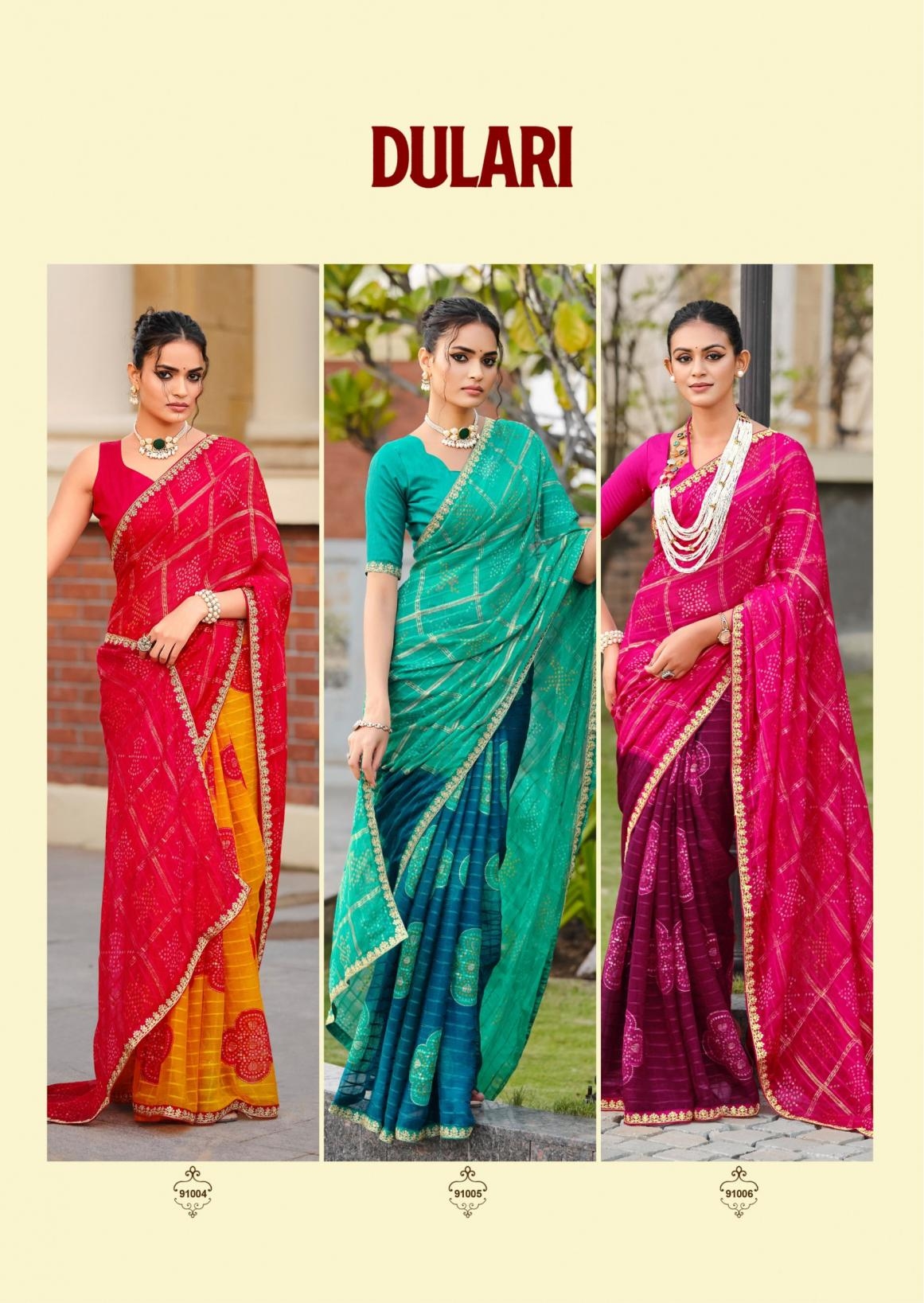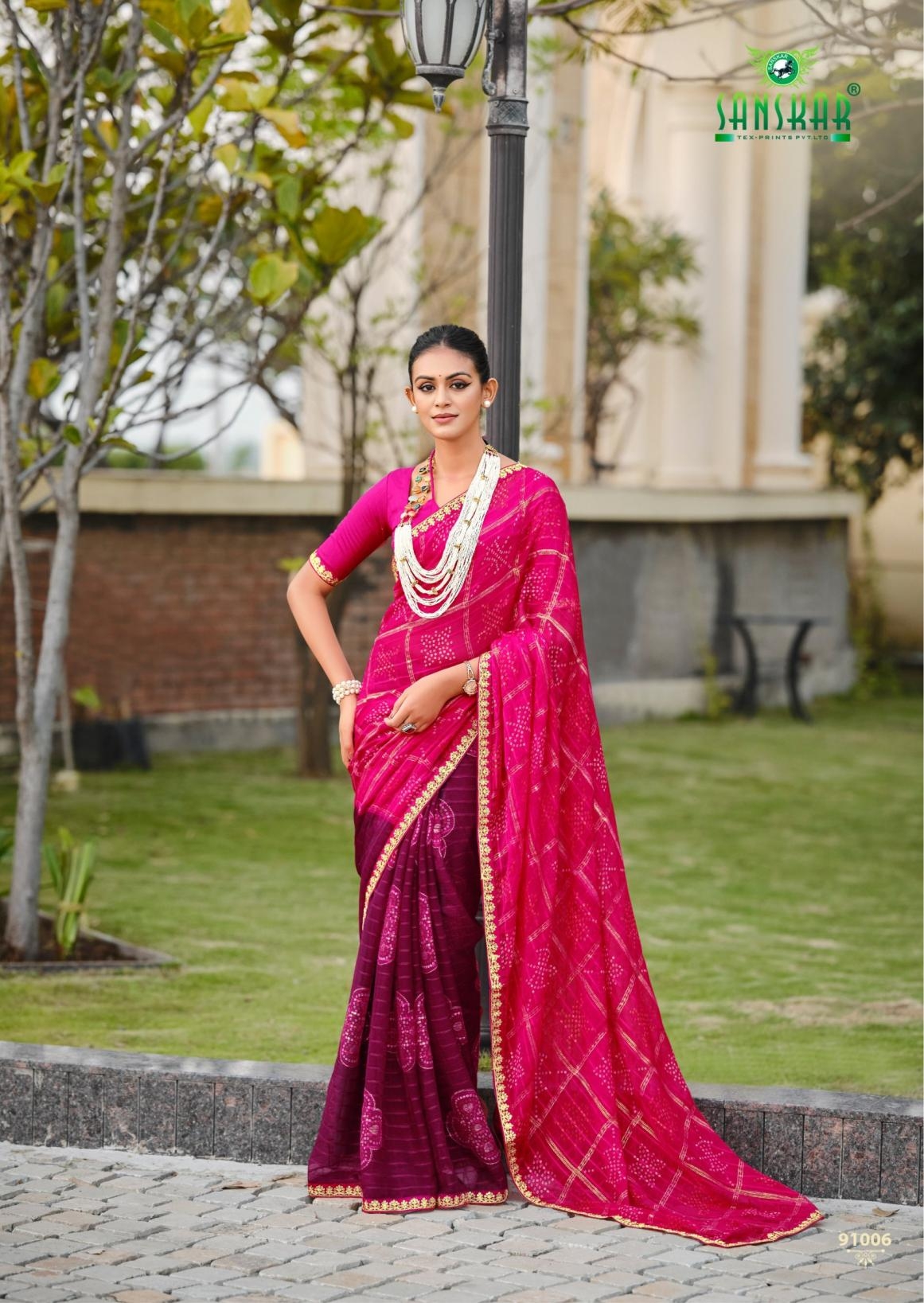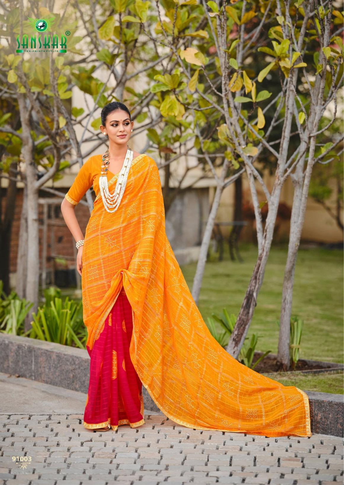 | Name: | Sanskar Tex Prints Dulari Series 91001-91006 Chiffon Wholesale Saree |