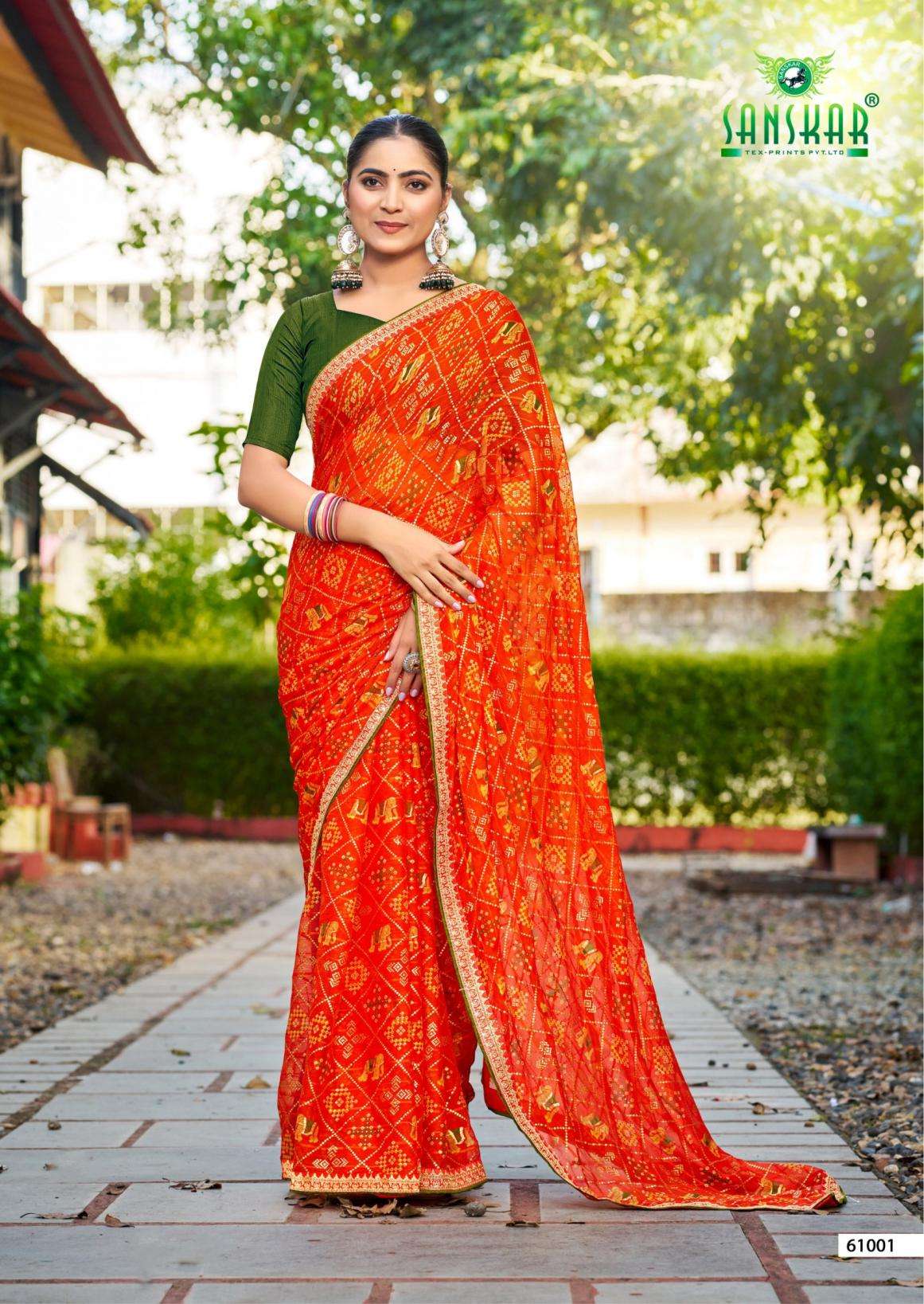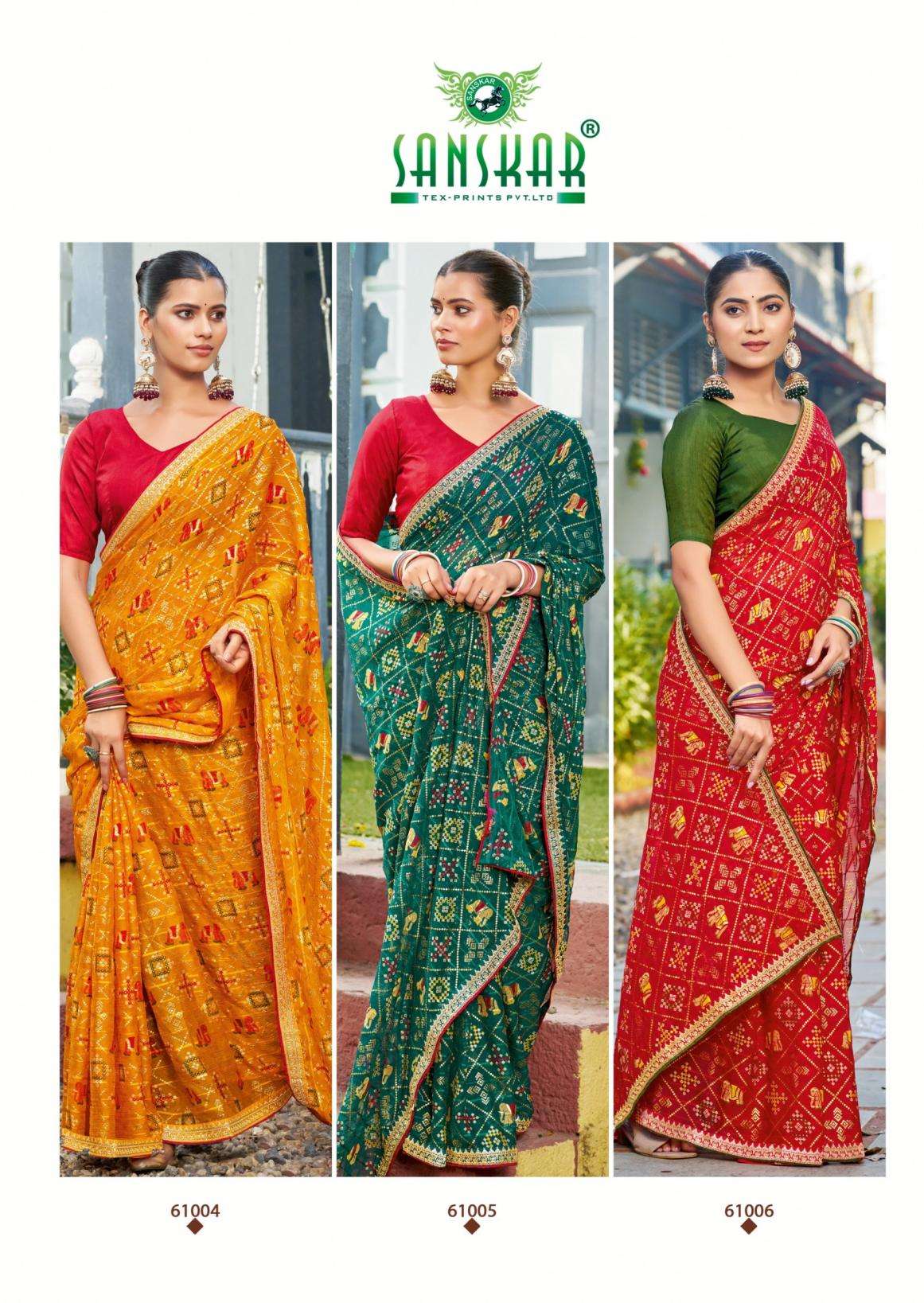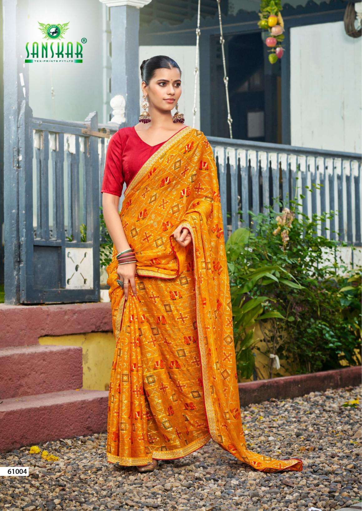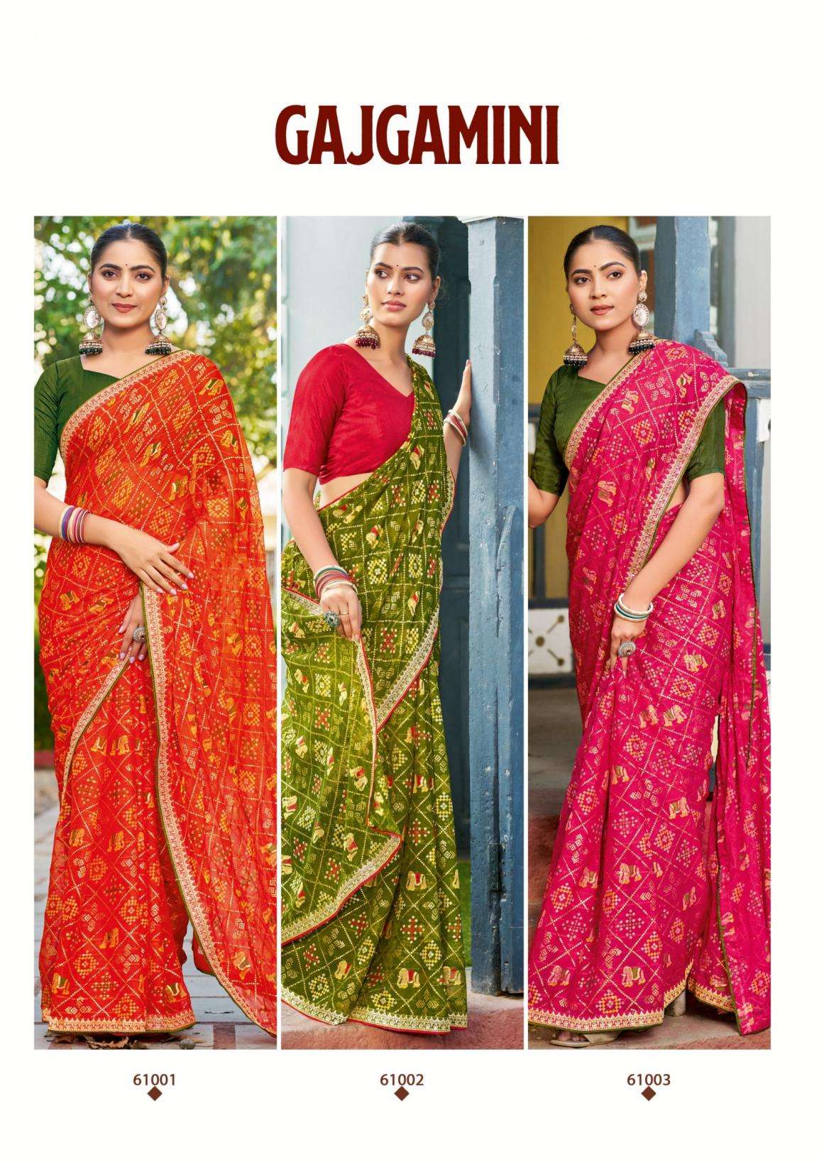 | Name: | Sanskar Tex Prints Gajgamini Series 61001-61006 Fancy Chiffon Wholesale Saree |