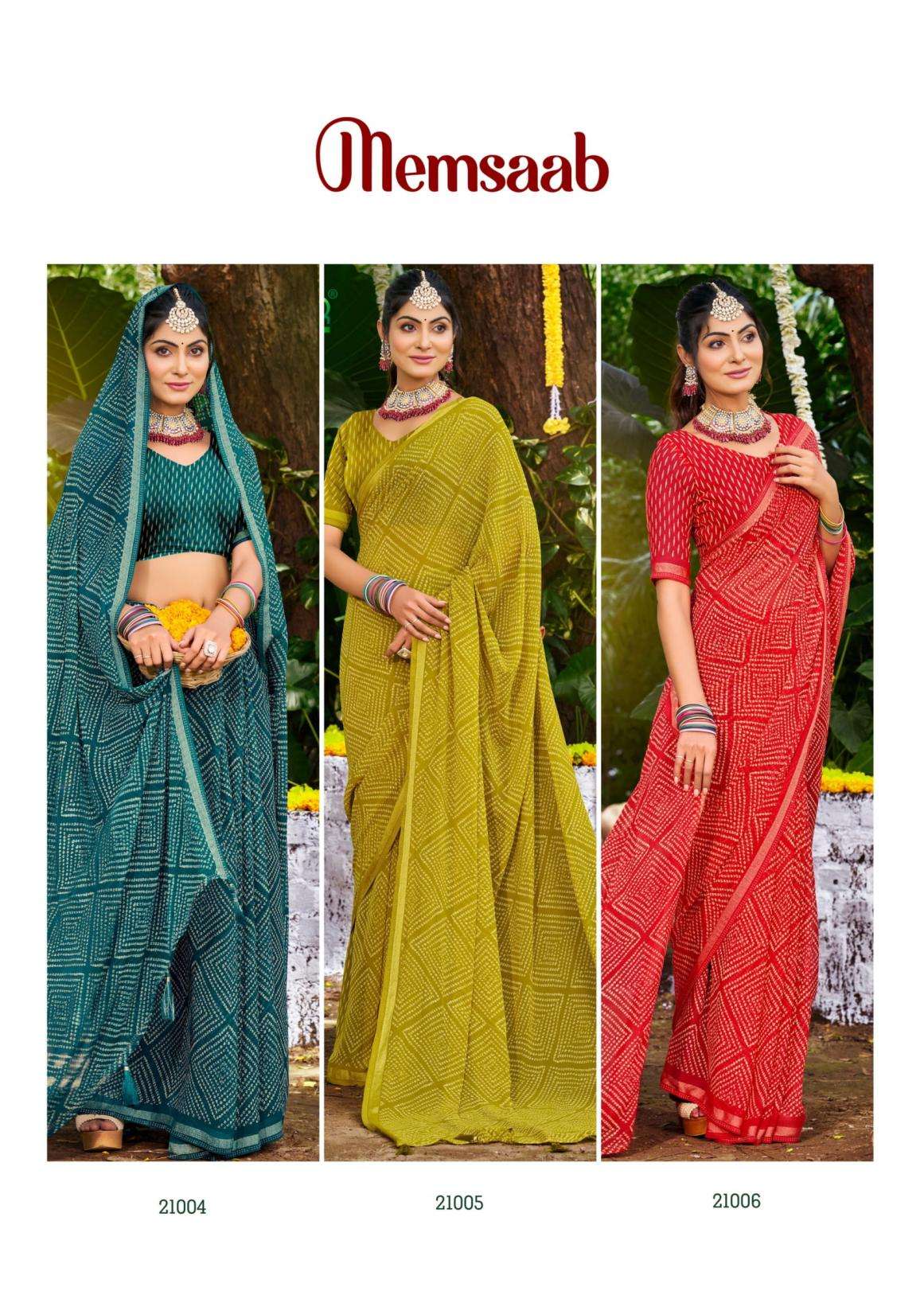 | Name: | Sanskar Tex Prints Memsaab Series 21001-21006 Bember Georgette Wholesale Saree |