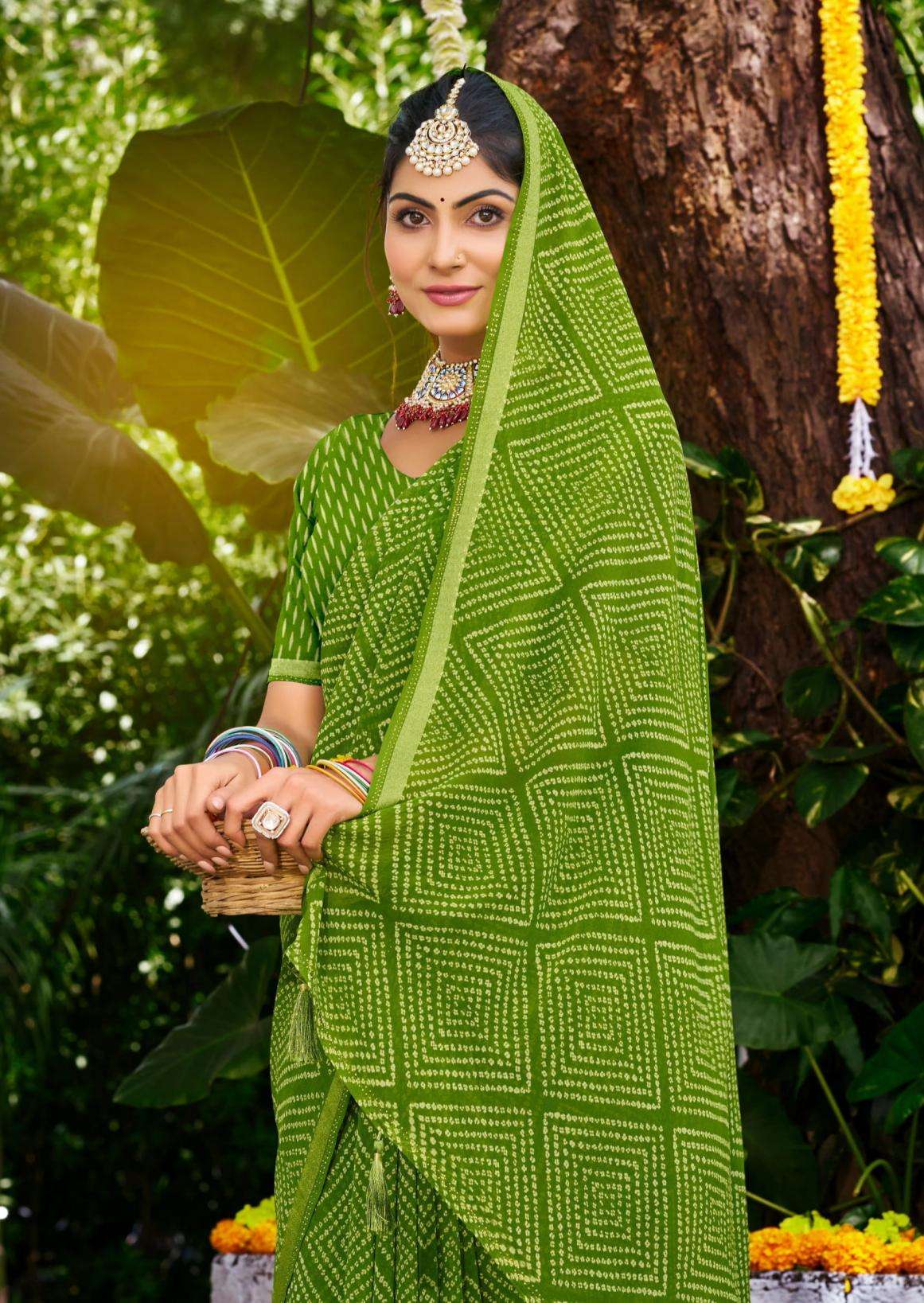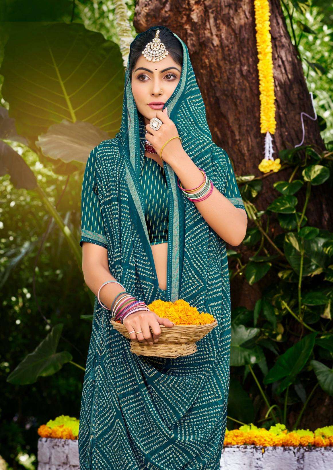 | Other Details: | Sanskar tex prints pvt. ltd. New catlouge launching CATLOUGE- MEMSAAB Fabric- Bember Georgette with fancy value addition sirowski work weaving border & running blouse, Latkan Qty- 6 Colour RATE - 705₹