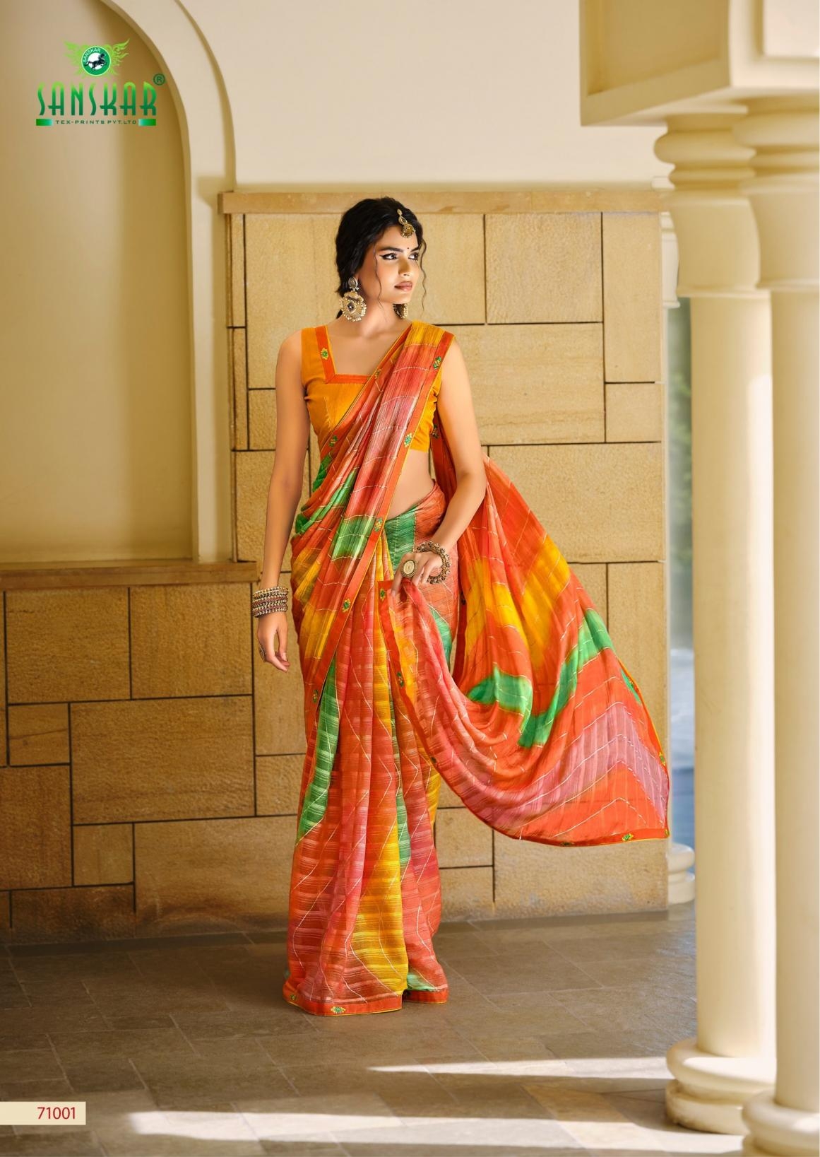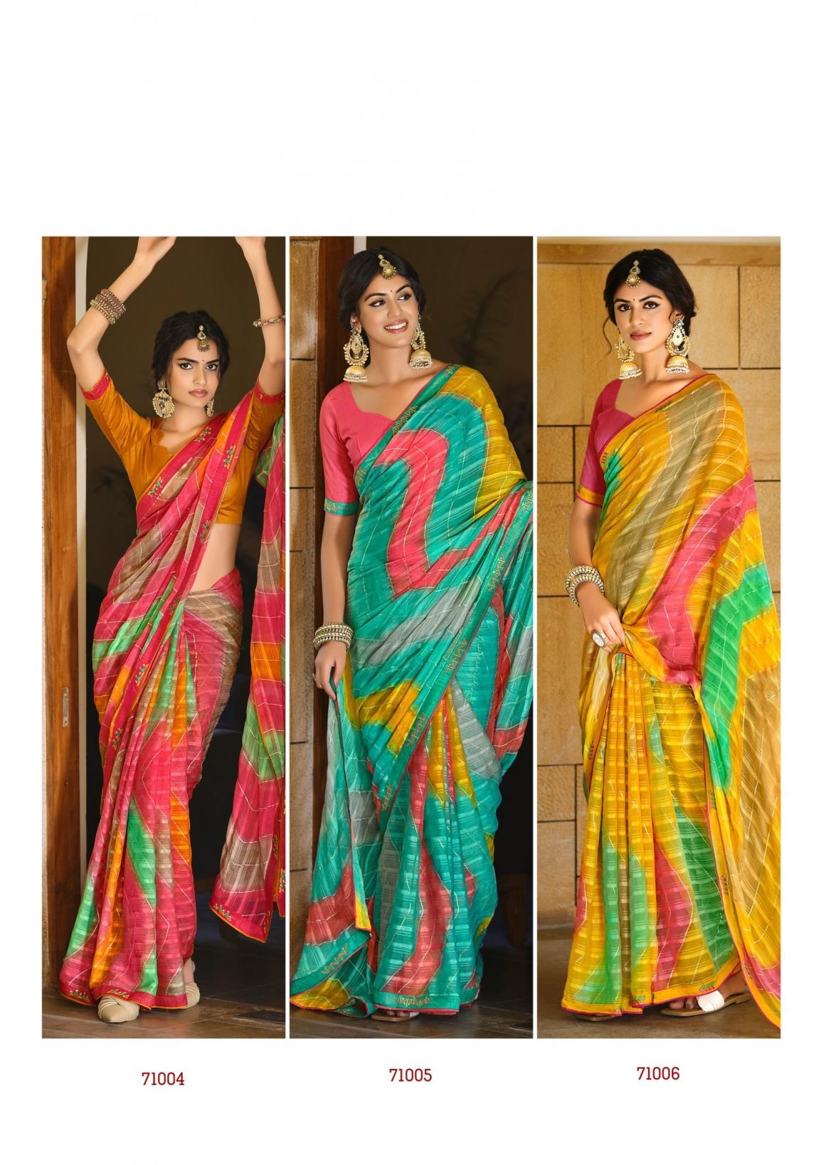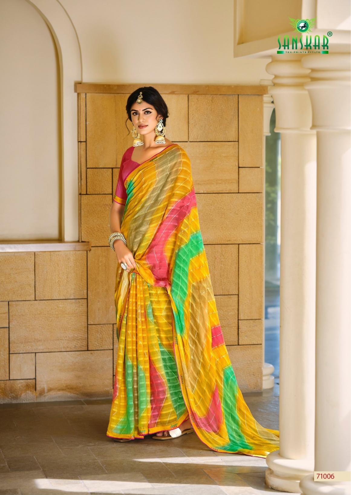 | Name: | Sanskar Tex Prints Nandita Series 71001-71006 Chiffon Georgette Wholesale Saree |