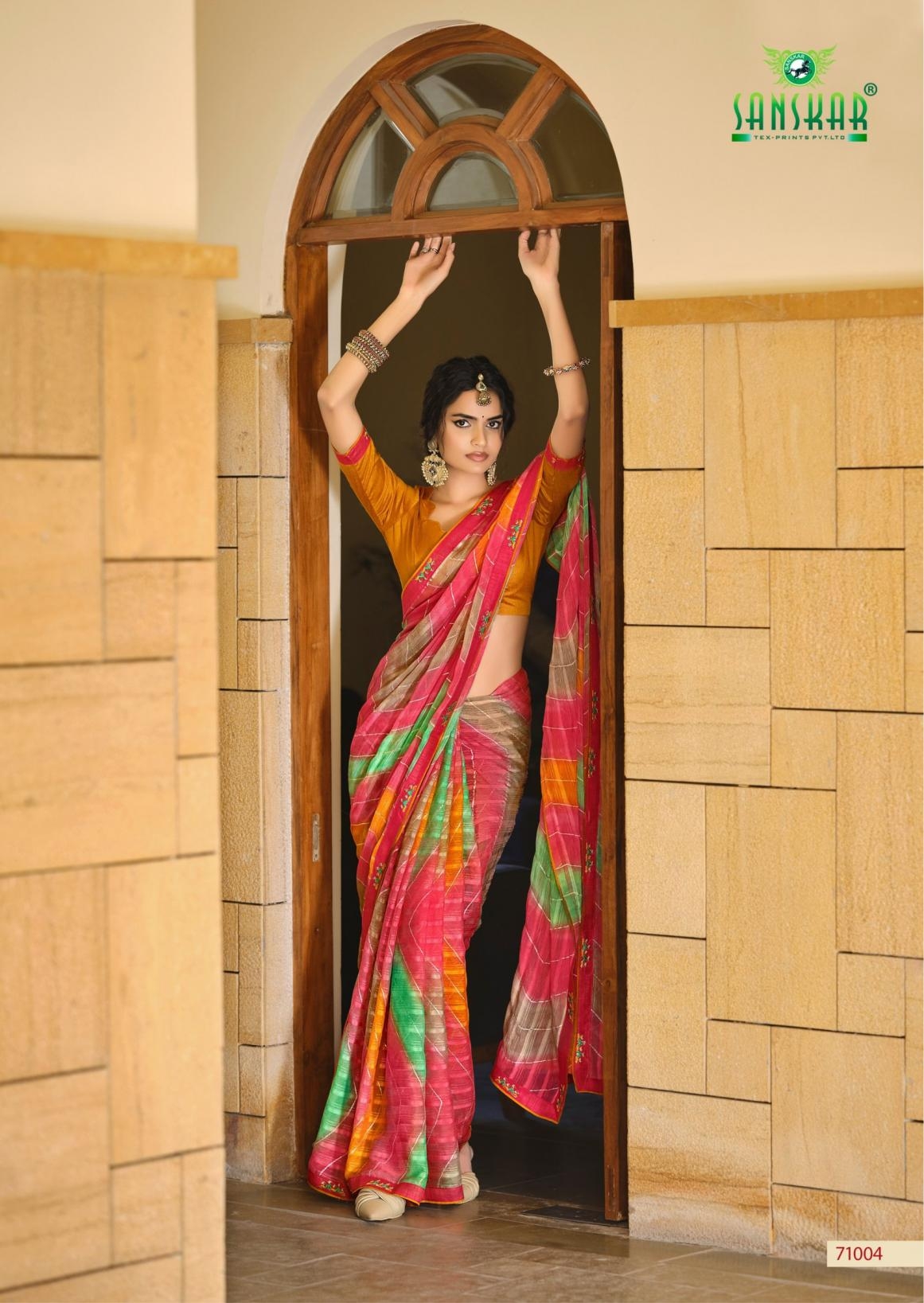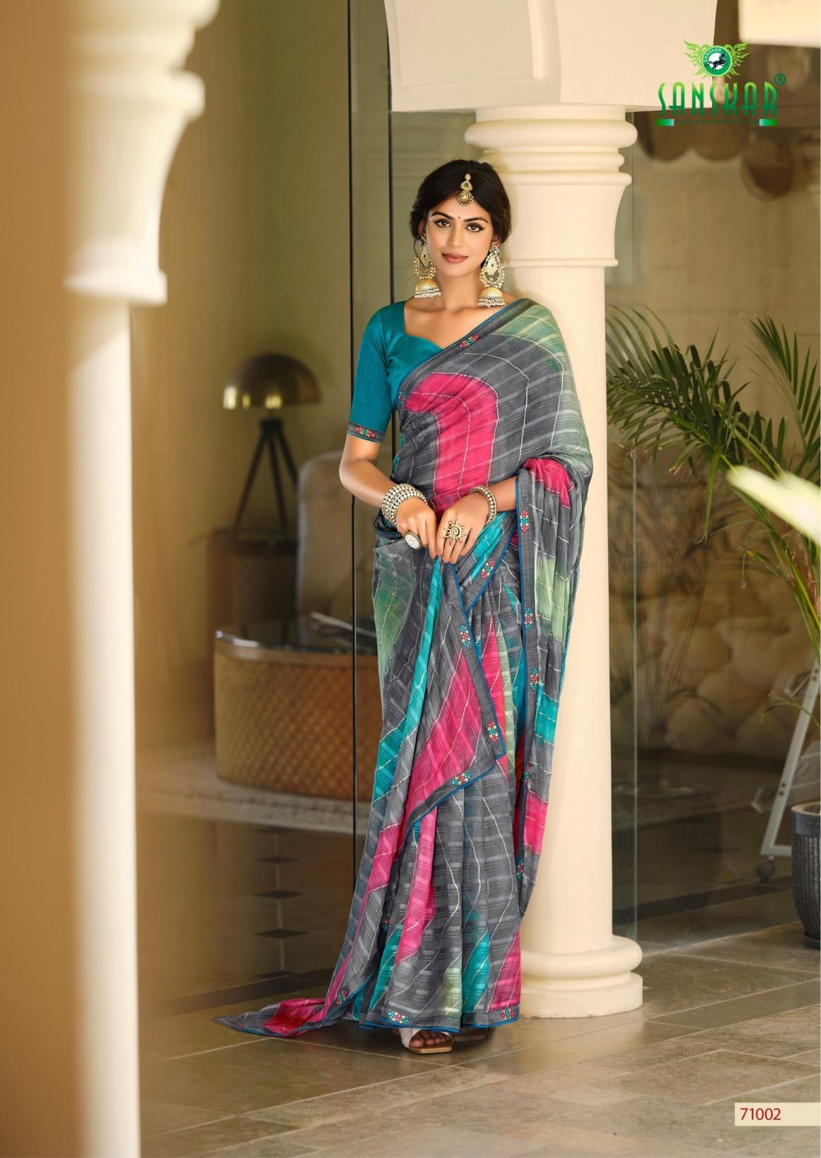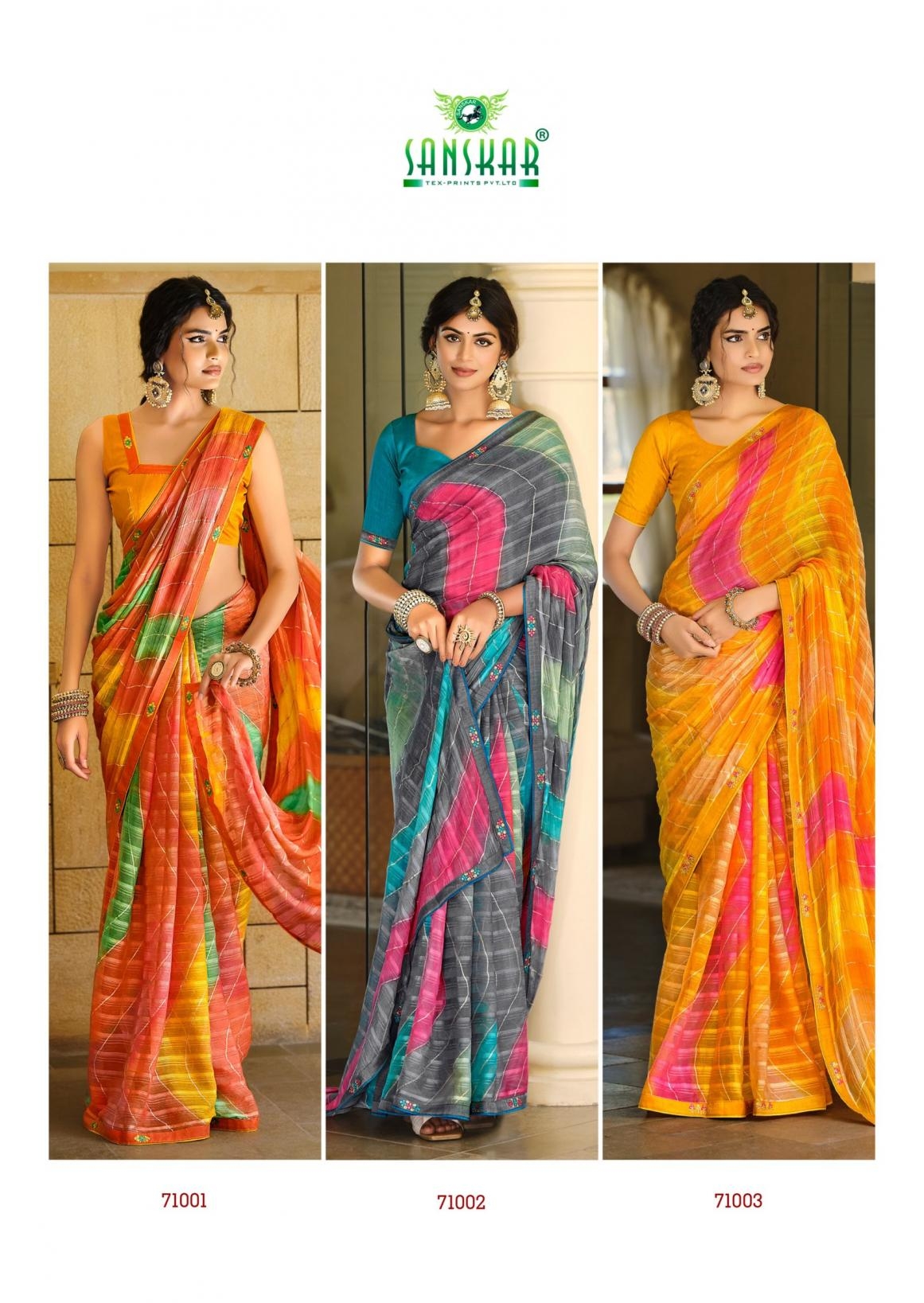 | Name: | Sanskar Tex Prints Nandita Series 71001-71006 Chiffon Georgette Wholesale Saree |