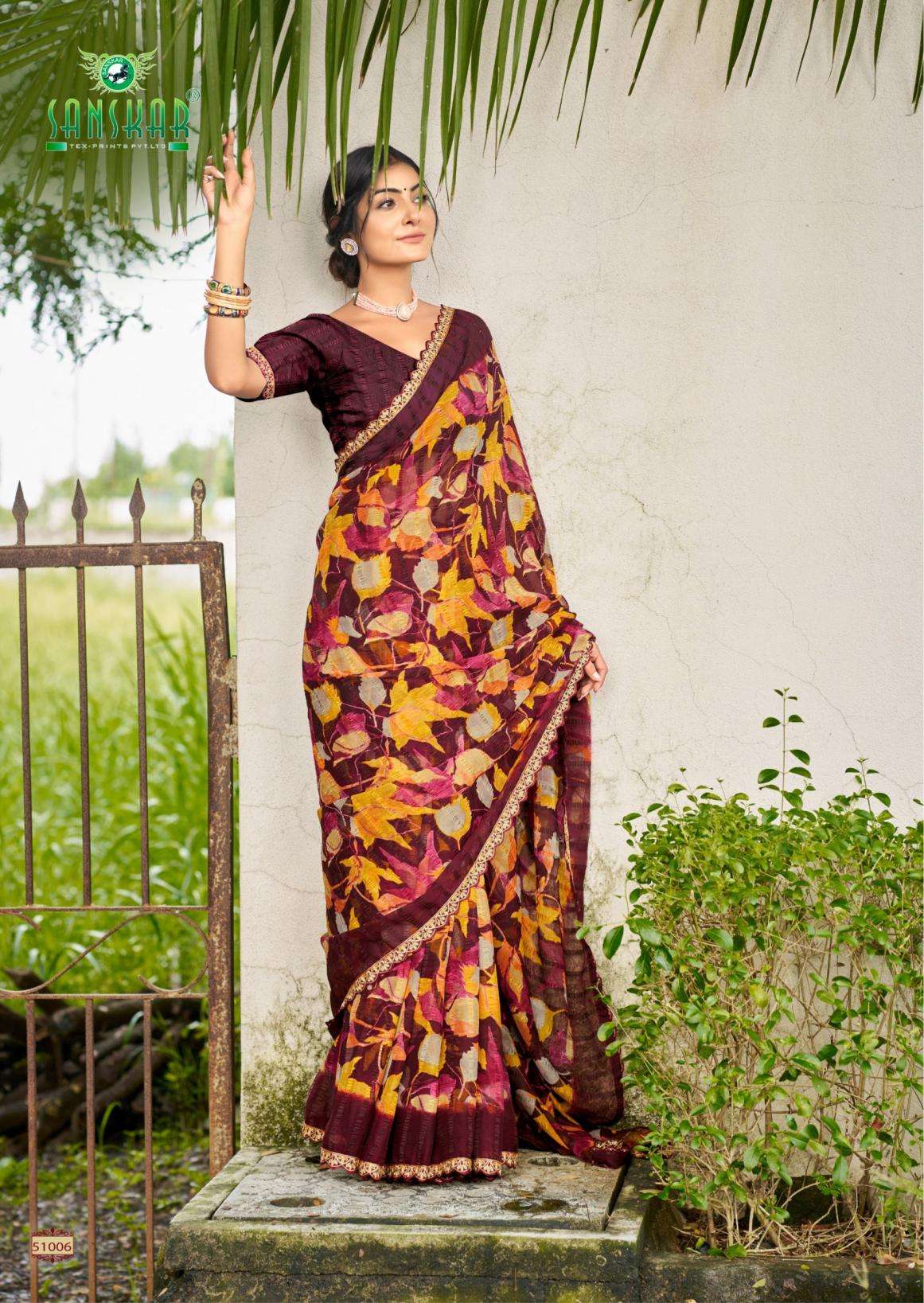 | Name: | Sanskar Tex Prints Raj Mahel Series 51001-51006 Chiffon Sarees |