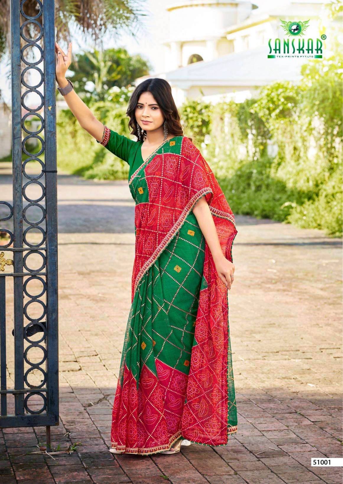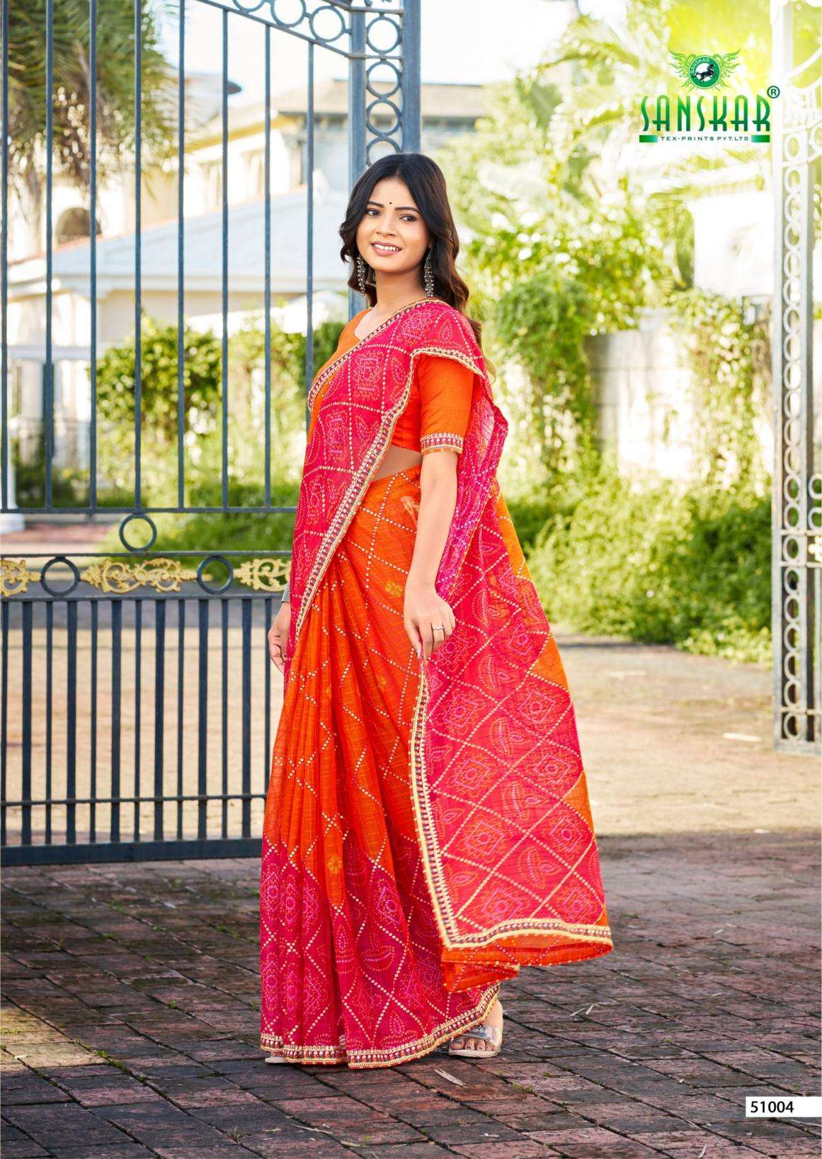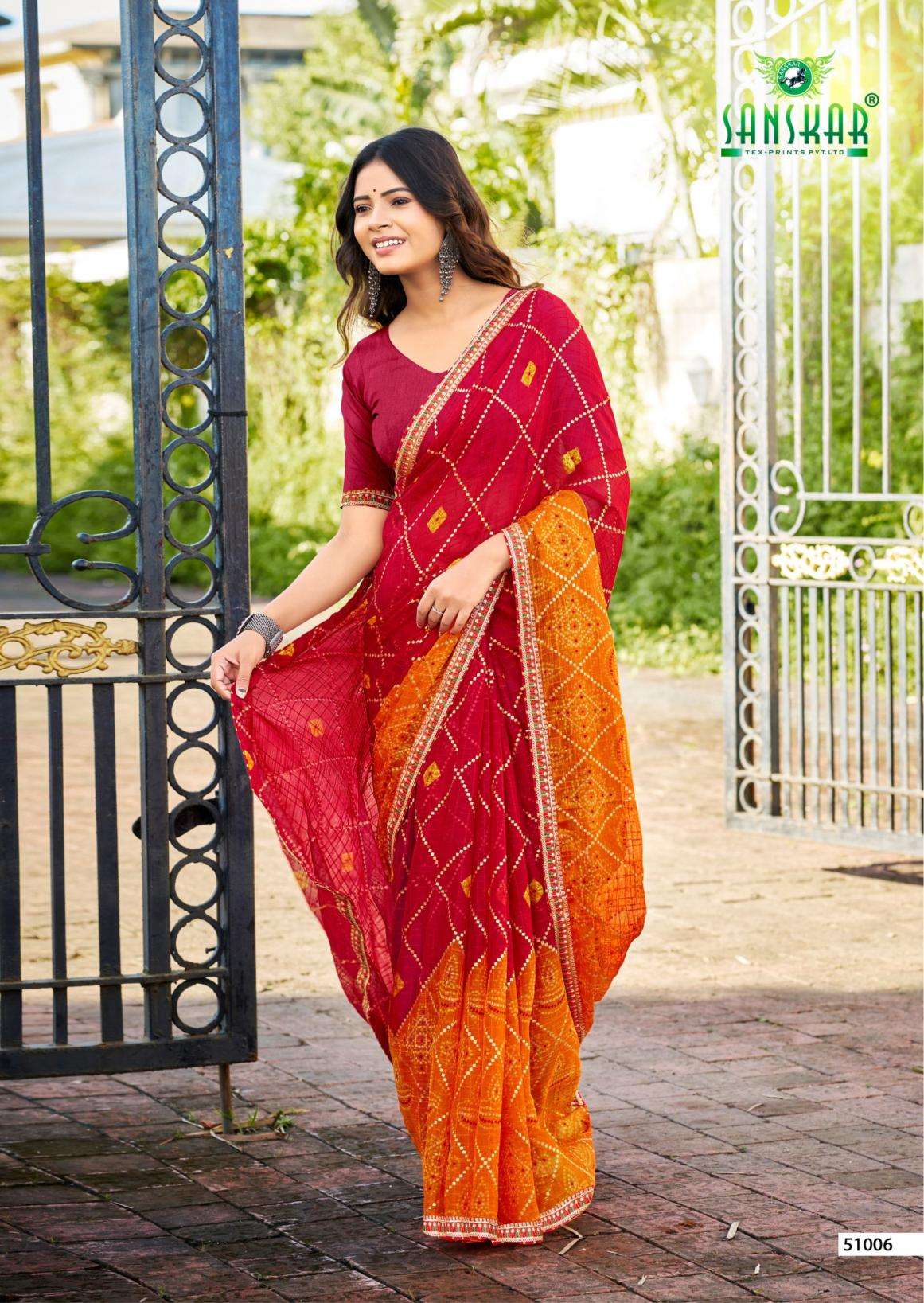 | Name: | Sanskar Tex Prints Ranisa Series 51001-51006 Chiffon Wholesale Saree |