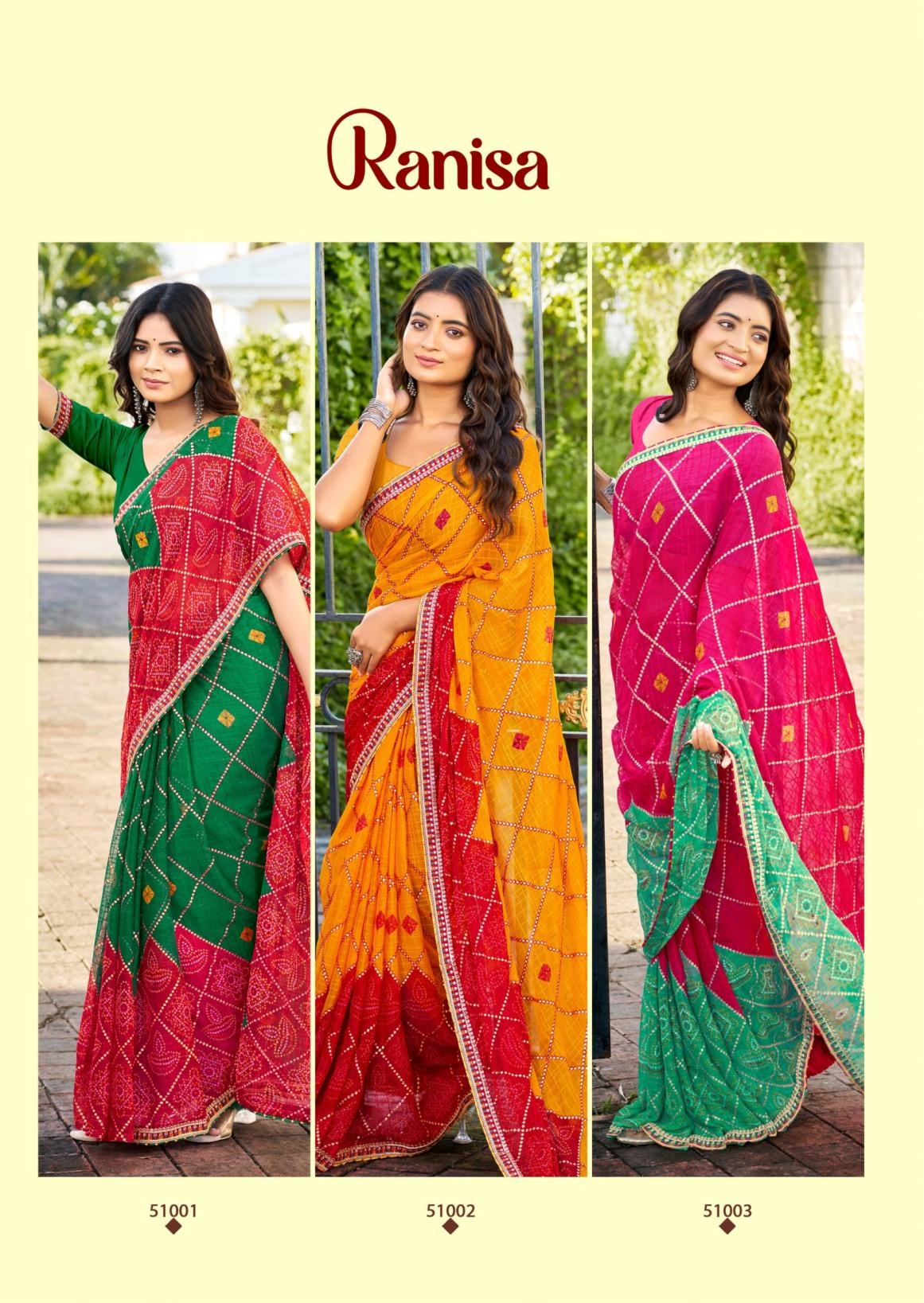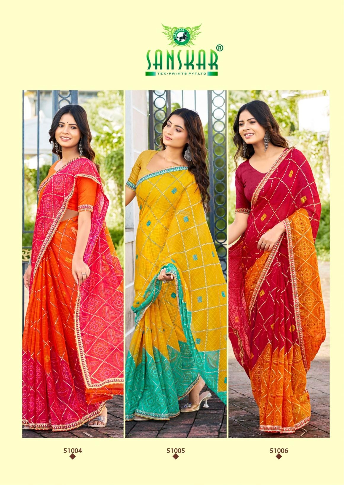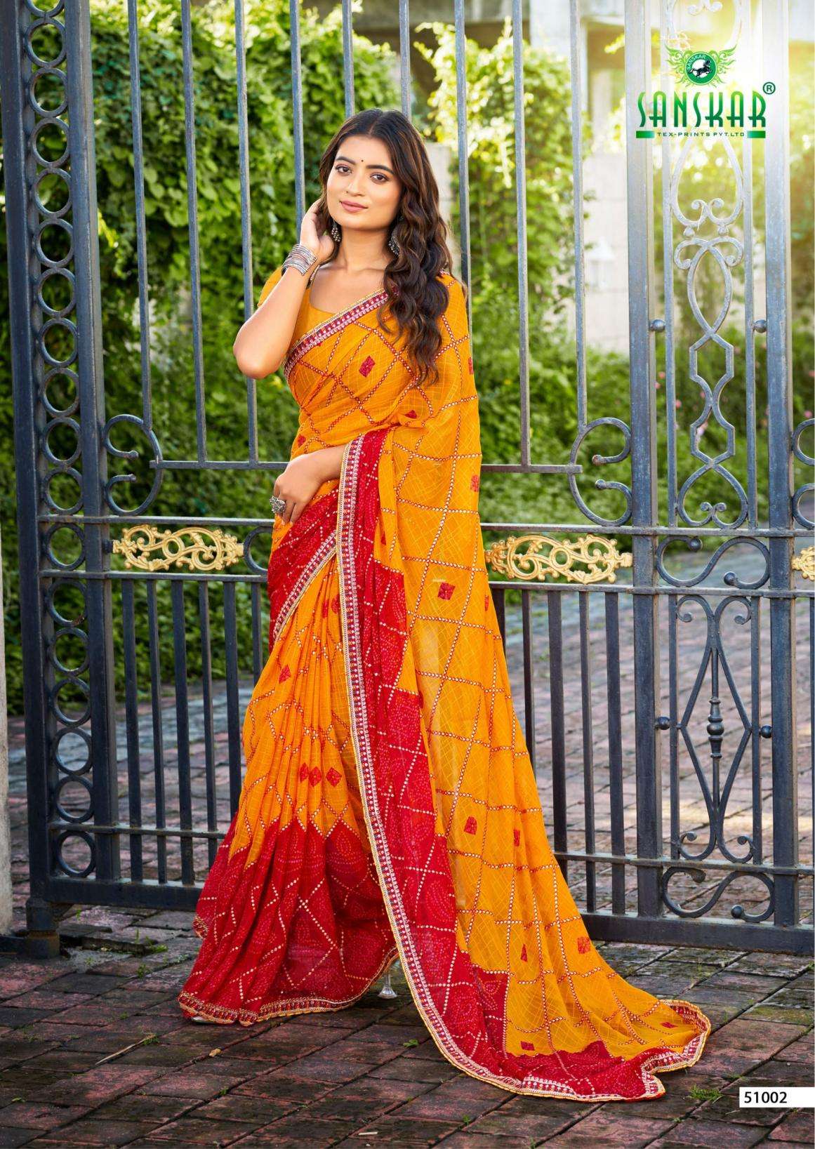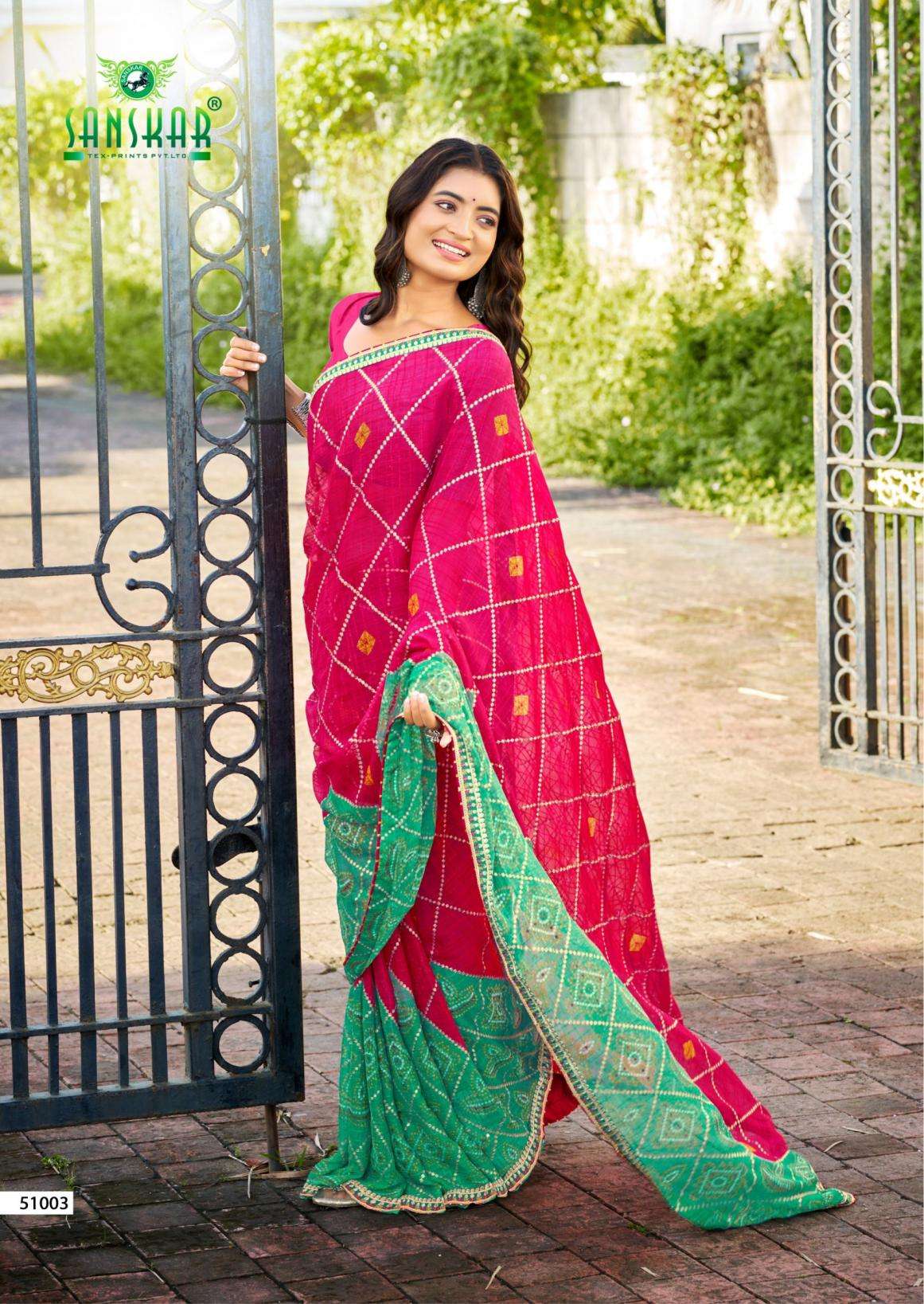 | Name: | Sanskar Tex Prints Ranisa Series 51001-51006 Chiffon Wholesale Saree |