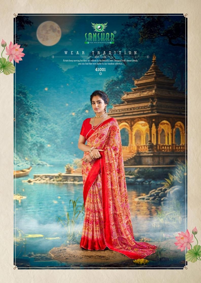 Name: | Sanskar Tex Prints Sarangi Series 41001 To 41008 Hit Design Malai Chiffon Sarees In Wholesale Surat |