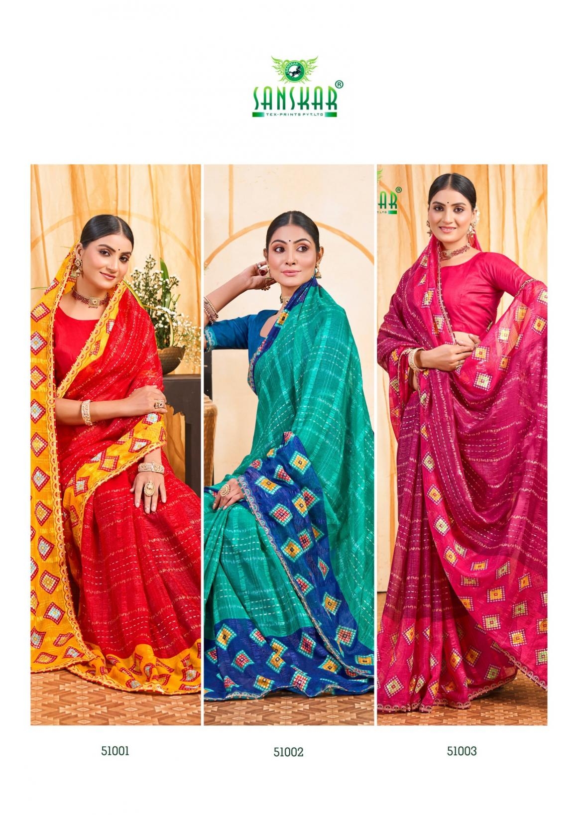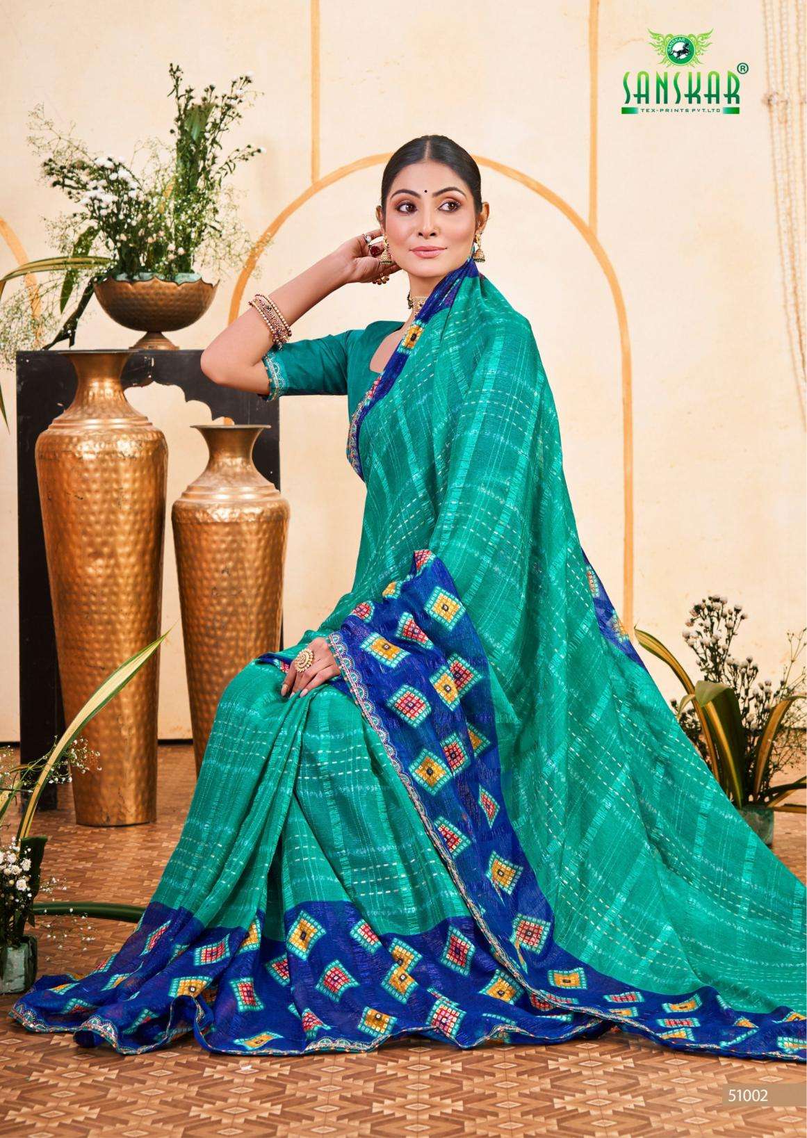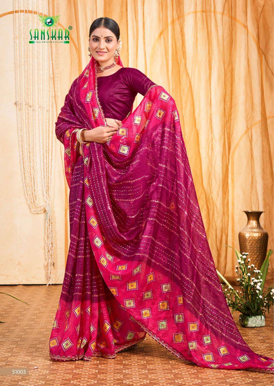| Name: | Sanskar Tex Prints Stella Series 51001-51006 Chiffon Wholesale Saree | |