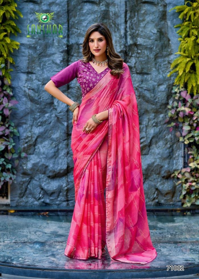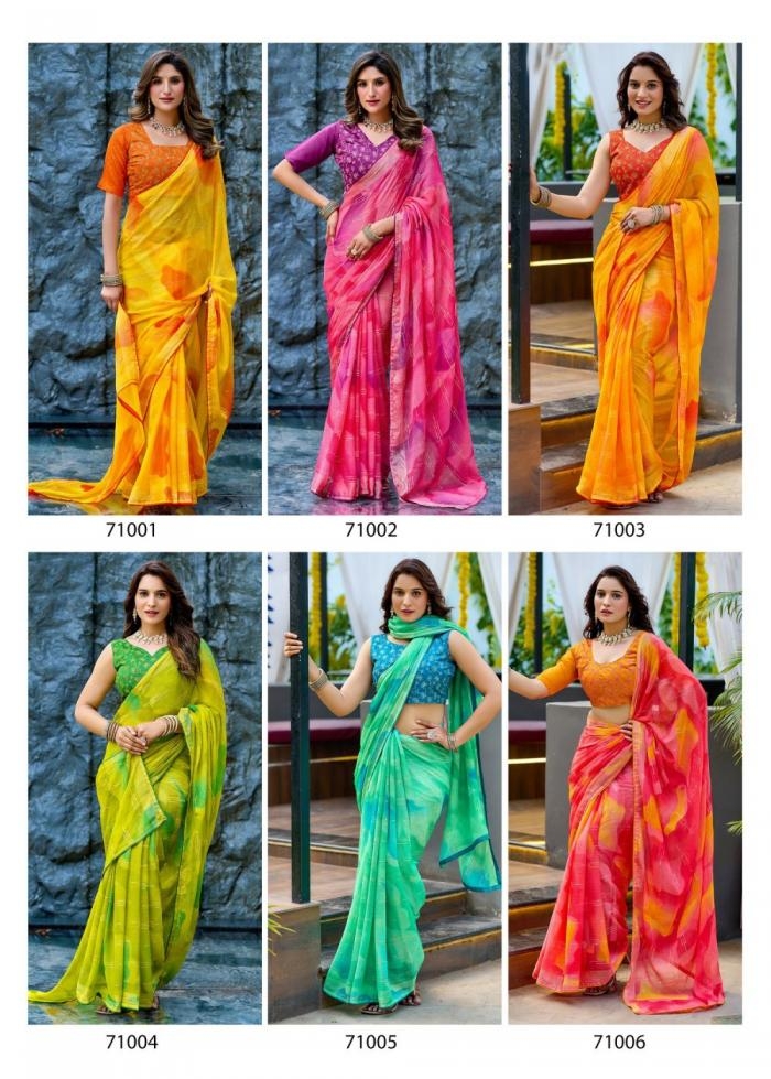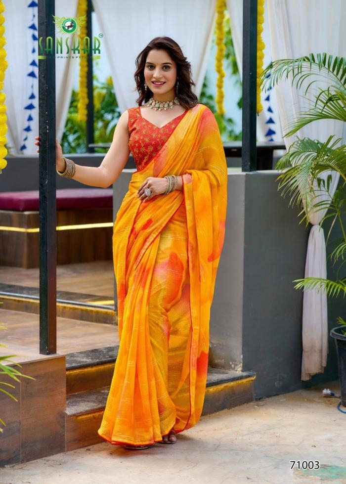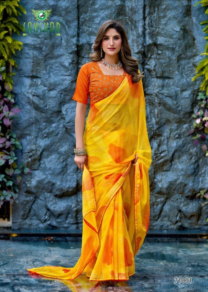 | Name: | Sanskar Tex Prints Tohfa Series 71001-71006 Chiffon Wholesale Saree | |