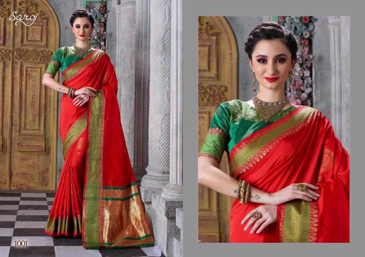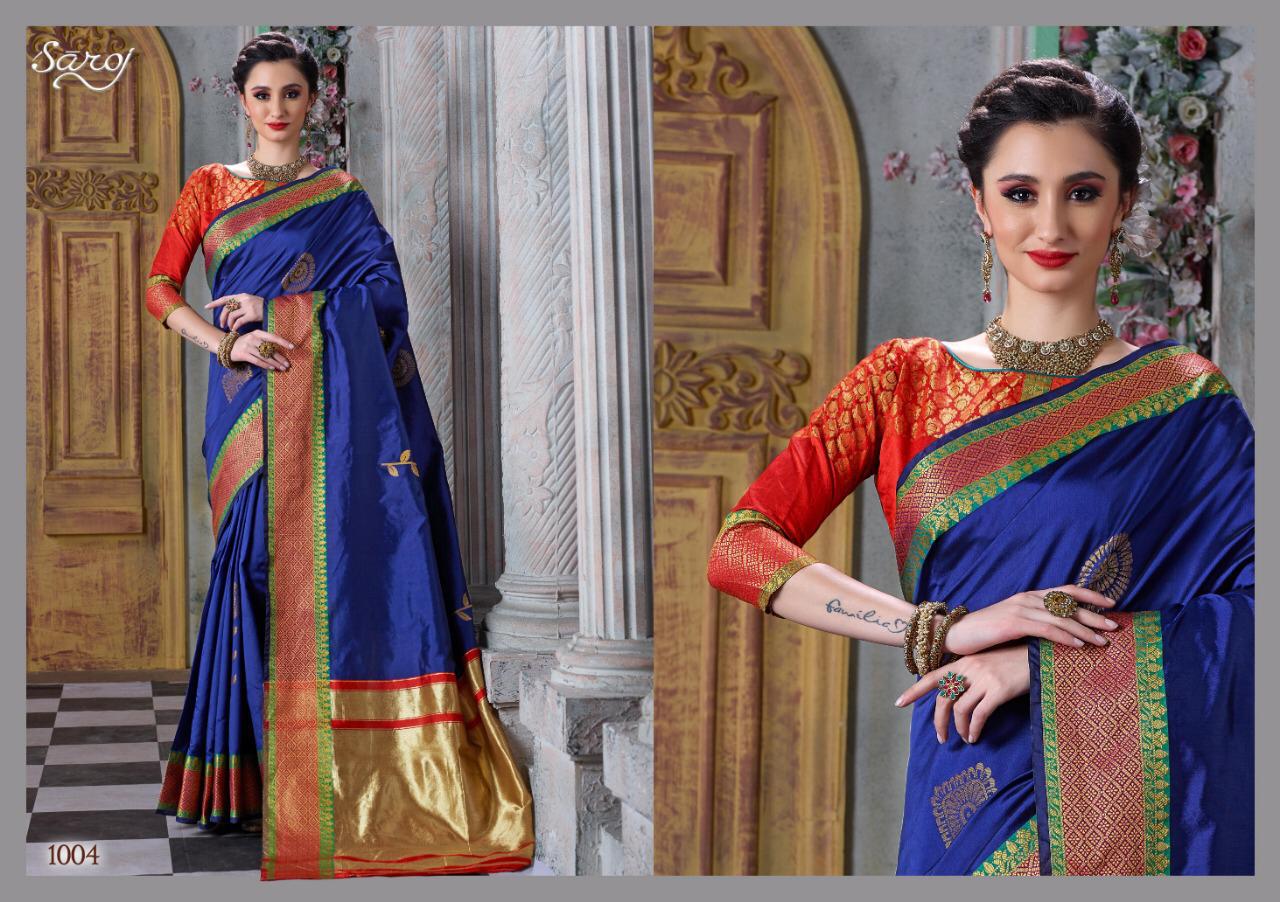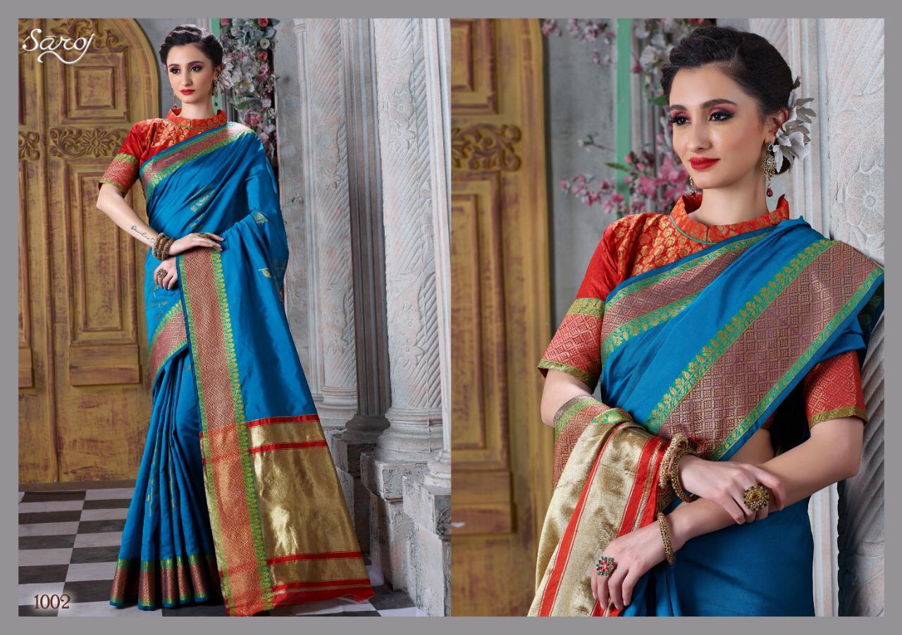 Other Details: | *Mitali by Saroj * Rate – 915 per Pcs . Fabric: Cotton Silk with chit pallu. Blouse: Silk. 6 Designs in set . Set to set . GST 5 Percent Extra. Delivery 2 days |