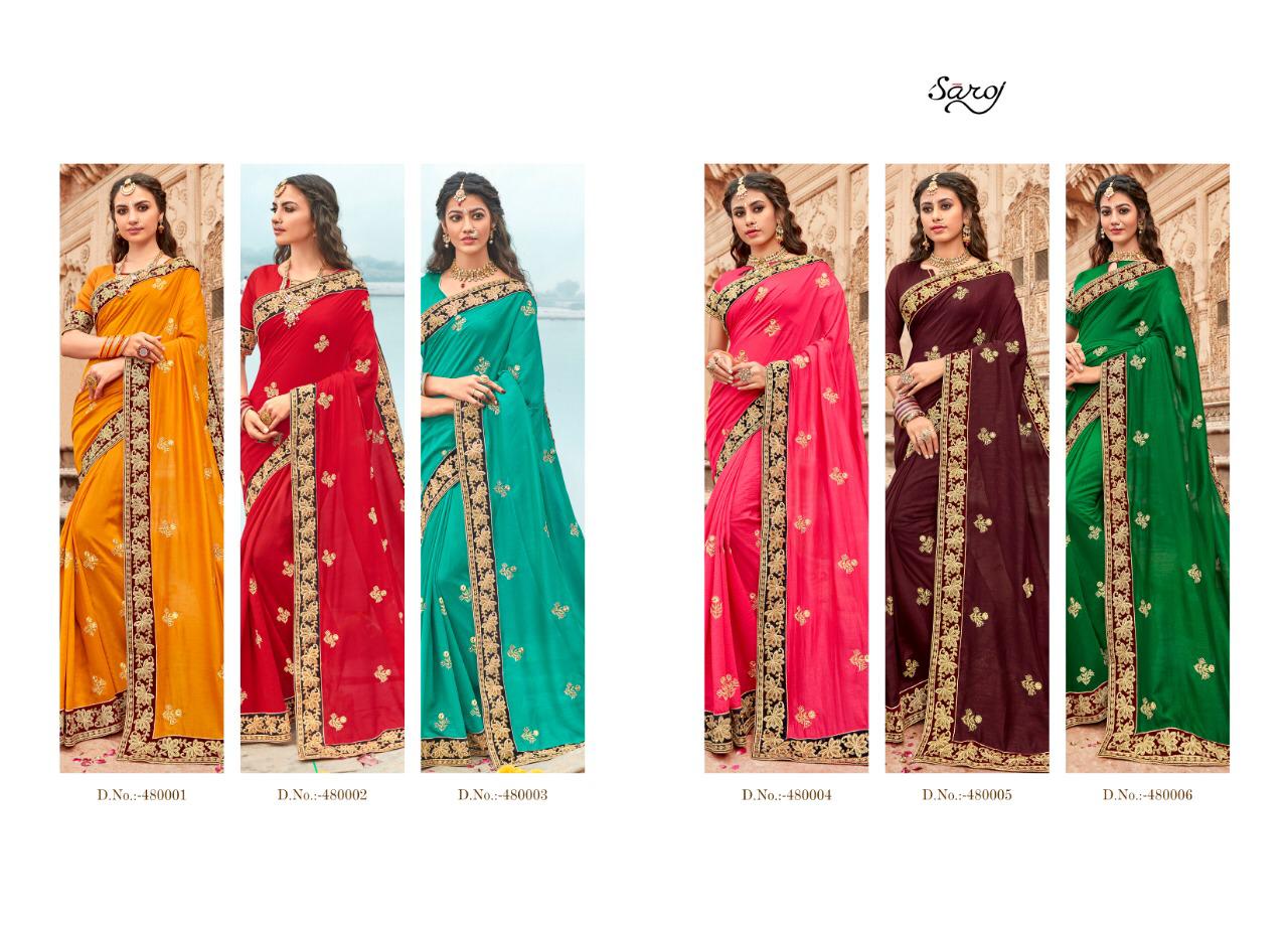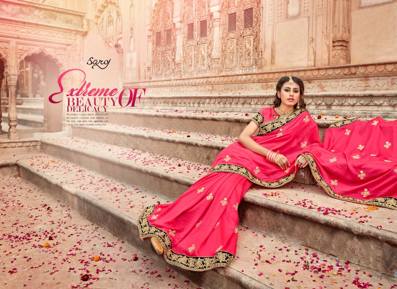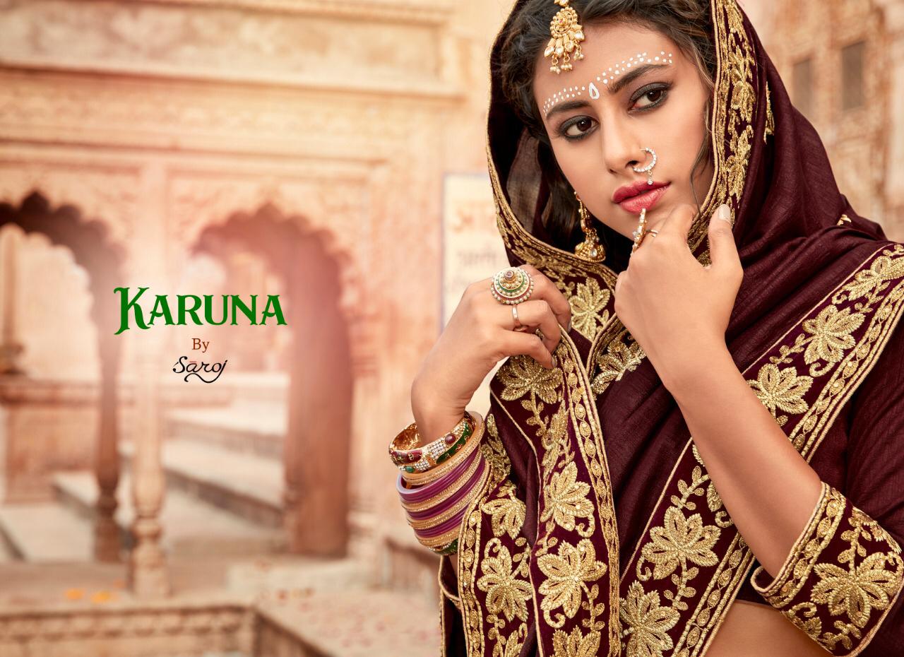 Other Details: | *Karuna by Saroj * Rate -1425 per pcs . Fabric: PxC Vichitra Silk with Heavy Border and Butta. Blouse: Vichitra Silk. 6 Designs in set . Set to set . GST 5 Percent Extra. Delivery 3-4 days |