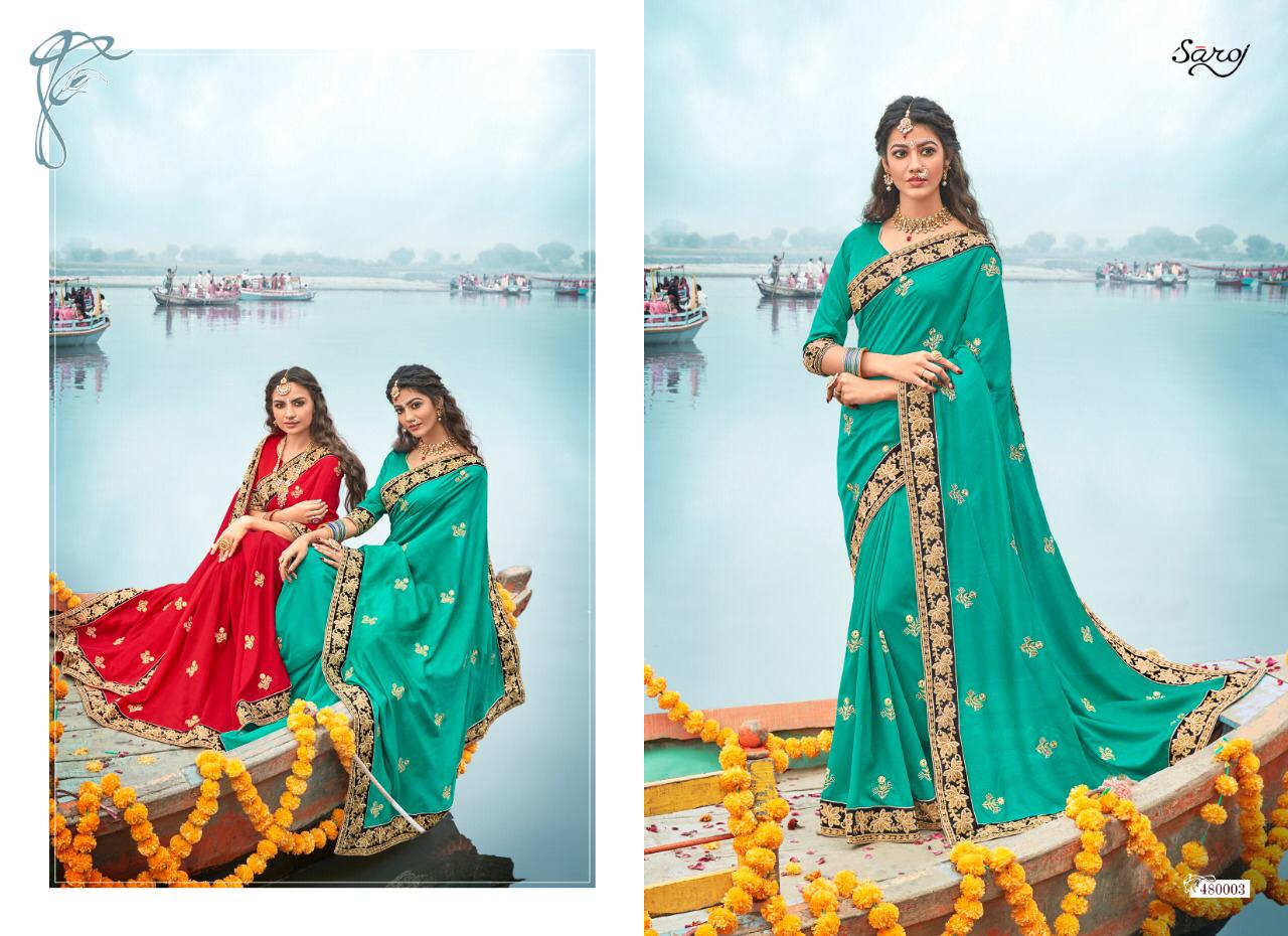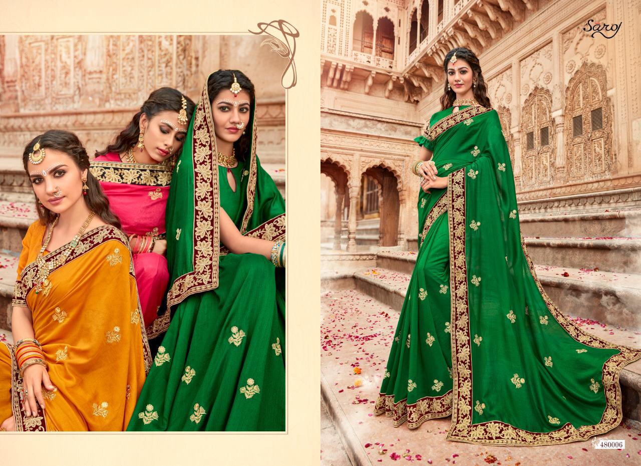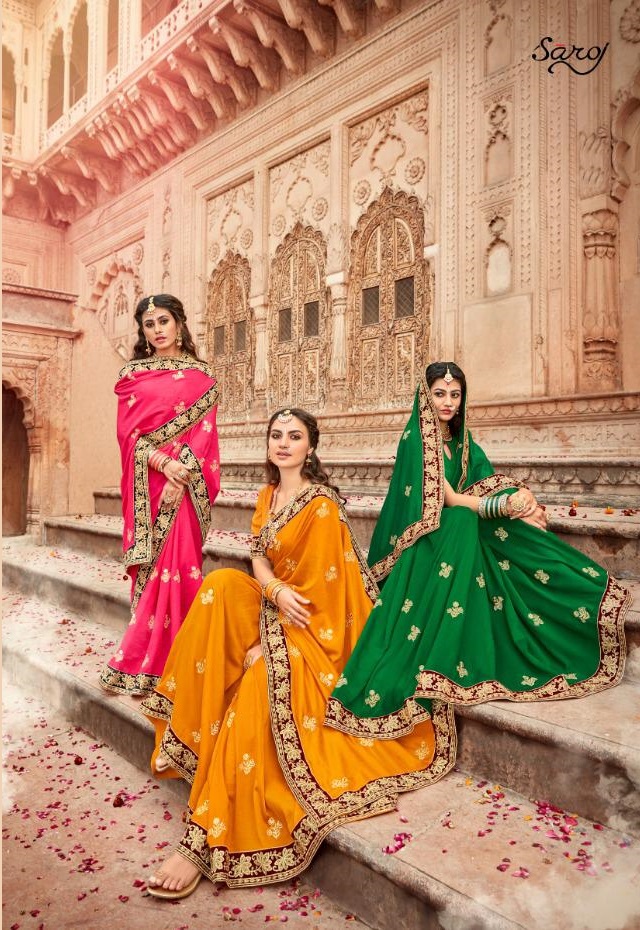 Other Details: | *Karuna by Saroj * Rate -1425 per pcs . Fabric: PxC Vichitra Silk with Heavy Border and Butta. Blouse: Vichitra Silk. 6 Designs in set . Set to set . GST 5 Percent Extra. Delivery 3-4 days |