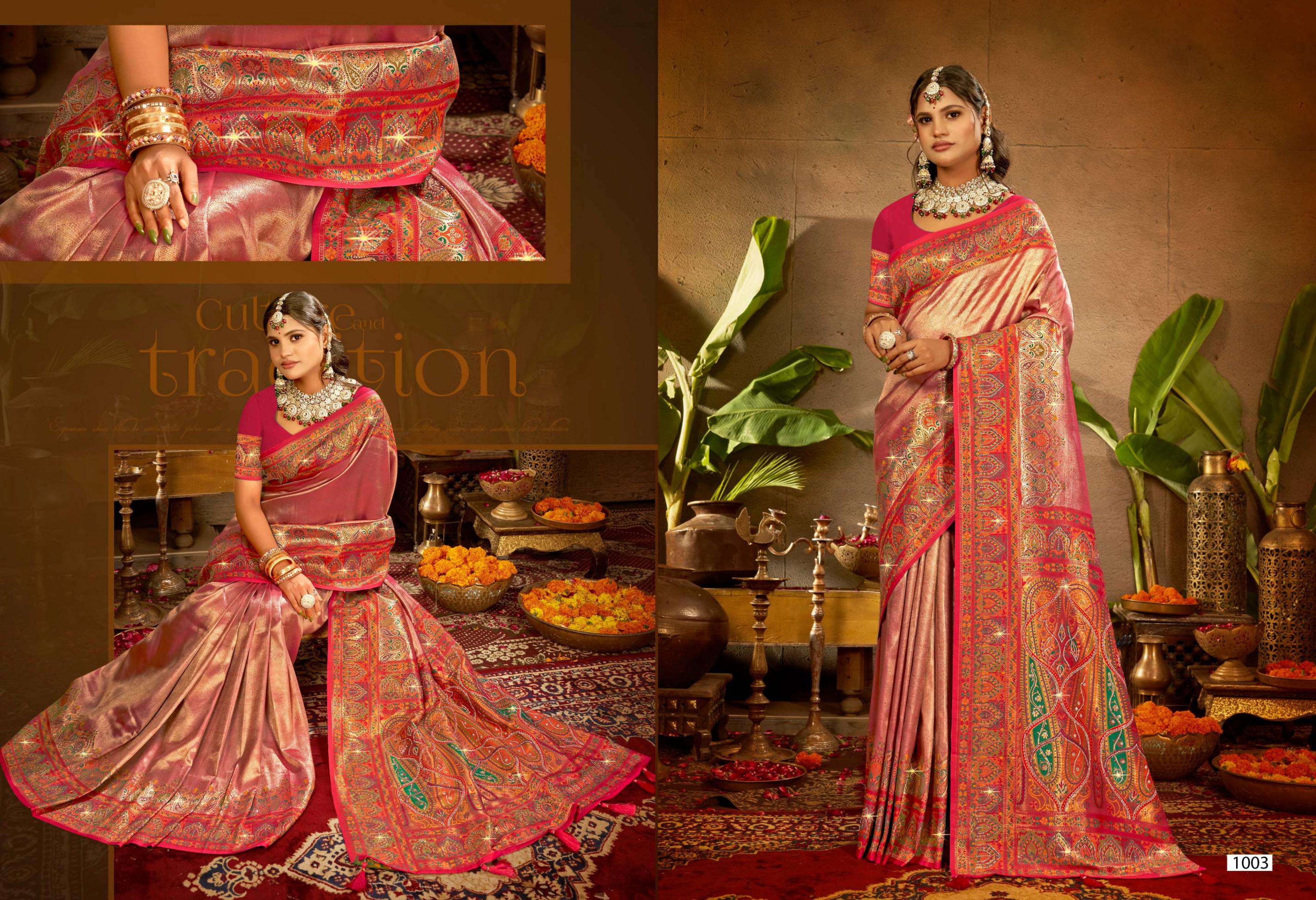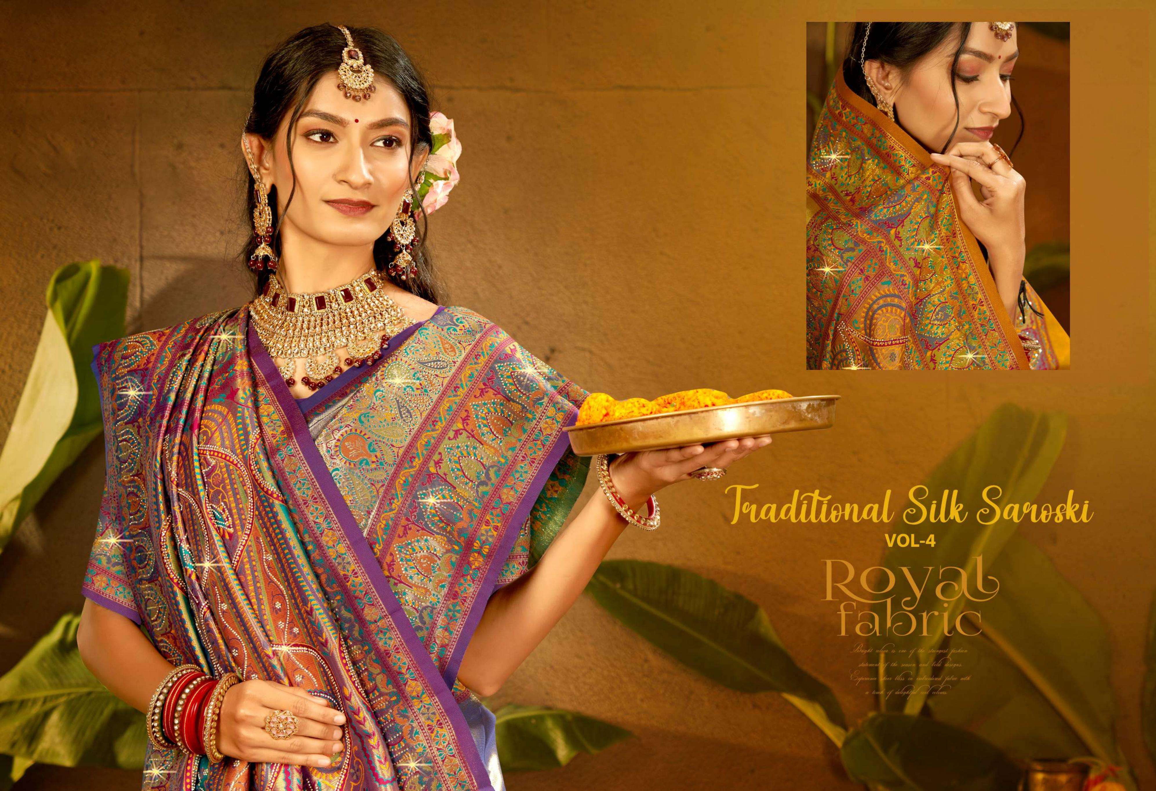 | Other Details: | Traditional Silk Saroski vol.4 Pure Tissue Silk Rich Pallu Saree Bright Matching Jharkan Work Position Print Designing Rate:₹2085 |