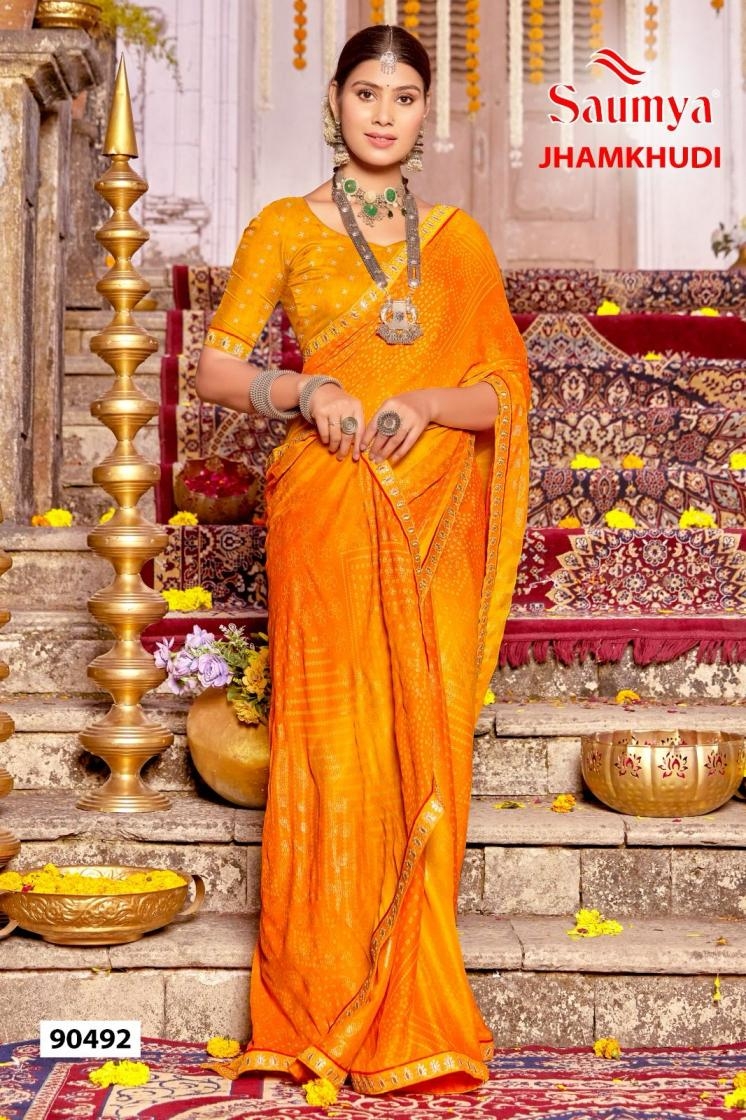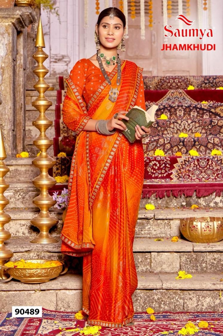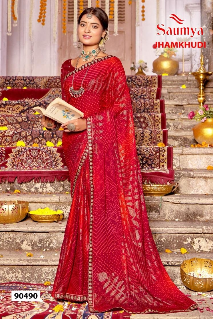 | Name: | Saumya Jhamkhudi Series 90489 To 90494 Dull Moss Bandhani Print Hit Design Sarees In Wholesale Surat |