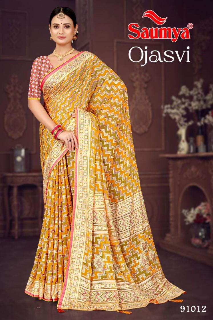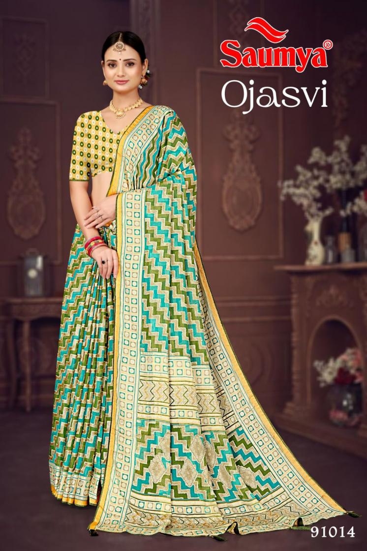 | Name: | Saumya Ojasvi Series 91009 To 91014 Dull Moss Brasso New Design Sarees In Wholesale Surat |