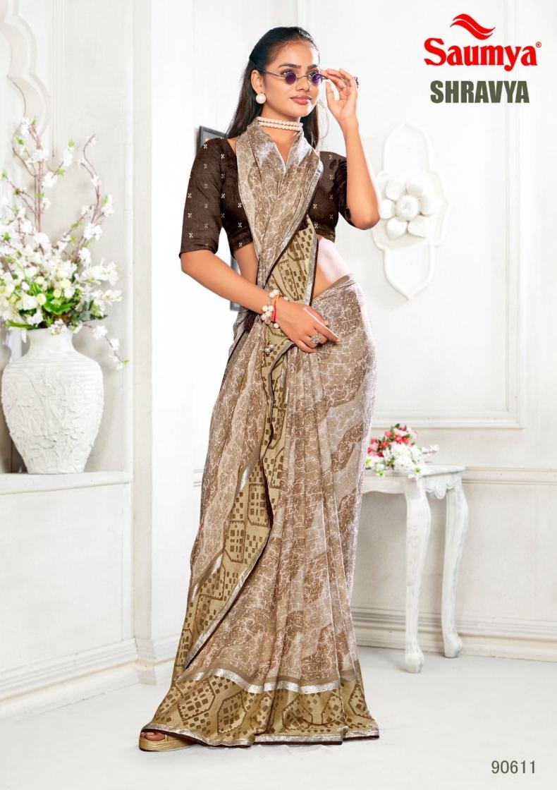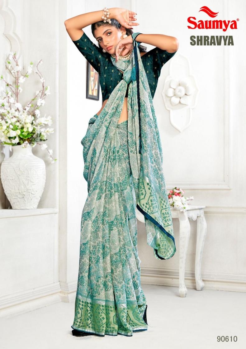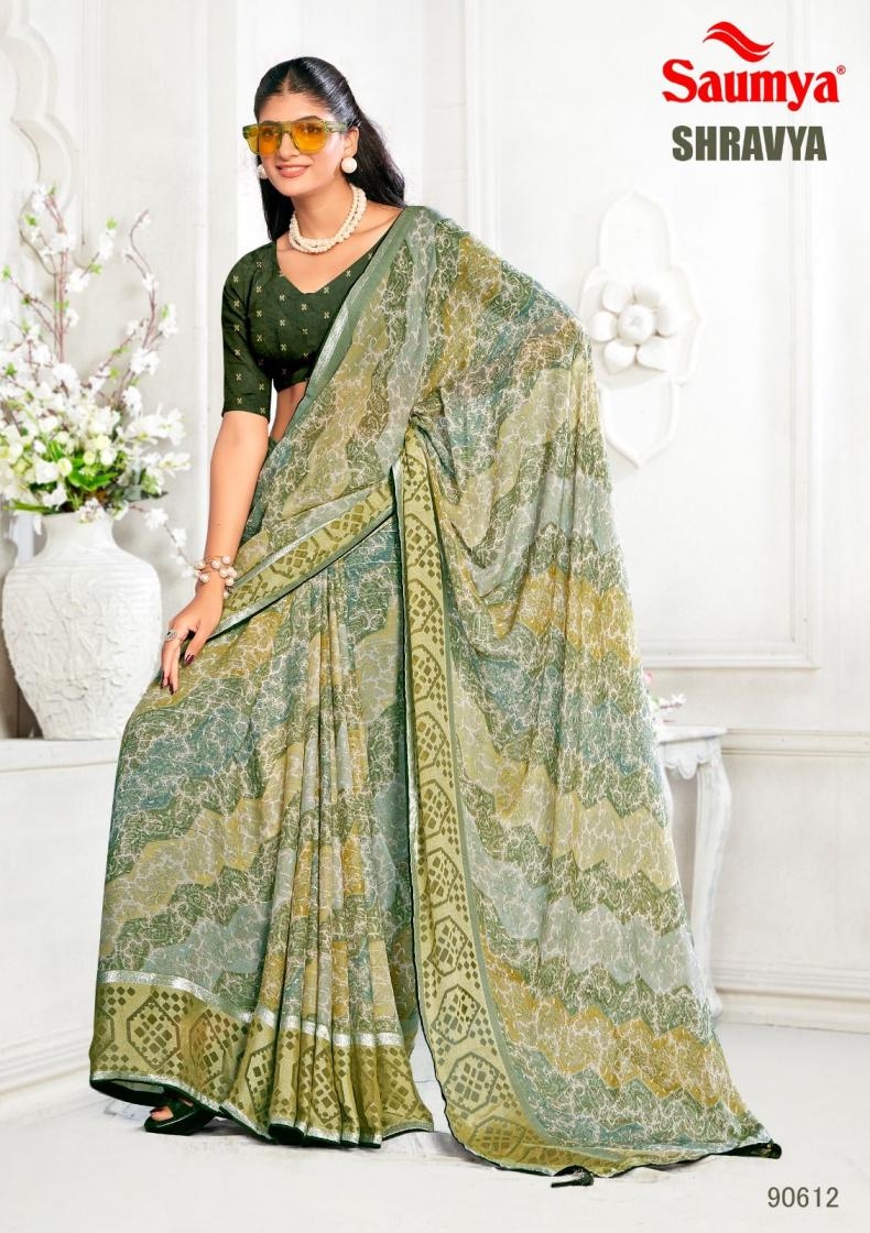 | Name: | Saumya Shravya Series 90609 To 90614 Dull Moss Panel Brasso Sarees In Wholesale Surat |