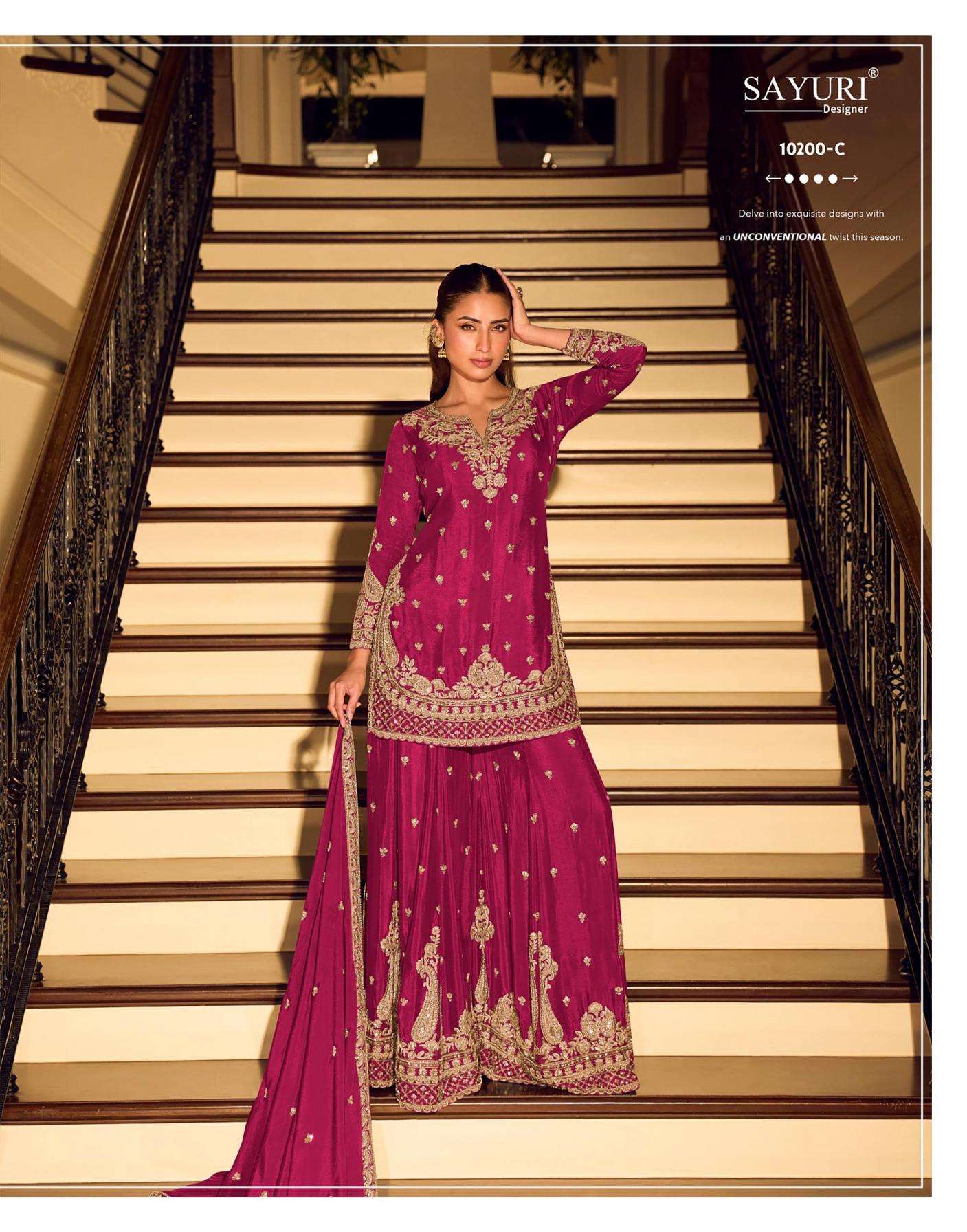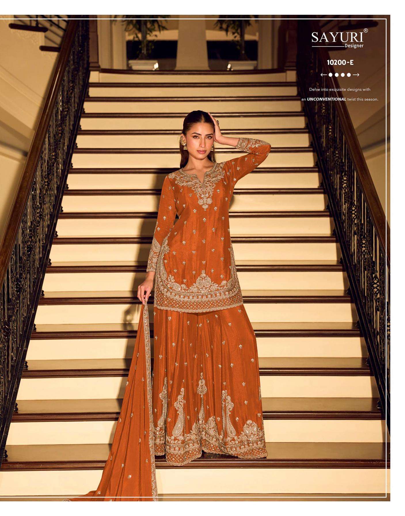 | Name: | Sayuri Designer Kanchan Gold Series 10200 Premium Chinon Silk Readymade Suit |