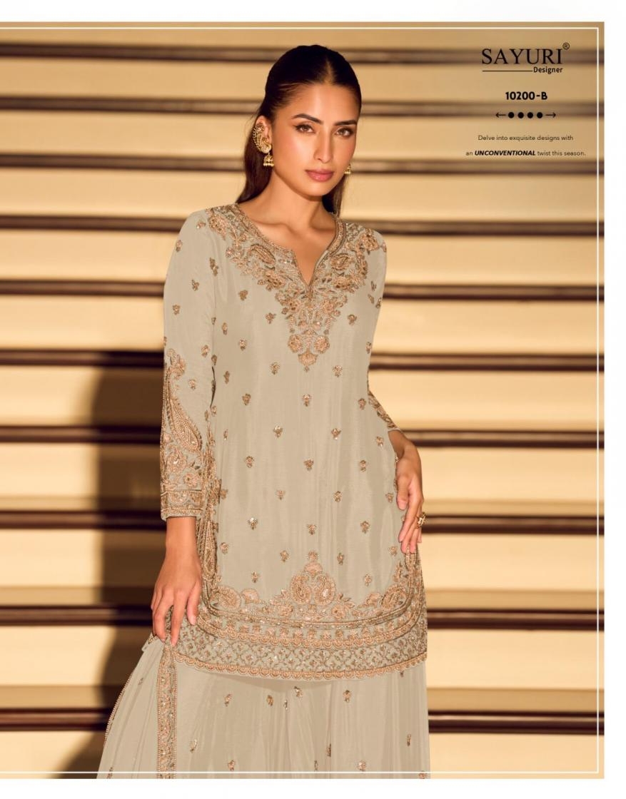 | Name: | Sayuri Designer Kanchan Pro Series 10200 Chinon Silk Wholesale Suit | |