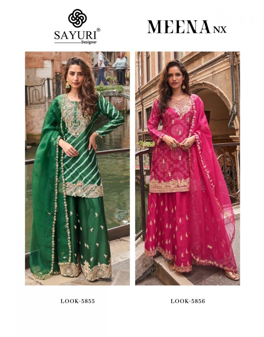 | Name: | Sayuri Designer Meena Nx Series 5855 To 5856 Chinon Silk Exclusive Readymade Plazzo Suit In Wholesale Surat |