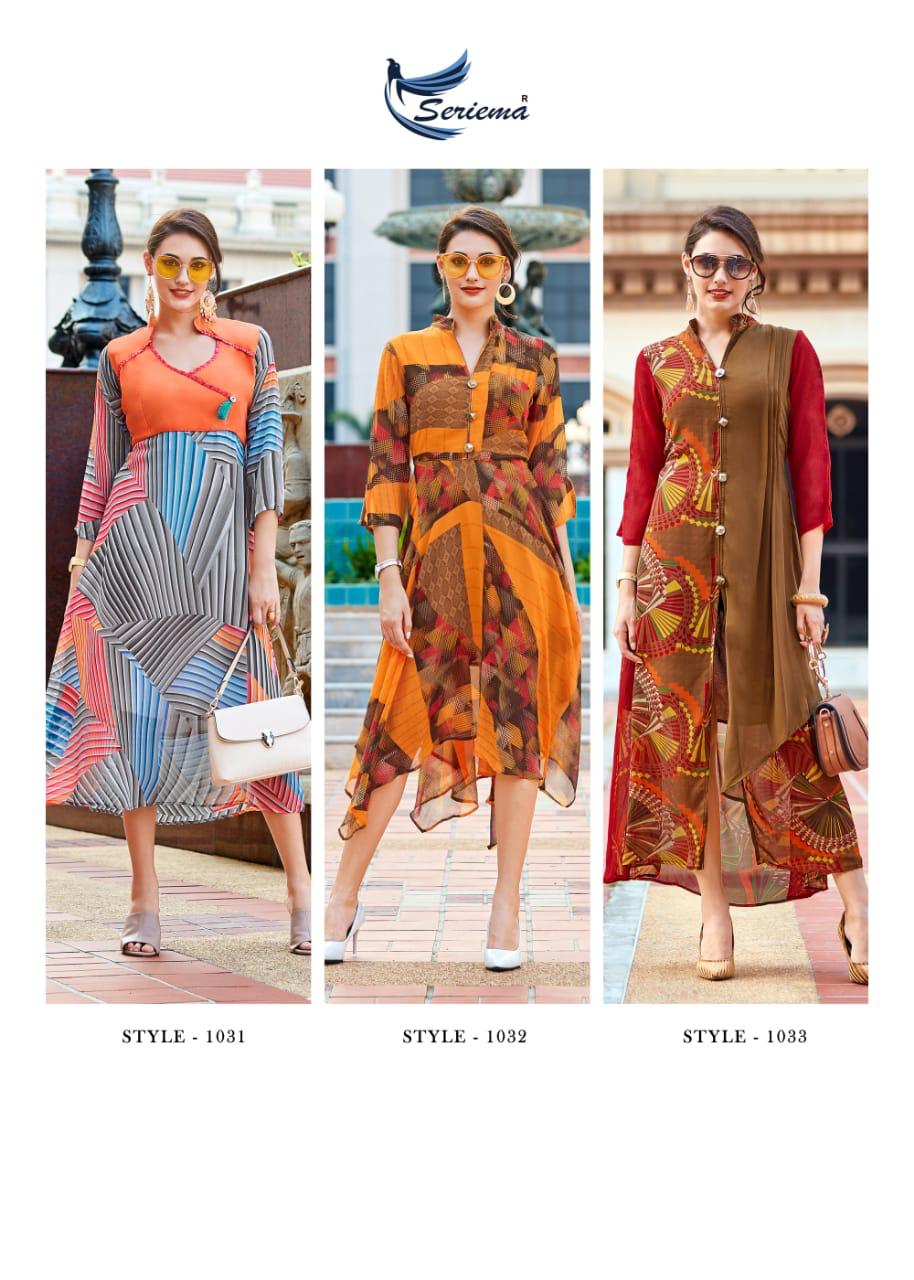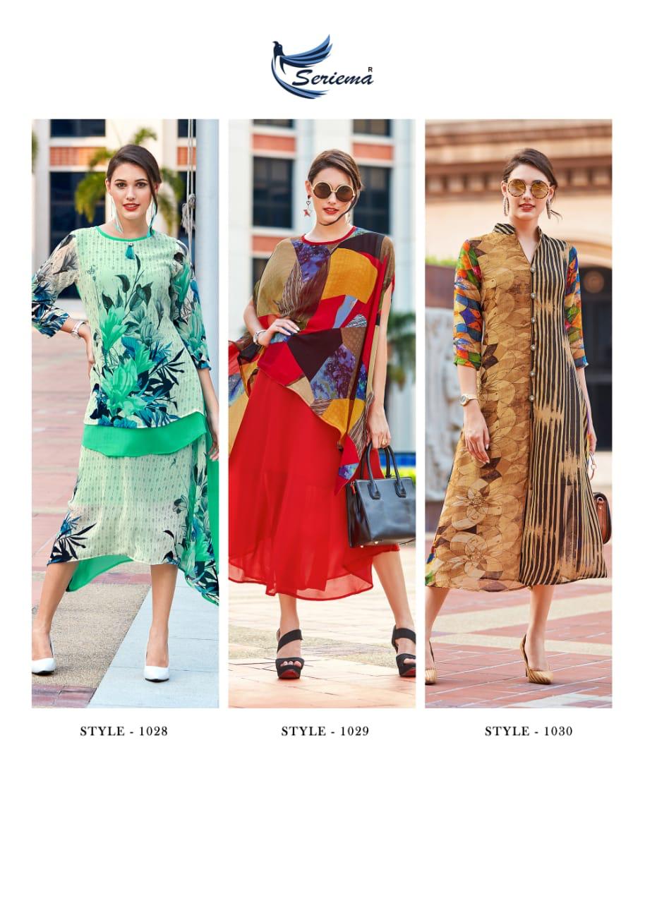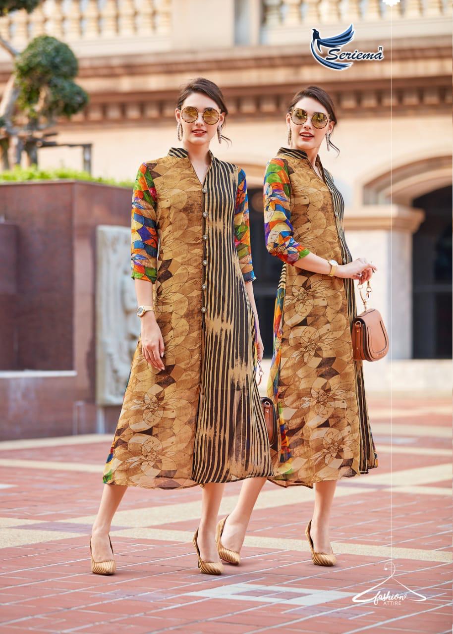 | Name: | Seriema Present Mareena Printed Georgette Good Looking Fancy Kurtis Collection |