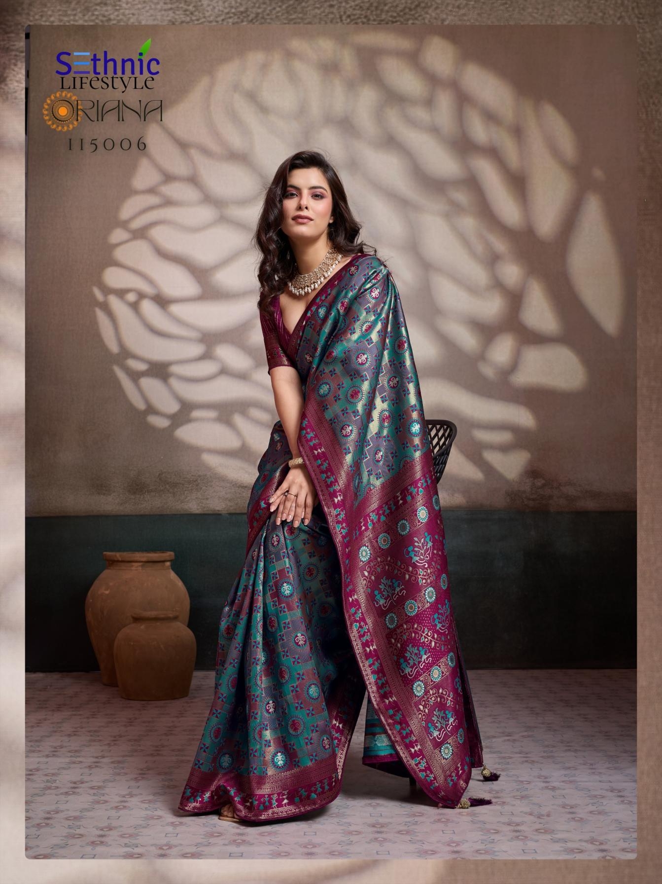 | Name: | Sethnic Lifetstyle Oriana Series 115001 To 115006 Silk Amazing Meena Kari Sarees In Wholesale Surat |
