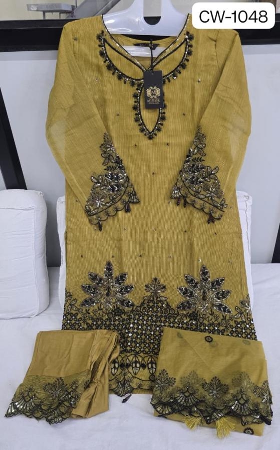 | Other Details: | Ready to Wear Collcetion by MUSHK BY SHRADDHA DESIGNER* D no.: CW-1048 Top -Liberty Denting Cheks & handwork khatli With Cutwork Embroidery with GPO Less attached with Cotton Iner Bottom - viskos silk with work Dup- Cotton Chek with hevy embroidery Size- L /Xl / XXL/ *Rate - 1599/- +gst