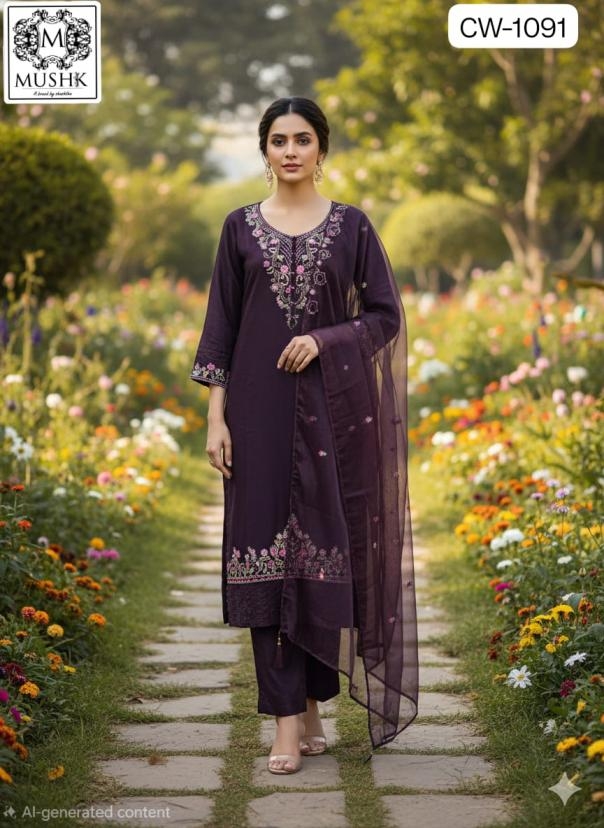 | Other Details: | hello MUSHK by shrddha designer lounching new style leser work dress DN - CW-1091 Top - RAGA Roman silk with' bits work' hevy embroidery Bottom - RAGA Roman silk Duptta - : bits work' deltin lining with work with latkan Rate - 1650/- MUSHK by shrddha designer |