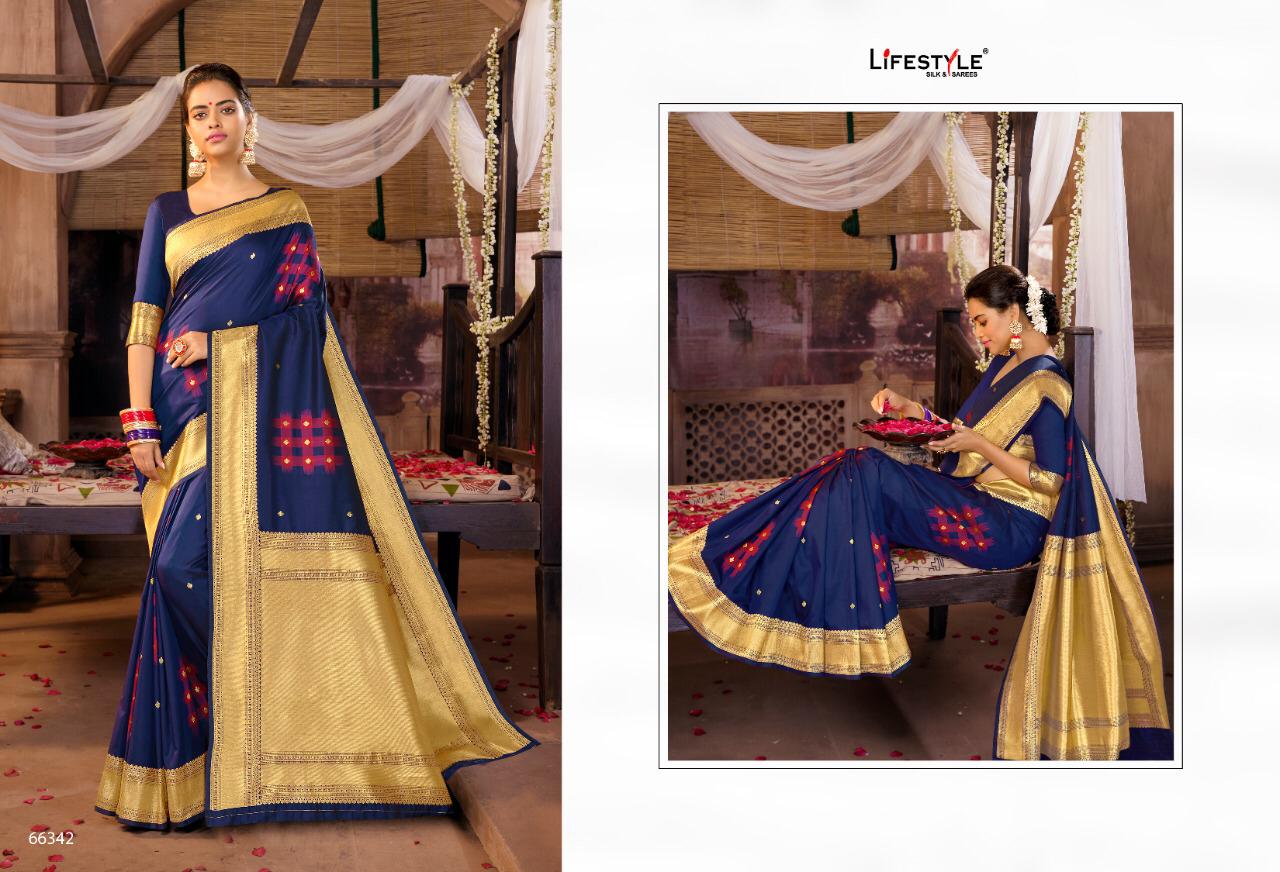 Other Details: | BRAND = LIFE STYLE MERCHANT NAME = SHRAVANTI 2 RATE = 1553 per pcs . Set to set . GST 5 Percent Extra FABRICS = REPAIR RICH PALLU WEAVING RANGE 1 SET = 6 PCS PACKING = Today |