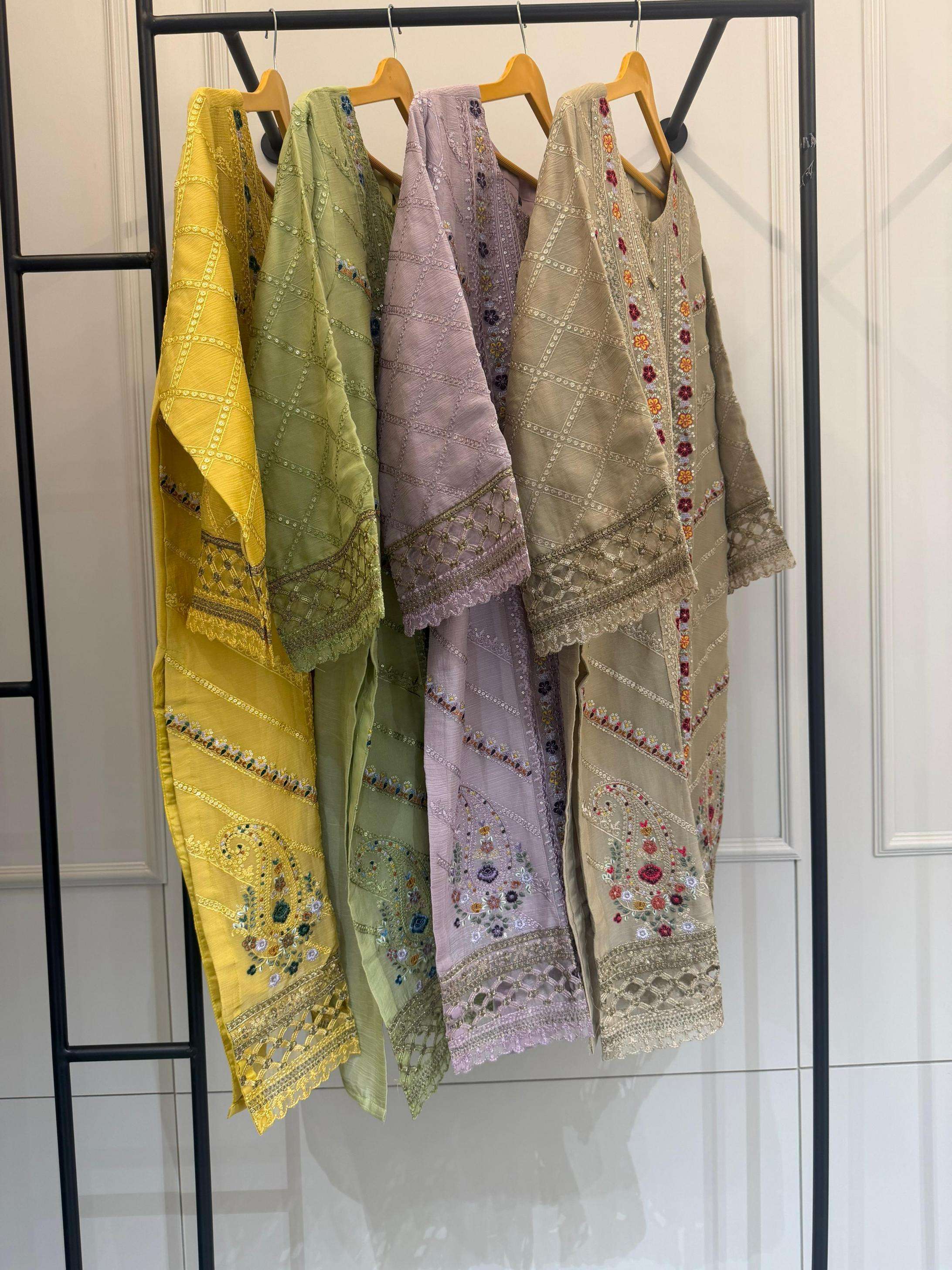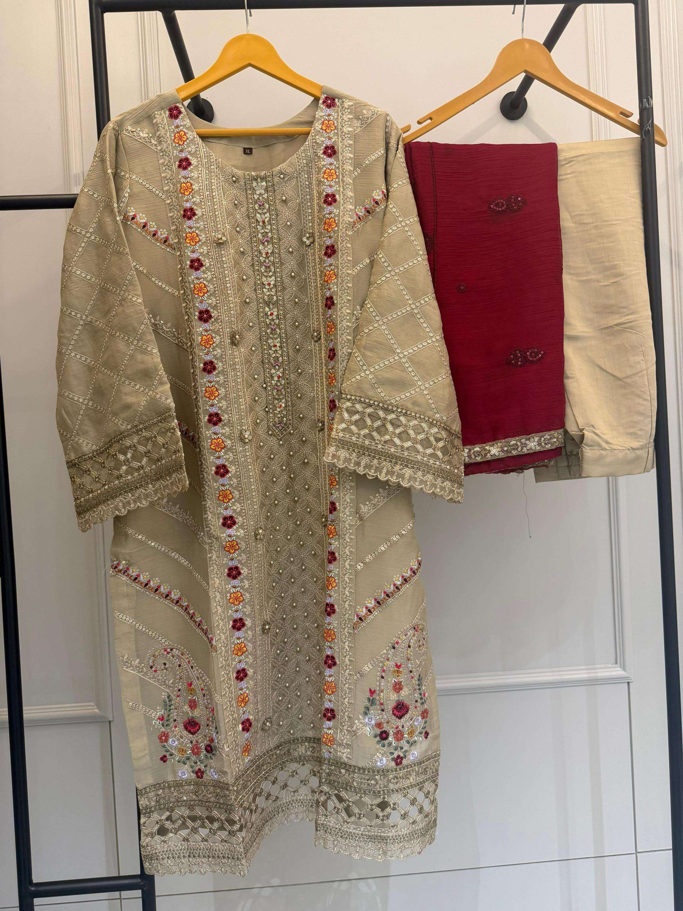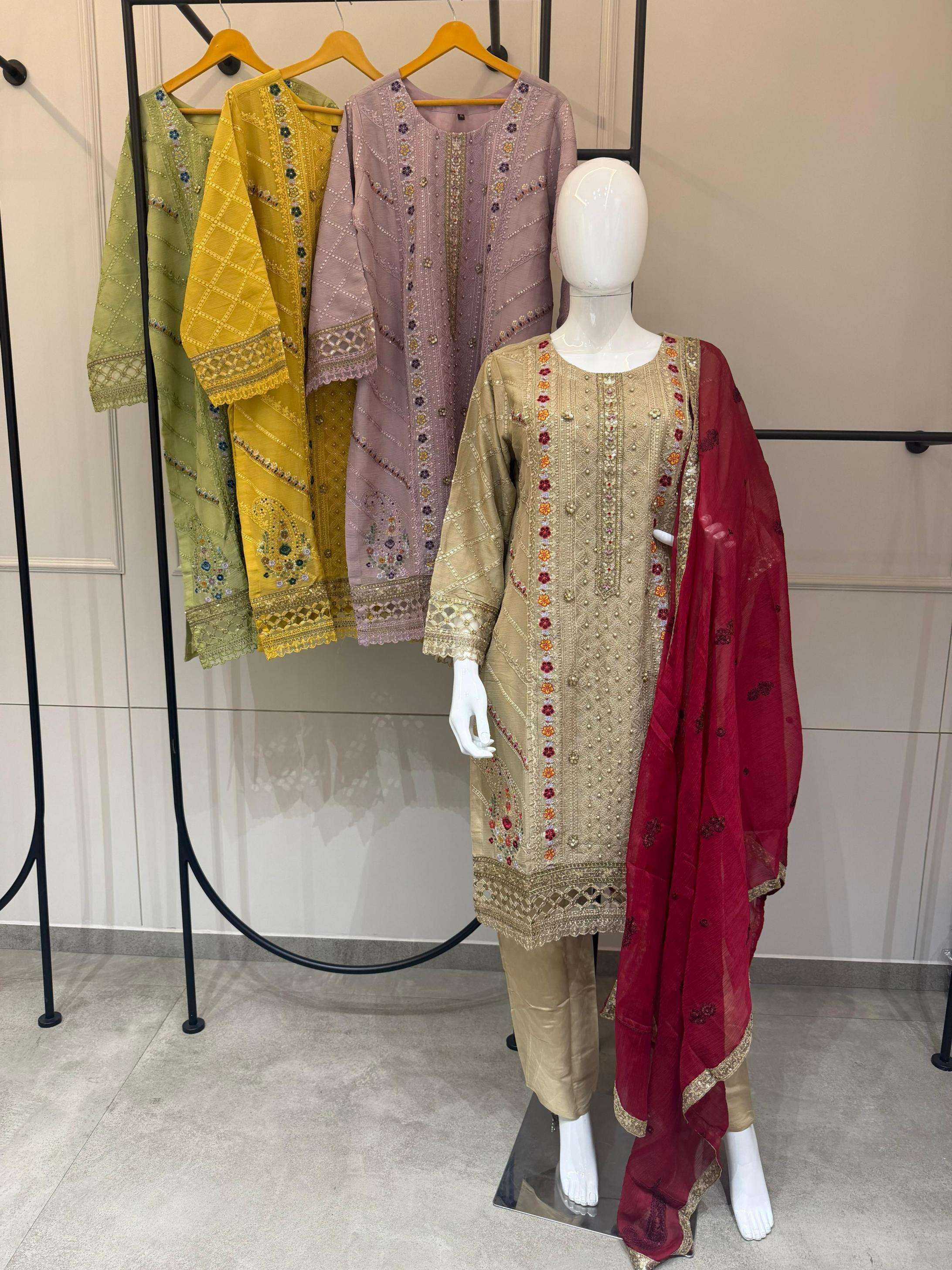 dn 2236 top cristal ragga siffon khatli work kasak khatli work aplik work flower bottam viscous roman silk duptta crisytal raga siffon emb rate 1999