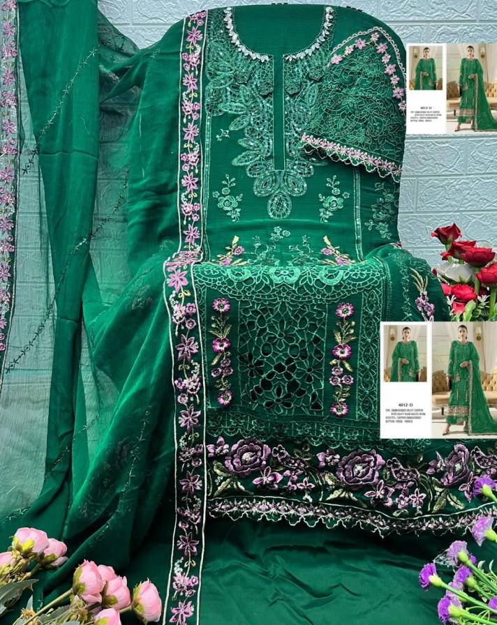 | Other Details: | D.NO.-5560- COLOR Top- chiffon Heavy with heavy embroidery with HAND KHATLI & CUT WORK Bottom/inner-French Silk Rate-1640/- Special pouch packing SHREE FABS©️ SURAT* |