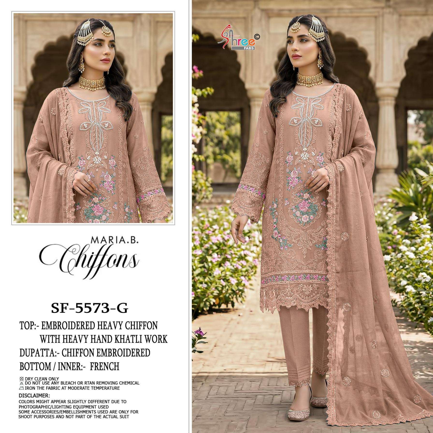 | Other Details: | D.NO.-SF-5573- COLOR FABRIC DETAILS👇🏻 Top- chiffon Heavy with heavy embroidery with HAND KHATLI & Bottom/inner-French Silk